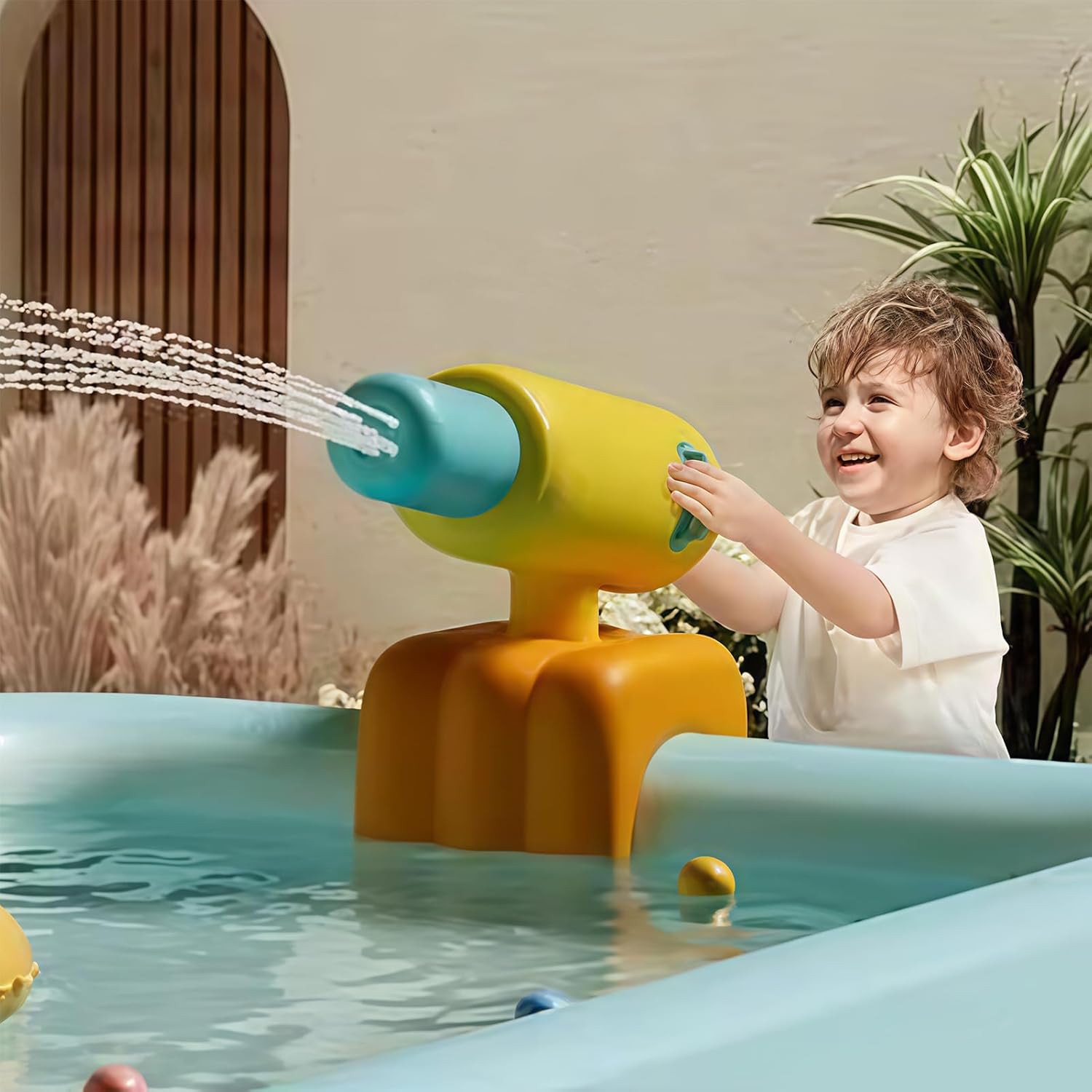 Piacere continuo: integra facilmente la maggior parte dei tubi da giardino grazie al suo collegamento. Offre opzioni regolabili per il massimo divertimento durante il gioco all'aperto, promuovendo sia l'attività fisica che il relax sotto il sole Momenti memorabili: aggiungi entusiasmo alle riunioni estive con questo gioco acquatico appositamente progettato per utenti di tutte le età, garantendo momenti rinfrescanti e gioiosi durante le attività nella stagione calda Maggiore divertimento in piscina: goditi un'attenta installazione con questa lancia d'acqua compatibile con piscine adatte, portando immediatamente eccitazione e divertimento alle tue attività acquatiche senza procedure complesse. Resistenza solare: realizzato in PVC resistente ai raggi UV per una lunga durata, rimanendo morbido e sicuro per bambini e animali domestici durante i giochi acquatici all'aperto. Pressione ottimizzata: 5 ugelli efficienti con posizionamento flessibile e struttura gonfiabile leggera per intrattenimento acquatico dinamico all'aperto