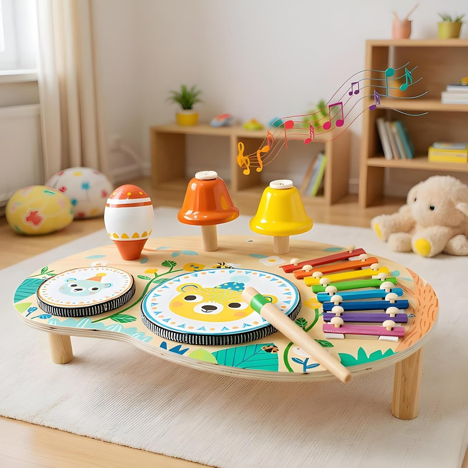 Sviluppo Cognitivo e Creativo: Stimola il riconoscimento dei colori e la percezione musicale, rafforzando contemporaneamente l'alfabetizzazione artistica e le abilità cognitive per un'esperienza di apprendimento completa durante il gioco Musica e Coordinazione: Design studiato per potenziare riconoscimento ritmico e coordinazione -manuale attraverso tamburo e , offrendo esperienze uditive e tattili stimolanti in formato educativo, per sviluppo infantile Esplorazione Multisensoriale: Favorisce la scoperta sensoriale coinvolgendo udito vista e durante il gioco, promuove l'integrazione sensoriale e sostiene lo sviluppo logico in modo divertente e interattivo per bambini Regalo Creativo: Opzione deliziosa per compleanni, vacanze, Natale e anno nuovo, questo tavolo è progettato per mostrare cura, fornendo a bambini e bambine più occasioni di esplorazione creativa e intrattenimento gioioso con esperienze di gioco interattivo sicure Autonomia Progressiva: Compagno ideale per piccoli apprendisti che sviluppa abilità motorie fini rispettando i comportamenti naturali di presa in ambienti sicuri, supportato da struttura robusta e dettagli a bordi arrotondati child-friendly