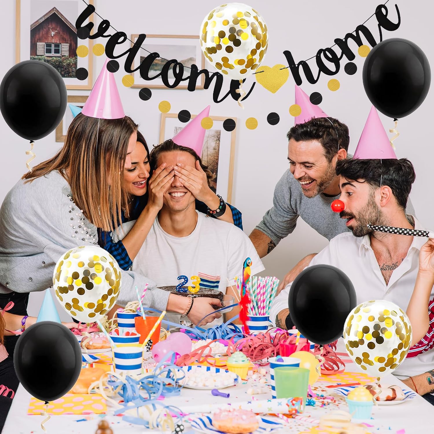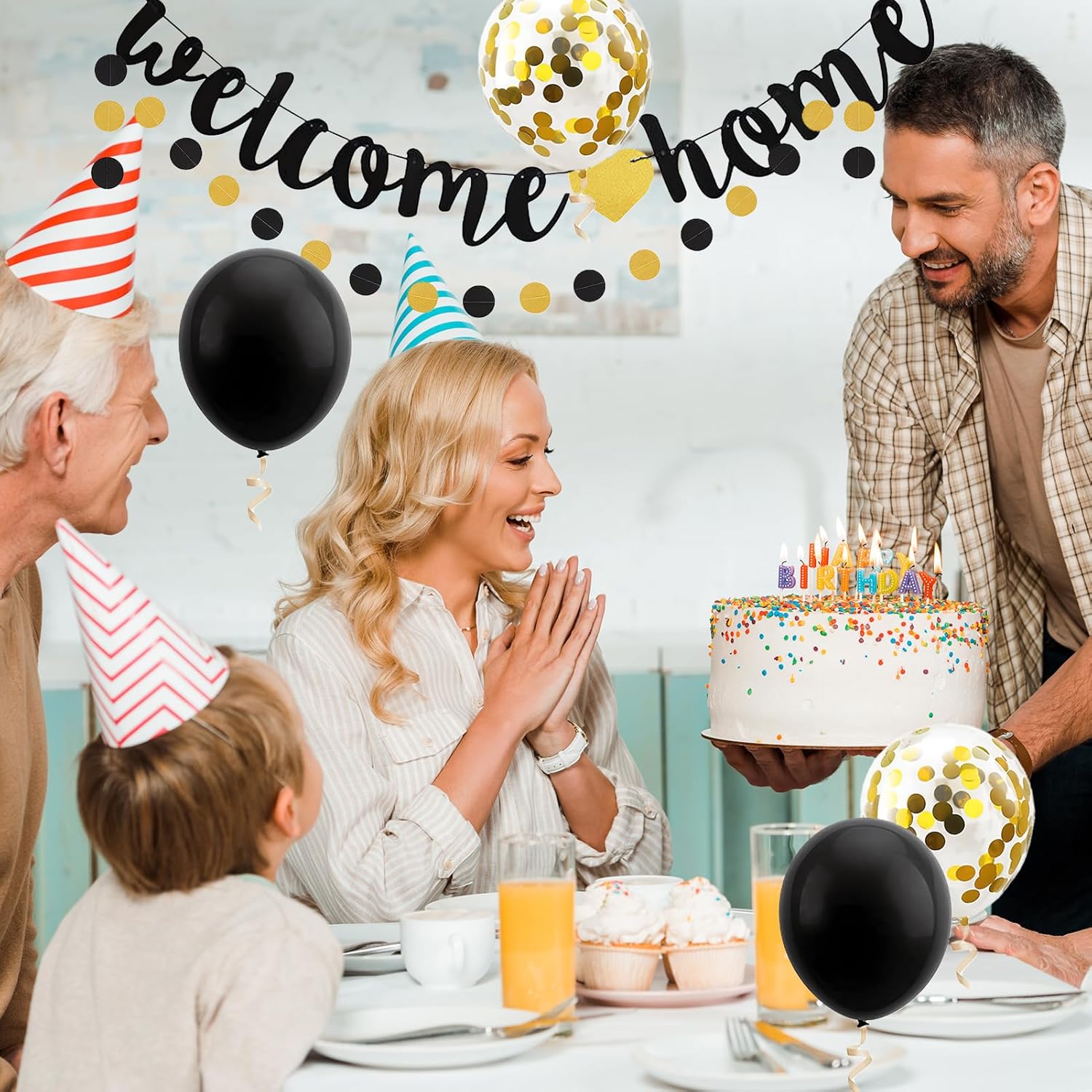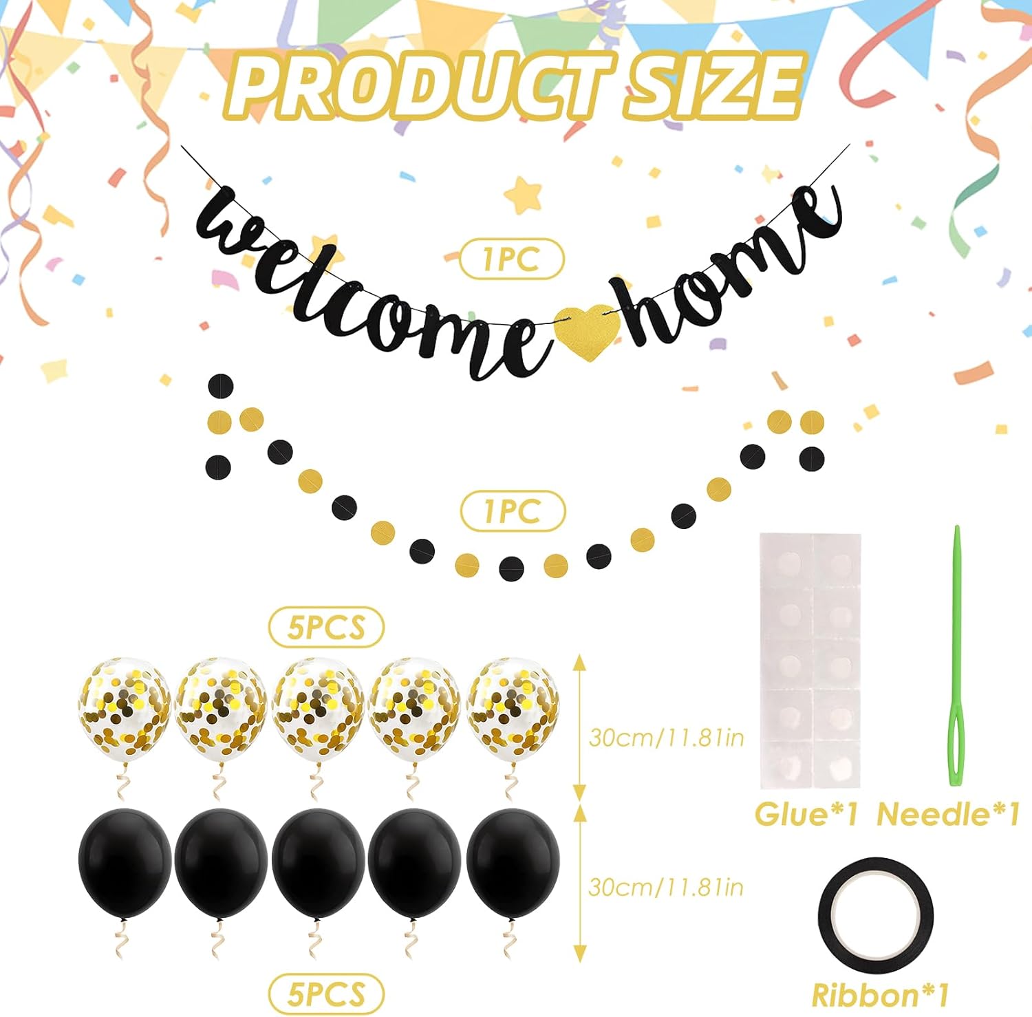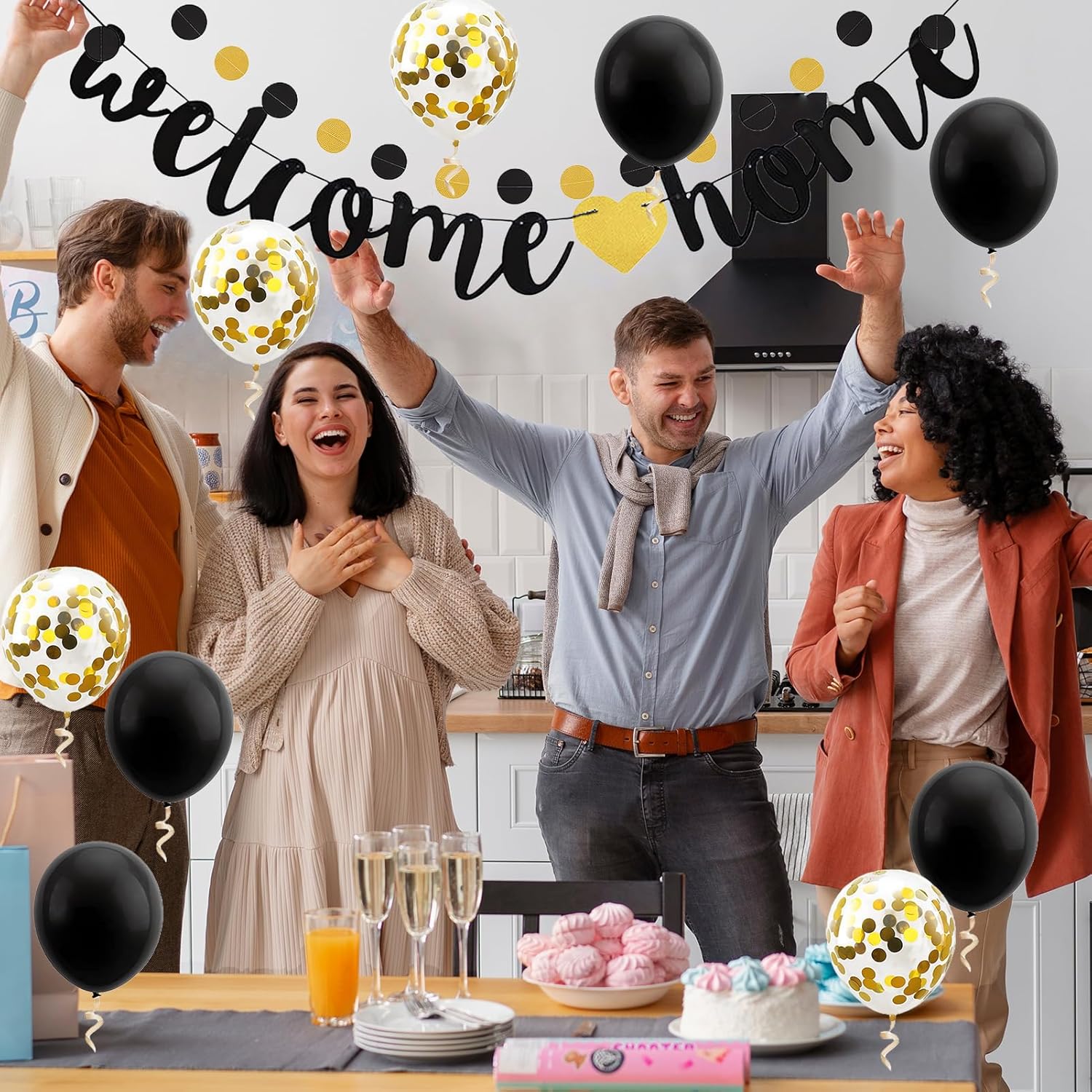 Questa decorazione "Welcome back" è composta da palloncini neri e dorati e uno striscione "Welcome back", perfetto per eventi come matrimoni, feste familiari o inaugurazioni, creando un'atmosfera moderna e raffinata. I palloncini sono facili da gonfiare e lo striscione può essere appeso rapidamente. In pochi minuti trasformerai il tuo spazio e crea un'atmosfera festosa e accogliente per i tuoi ospiti. Tutti gli accessori sono realizzati con materiali durevoli, garantendo che i palloncini dorati e lo striscione rimangano in ottime condizioni per tutta la durata dell'evento, senza deformarsi o deteriorarsi. Che si tratti di un matrimonio, una festa di famiglia o un'inaugurazione di casa, questa decorazione nera e dorata aggiungerà un tocco di eleganza e lusso al tuo evento, rendendo ogni momento più memorabile. Il design nero e dorato di questa decorazione porta raffinatezza e raffinatezza. Perfetto per occasioni speciali, crea un'atmosfera festiva pur rimanendo elegante e moderna.