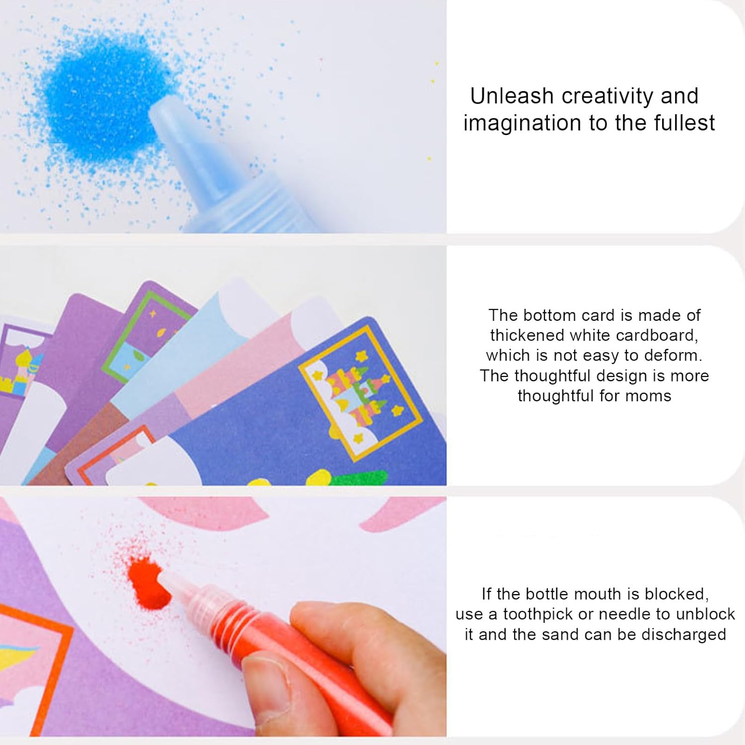 Abilità creativa Boost Toost: realizzato in carta di alta qualità, questo kit artistico di sabbia aumenta la creatività, la concentrazione e la coordinazione occhio-mano per bambini. La sabbia colorata e i modelli offrono apprendimento del colore perspicace, essendo ecologici. Sblocca il potenziale artistico di tuo figlio. Foster Collaborazione genitore-figlio: essere coinvolto nelle attività congiunte genitore-figlio con i nostri kit artistici di sabbia; Un modo delizioso per migliorare i legami familiari e favorire la cooperazione, la condivisione e l'espressione artistica tra bambini e genitori. Vantaggio educativo: l'apprendimento di tuo figlio con i nostri kit artistici di sabbia. Consenti lo sviluppo cognitivo mentre colorano e . Inoltre, apprezza l'arte e coltiva le capacità di pensiero critico. È più che intrattenimento, è strumento educativo. Fun Sand Art: il nostro kit artistico di sabbia offre un gioco più fantasioso per tuo figlio. I colori di sabbia luminosi e riutilizzabili sono facili da applicare e pulire, integrati da un design pratico di un kit completo con vassoio di sabbia, pennello per utensili e cartone robusto, garantendo un ambiente senza pasticcio che promuove la creatività e l'apprendimento. Allenamento preciso: la precisione di tuo figlio con i nostri kit artistici di sabbia per i bambini. Sparking e applicare con cura la sabbia colorata migliora la concentrazione e la coordinazione occhio-mano, addestrando la loro meticolosità attraverso il gioco. Dai a tuo figlio il della precisione con ogni creazione colorata.