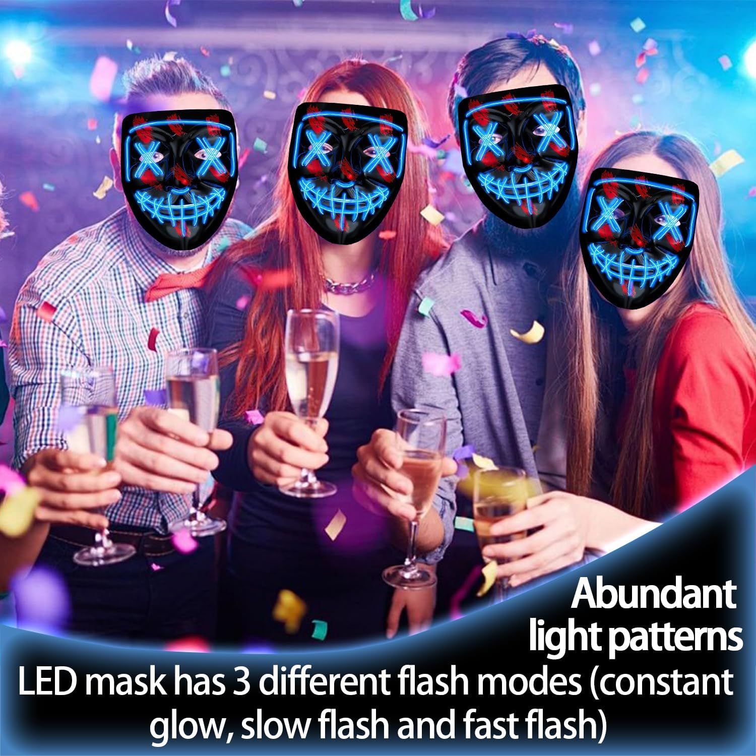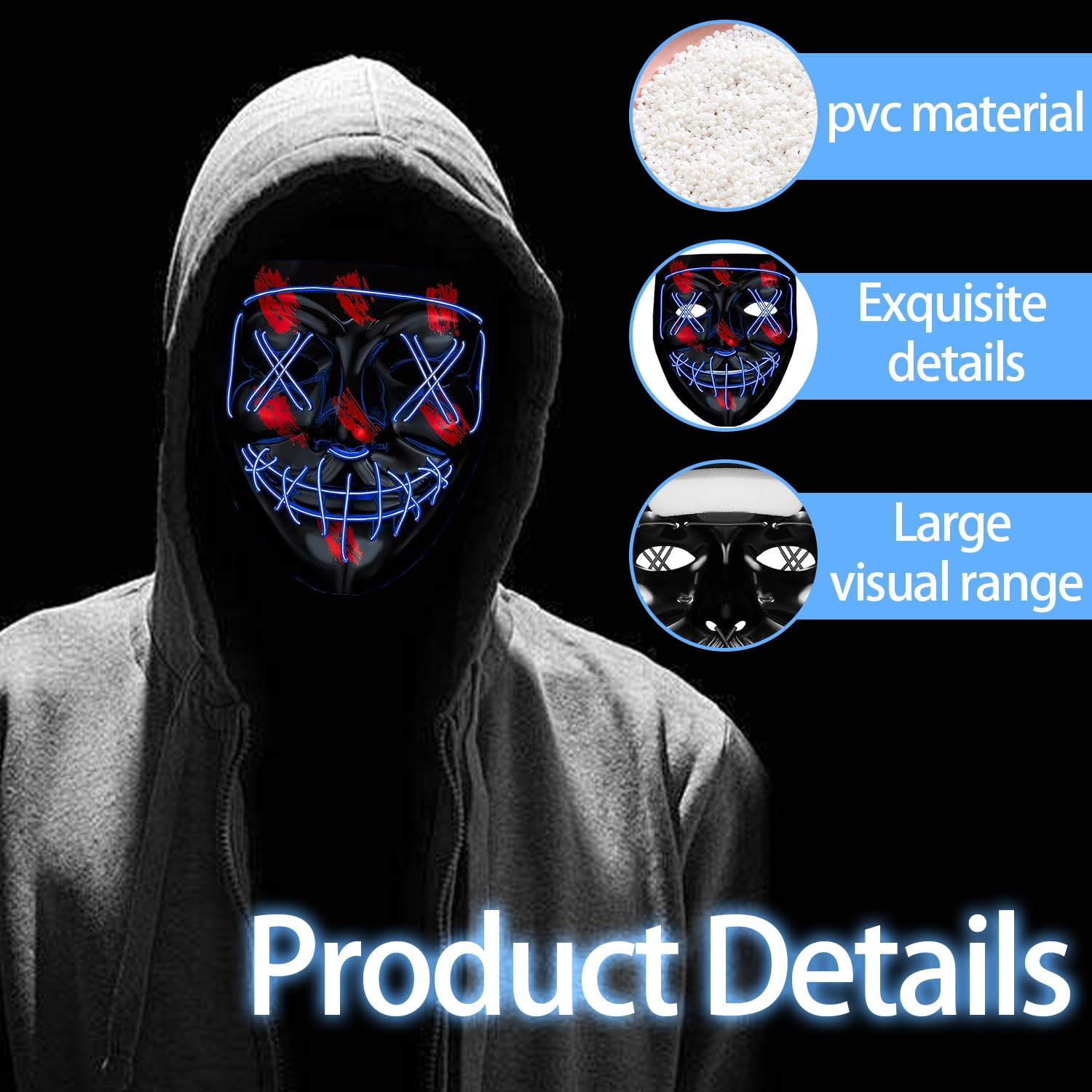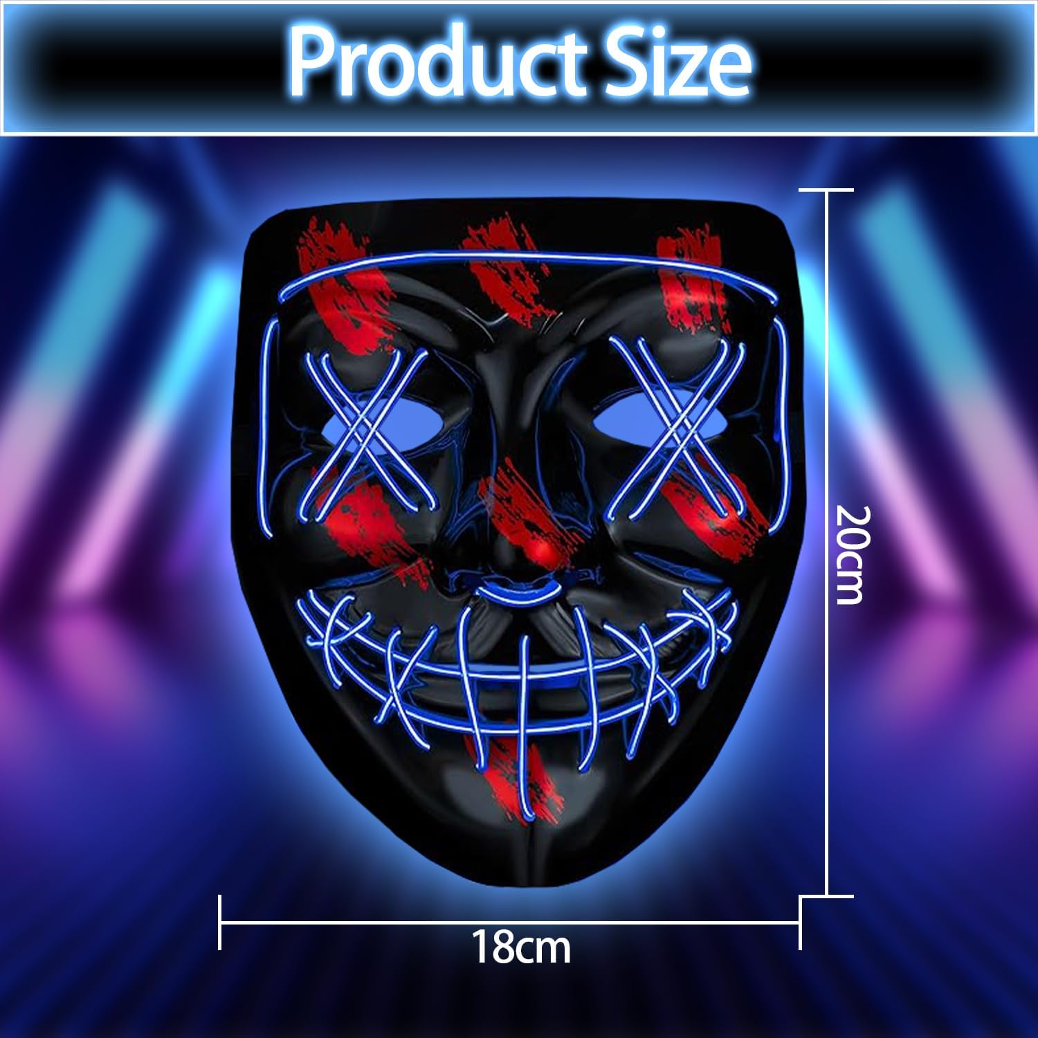 Descrizione prodotto Halloween LED Maschera, maschera The Purge, maschera luminosa e spaventosa LED, Halloween Maschera LED per Carnevale Caratteristiche: 😱 Maschera halloween led è realizzata in pvc di alta qualità e seta a luce fredda, è sicura e non tossica. 😱 La maschera LED light up adatto per la maggior parte dei bambini e degli adulti. 😱 La maschera luminosa è adatta per Halloween, feste a tema, feste rave, discoteca, feste di compleanno, mascherate, carnevale, masquerade e altri festival. 😱 Maschera halloween led ti renderà il centro della festa notturna. Specifica: Nome del prodotto: Maschera a LED Materiale: PVC e luce EL Dimensioni: come mostrato Area di rilevamento: viso intero Tipo di oggetti di scena: cosplay Tipo di batteria: 2 batterie AA (non incluse) Contenuto della confezione: 1 * Maschera a LED per Halloween Nota: 1. A causa della misurazione manuale, le dimensioni e il peso potrebbero presentare un certo errore. 2. A causa della differenza tra i diversi monitor, potrebbe esserci una leggera differenza di colore. Avviso di sicurezza Non adatto a bambini di età inferiore a 3 anni. Da usare esclusivamente sotto la supervisione di un adulto