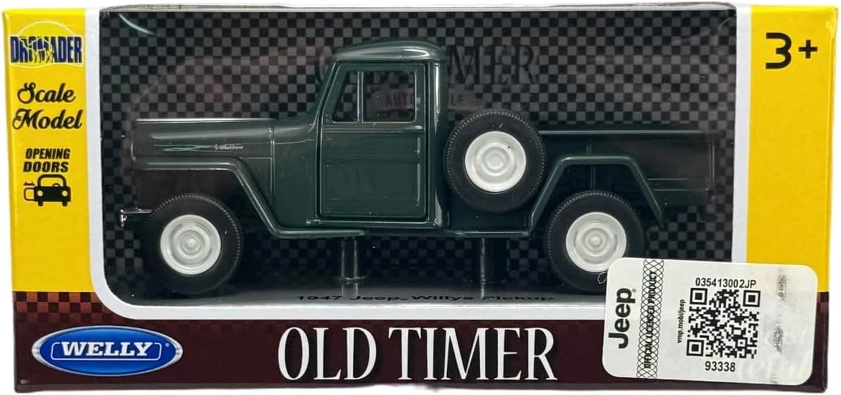 Welly modello auto compatibile con 1947 Jeep Willys Pickup Verde ca. 1/34-1/39 Metal Model Auto Die Cast Nuovo in scatola