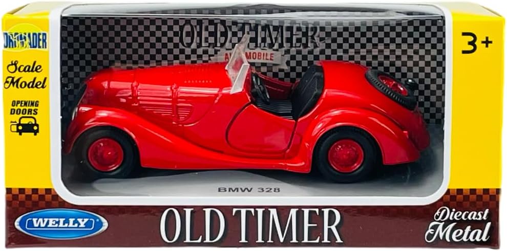Welly Modello Auto Compatibile con BMW 328 Roadster Cabrio Aperto Rosso Auto d'epoca 1937 – 1939 ca 1/34 – 1/39 Metal Model Auto Die Cast Nuovo in scatola 98874