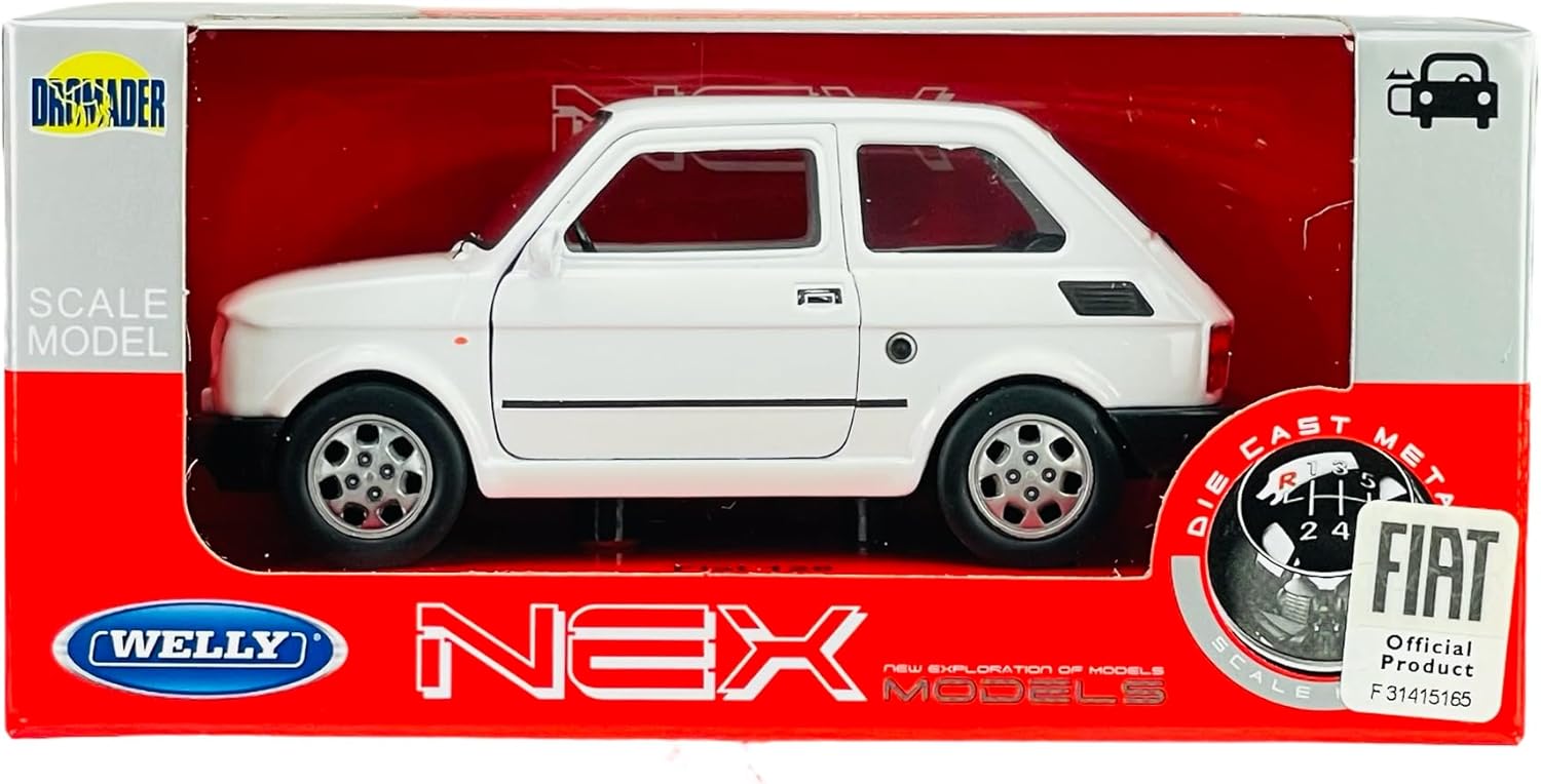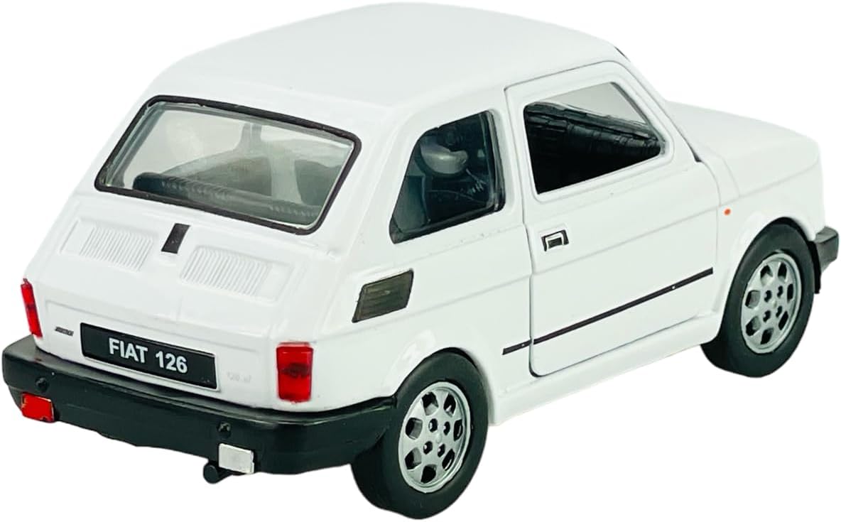 Welly modello auto compatibile con Fiat 126 bianco equivalente a Polski FIAT 126p 1972-2000 1/34-1/39 Metal Model Auto Die Cast Nuovo in scatola