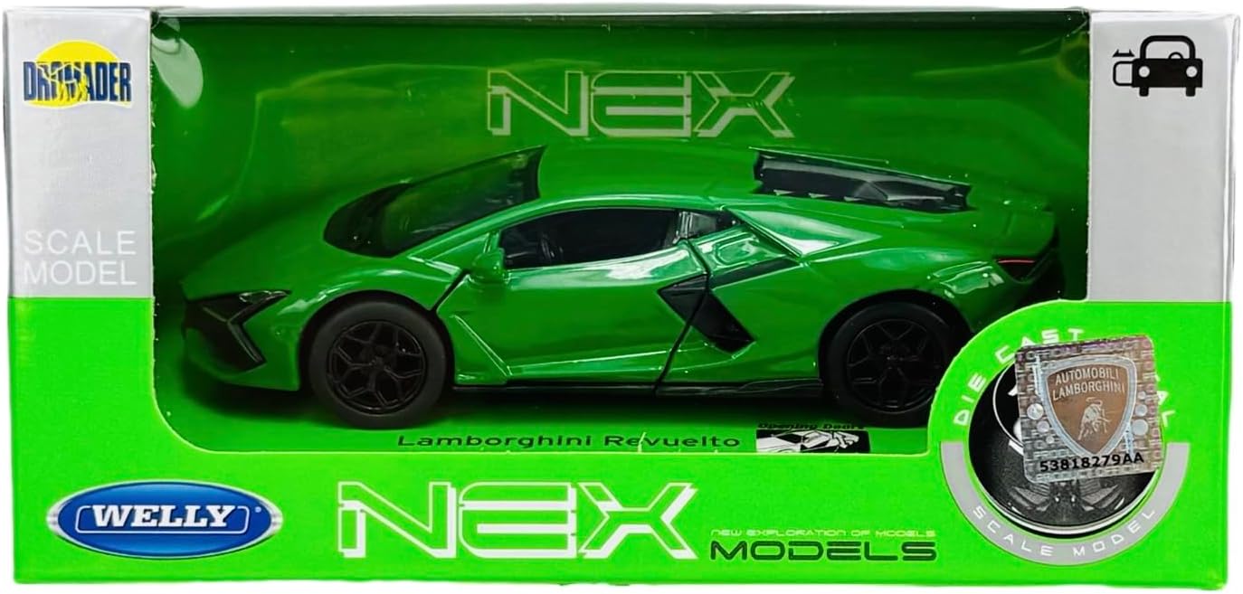 Welly modello auto compatibile con Lamborghini Revuelto verde ca 1/34-1/39 metallo Die Cast Nuovo in scatola 43848