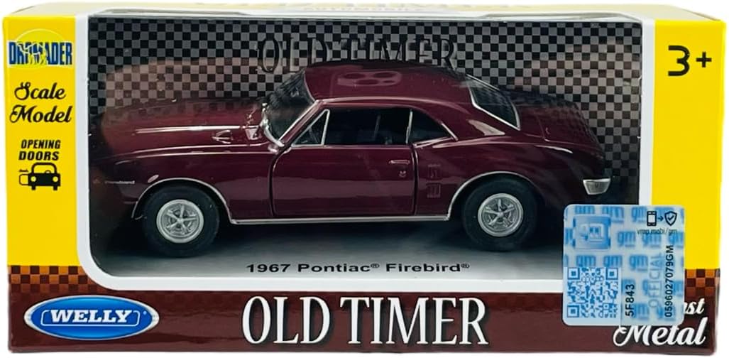 Welly modello auto compatibile con Pontiac Firebird Coupe rosso 1st generazione 1967-1969 ca 1/34-1/39 Metal Model Auto Die Cast Nuovo in scatola