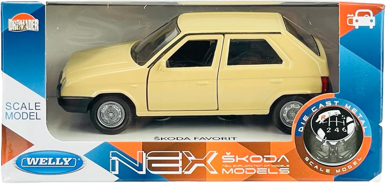 Welly modello auto compatibile con Skoda Favorit Beige ca 1/34-1/39 Metal Model Auto Die Cast Nuovo in scatola