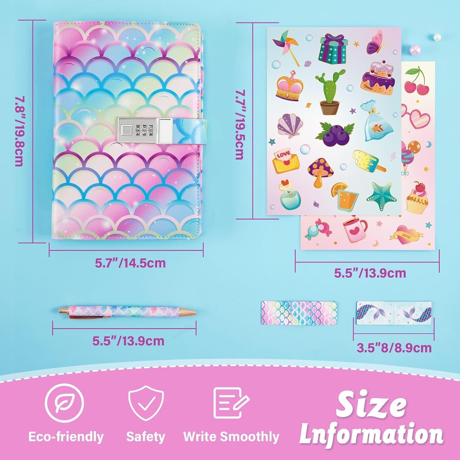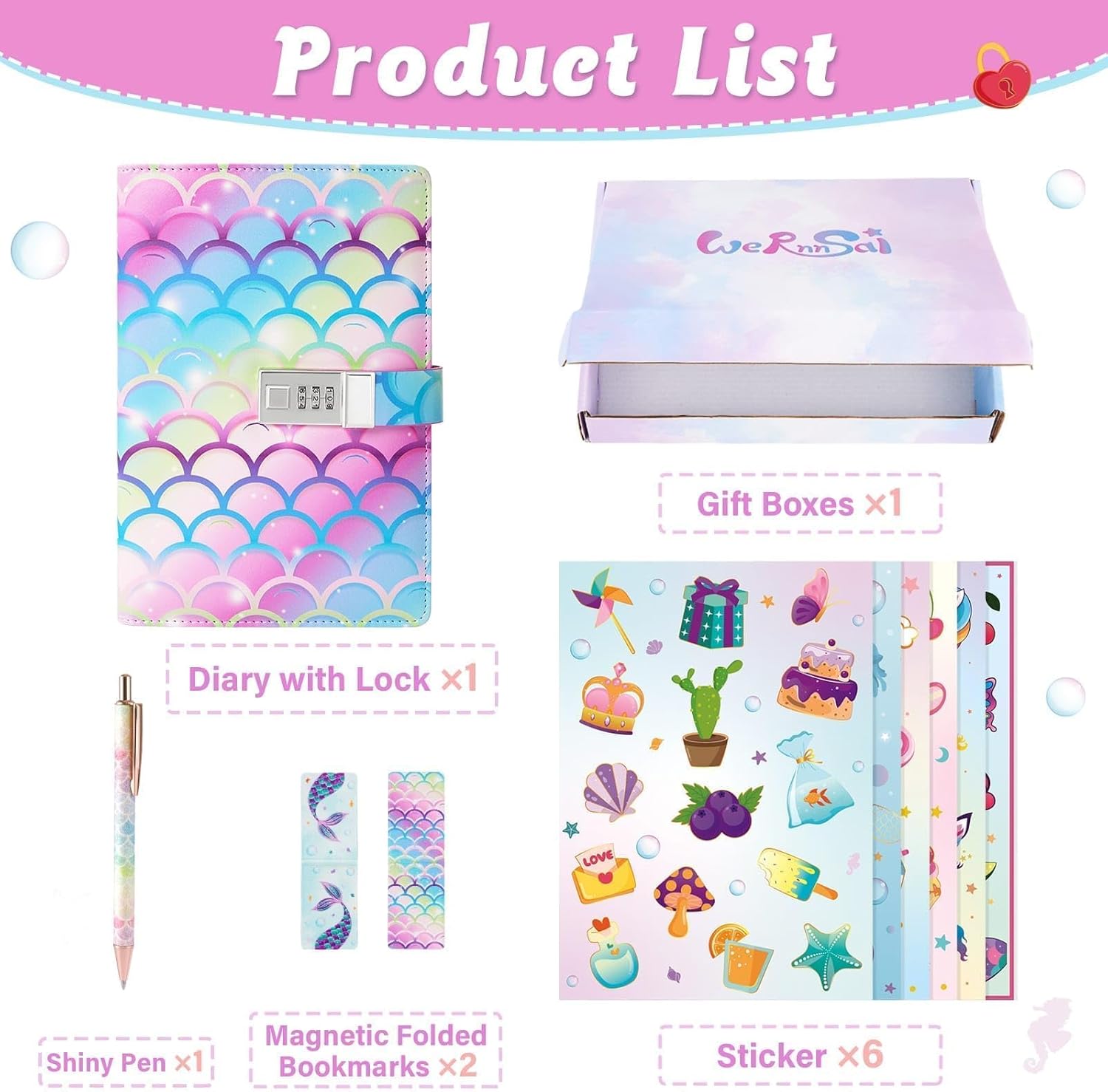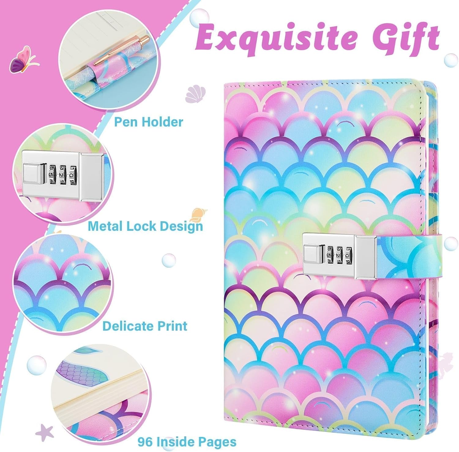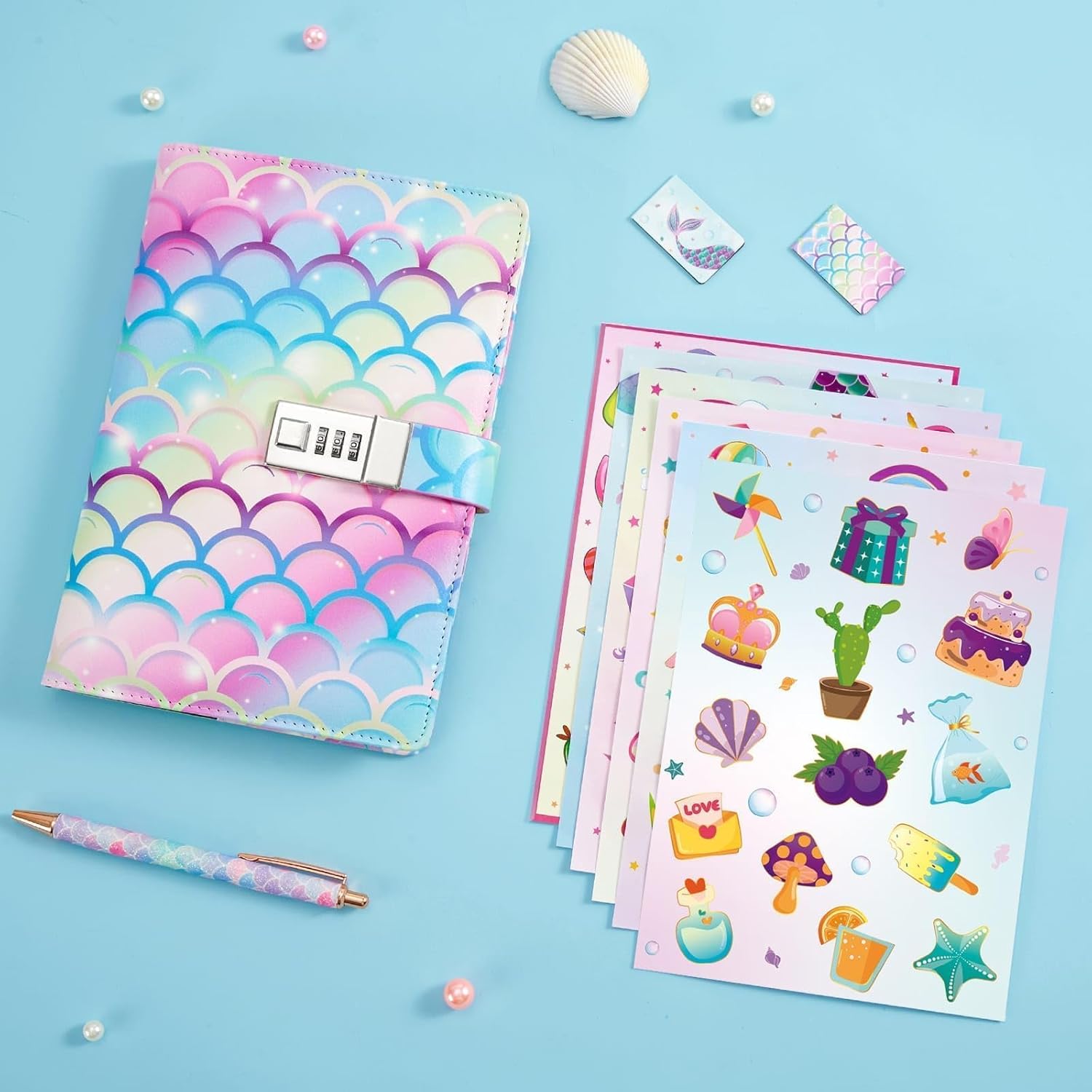 SET REGALO SQUISITO PER RAGAZZE: questo set di diari per bambini contiene 6 adesivi colorati, 2 segnalibri, 1 penna arcobaleno e 1 confezione regalo. Personalizza il tuo quaderno o regalalo ai tuoi cari. DESIGN AFFASCINANTE: questo set di diari a tema sirena ti immergerà in un mondo magico. La sua superficie in ecopelle formato A5 è perfetta per gli amanti degli unicorni. DIARIO DEI BAMBINI: Blocco con password per proteggere i tuoi pensieri e i tuoi sogni. Lascia che i bambini mantengano riservati i loro pensieri, i segreti e le espressioni creative. DIARIO DEI BAMBINI: Blocco con password per proteggere i tuoi pensieri e i tuoi sogni. Lascia che i bambini mantengano riservati i loro pensieri, i segreti e le espressioni creative. DIARIO DEI BAMBINI: Blocco con password per proteggere i tuoi pensieri e i tuoi sogni. Lascia che i bambini mantengano riservati i loro pensieri, i segreti e le espressioni creative.