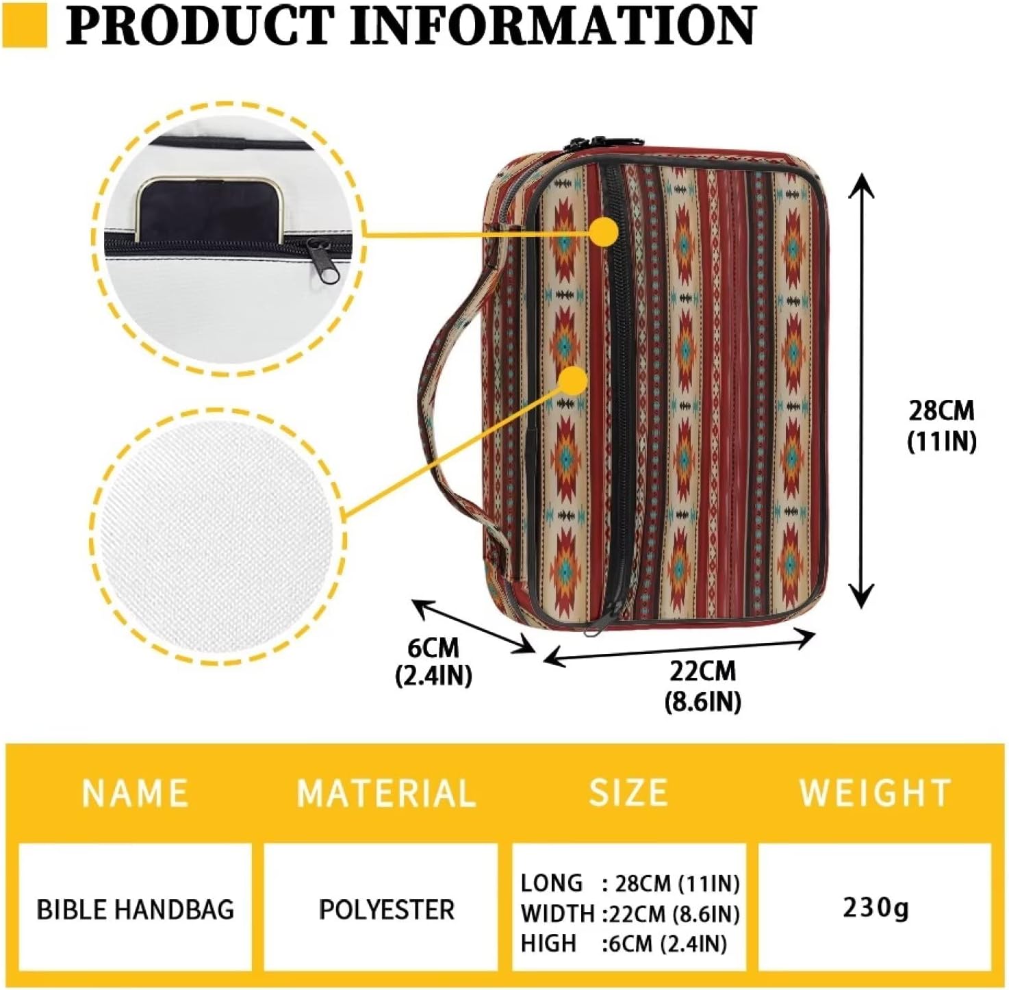 Materiale: questa custodia per bibbia è realizzata in tela di poliestere di alta qualità, leggera e resistente, morbida e robusta. Può proteggere la tua Bibbia o libro da graffi. Dimensioni: 28 cm x 6 cm x 22 cm, questa borsa Bibbia multifunzionale ha una tasca frontale con cerniera, l'interno ha 2 tasche laterali, 1 tasca verticale, 1 scomparto per segnalibri, 4 scomparti per penne e 1 cintura segnalibro. Multiuso: può essere utilizzato come porta bibbia, custodia per diario, copertina per libri in brossura, borsa cosmetica per trucco, custodia per tablet, borsa per libri di studio biblico, ecc. Le tasche interne aggiuntive consentono di riporre evidenziatori biblici, penne, diari di preghiera, bollettini della chiesa, note di sermone, biglietti di preghiera, appunti Portatile: la copertina della Bibbia è leggera e ha una robusta maniglia in modo da poterla portare ovunque, come scuole, biblioteche. Protable quando si va tra la scuola domenicale, la chiesa, la chiesa dei bambini e da e per l'auto. Ottimo regalo: le copertine per libri biblici sono progettate con vari motivi e colori diversi, e puoi anche personalizzare immagini personalizzate sulla borsa della Bibbia, adatte per adulti, donne, uomini, bambini, ragazzi e ragazze, un regalo perfetto per compleanno, Natale, giorno del Ringraziamento per la tua famiglia e gli amici