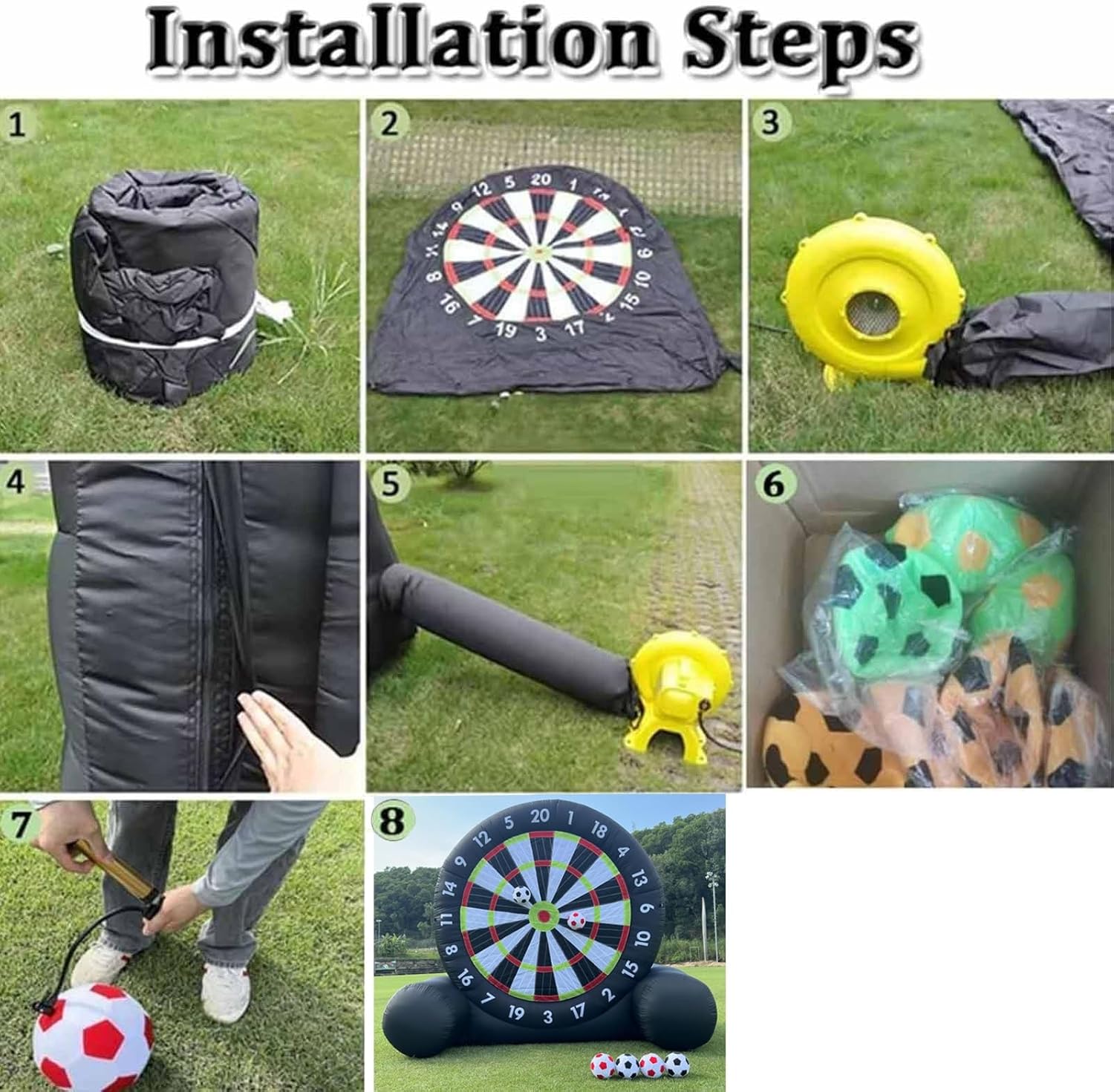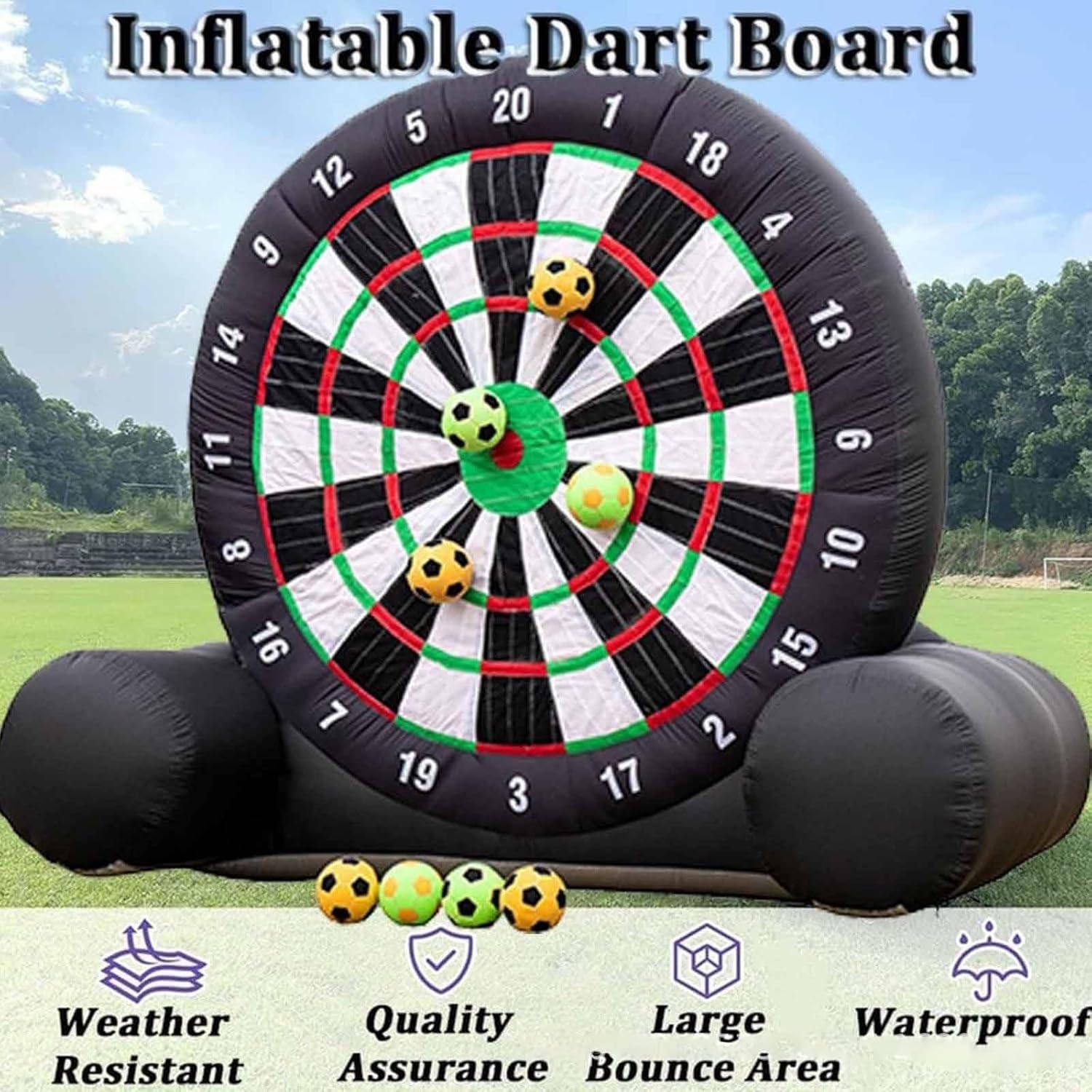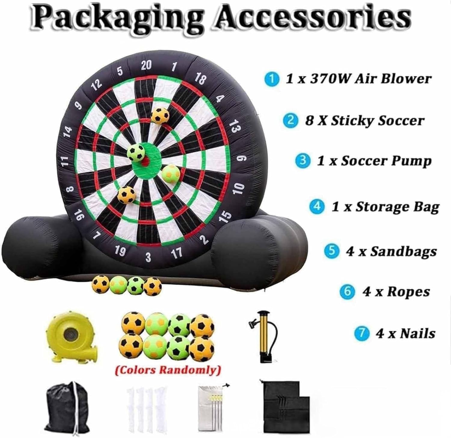 【Struttura rinforzata】: Questo bersaglio gonfiabile per freccette da calcio è realizzato in tessuto Oxford spesso con doppie cuciture rinforzate. La sua superficie autorigenerante garantisce l'aggancio ripetuto delle palline senza distaccarsi e la sua struttura complessiva resiste all'uso prolungato all'aperto 【Installazione rapida】: Dall'apertura della confezione all'utilizzo, bastano pochi minuti. Prima di gonfiare, assicurarsi che la cerniera laterale sia ben chiusa per una tenuta ermetica. Dopo l'uso, la presa d'aria inferiore si ripiega rapidamente e il tabellone si ripiega fino a raggiungere le dimensioni di un normale tappetino da picnic per riporlo facilmente 【Gameplay divertente】: combinando le abilità calcistiche con il punteggio delle freccette, la superficie del bersaglio sovradimensionata rende facile la partecipazione sia per i bambini che per gli adulti. Puoi contare gli anelli secondo le regole tradizionali delle freccette o creare il tuo gameplay unico, come le gare di staffetta a squadre 【Set completo】: il set include un soffiatore da 37 W per un avvio rapido. Le otto palline sono rivestite in feltro antistatico. L'area del punteggio è colorata per garantire una visibilità vivida anche in piena luce solare 【Applicazione versatile】: adatto a tutto, dai barbecue in giardino ai carnevali. La tracolla portatile inclusa lo rende facile da trasportare per una persona. Quattro picchetti e sacchi di sabbia aiutano a fissare il dispositivo, mentre quattro frangivento ne consentono l'utilizzo in vari ambienti, inclusi prati e spiagge