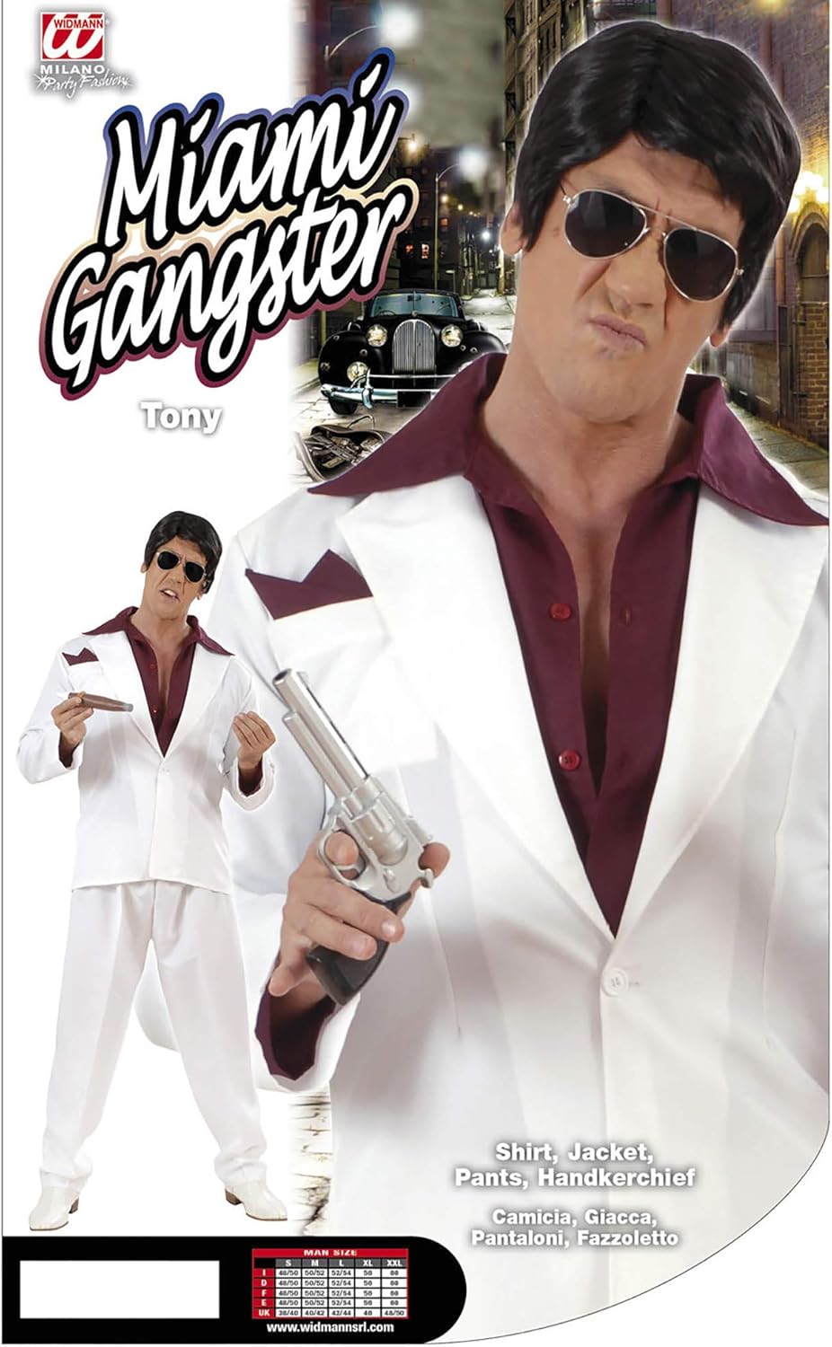 Costume adulto Modello: Costume Tony Gangster Contenuto: camicia, gilet, pantaloni e tessuto Taglia: M Per travestimenti e altre occasioni