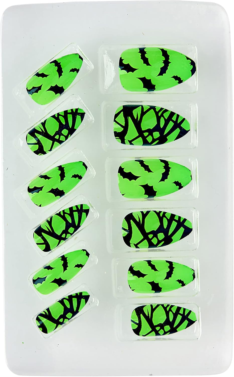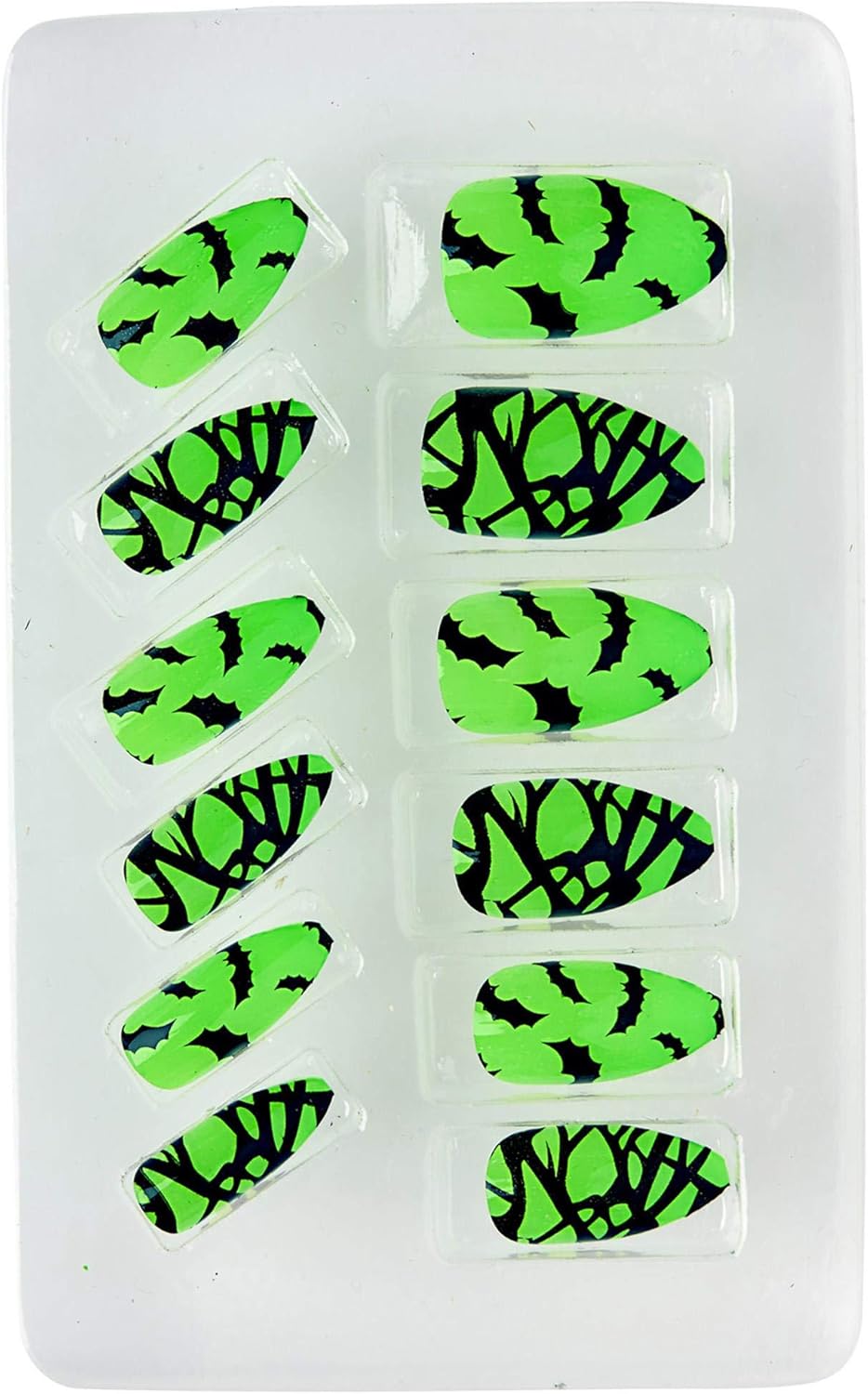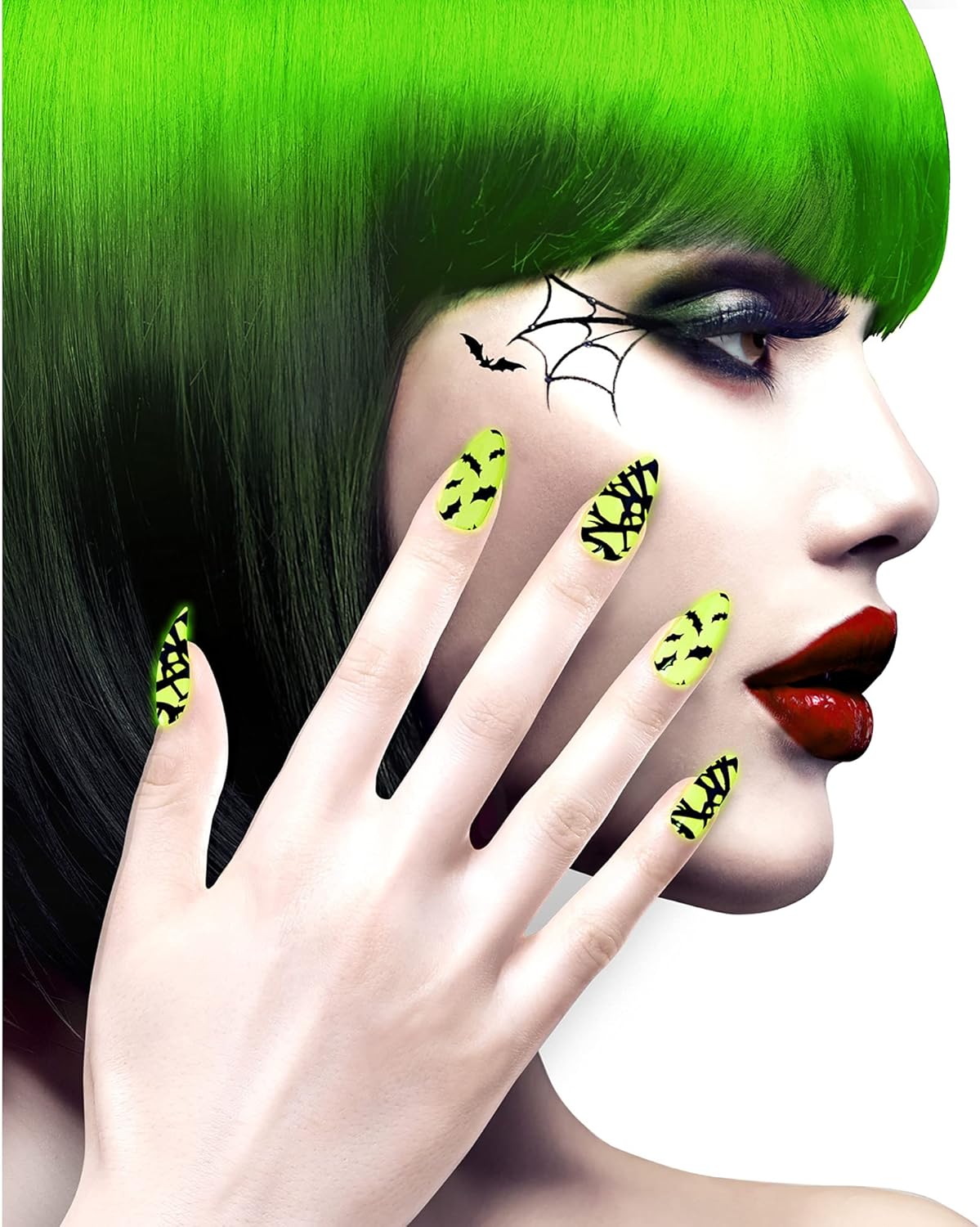 Set di 12 chiodini pipistrello fluorescenti autoadesivi, ideali per truccarsi e trasformarsi ad Halloween, Carnevale, tutte le feste in maschera e a tema e per divertirsi con gli amici.