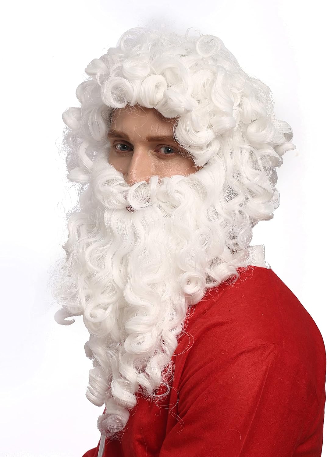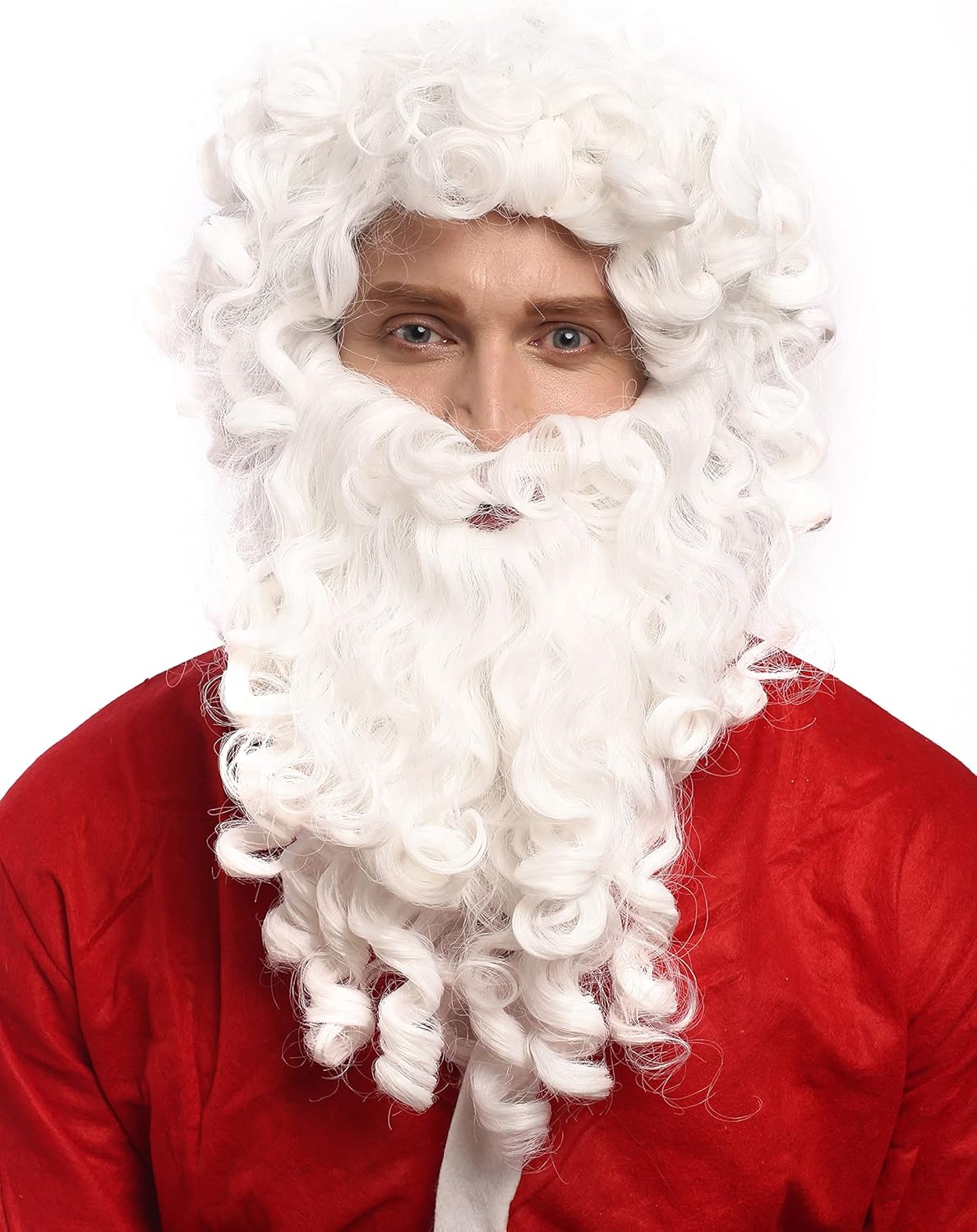 Set di parrucca e barba, con ricci fitti, per Babbo Batale, Santa Claus o San Nicola…o anche Dio. Codice colore: P60. Lunghezza: circa 35 cm, barba: circa 35 cm. Nuova e con imballo originale. Marca: WIG ME UP