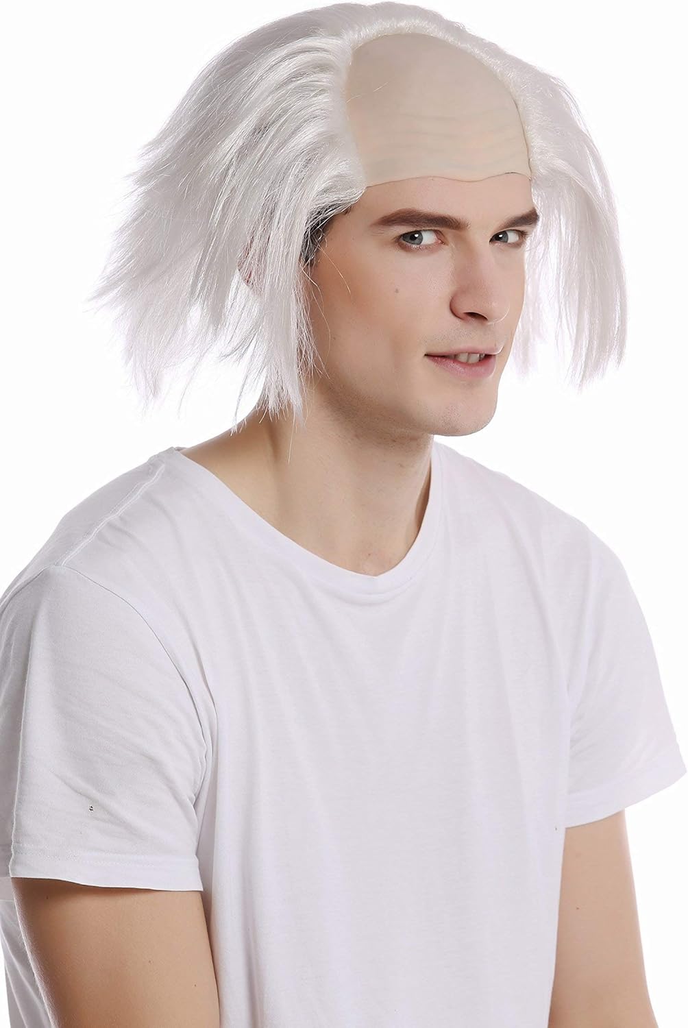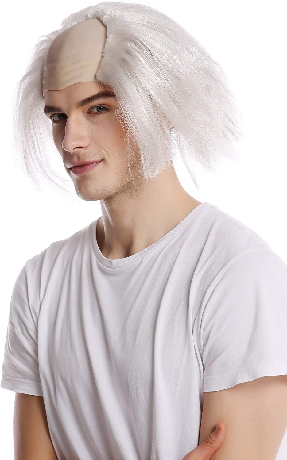 I lunghi capelli bianchi sfilacciati e da pazzo, che scendono inosservati sui lati dell'ampia pelata, sono perfetti non solo per la tipologia di professore distratto o scienziato pazzo, ma anche come Frankestein, o meglio il suo gobbo, l'assistente Igor che strascica i piedi attraverso le gallerie del fosco castello. Nuova e con imballo originale. Marca: WIG ME UP