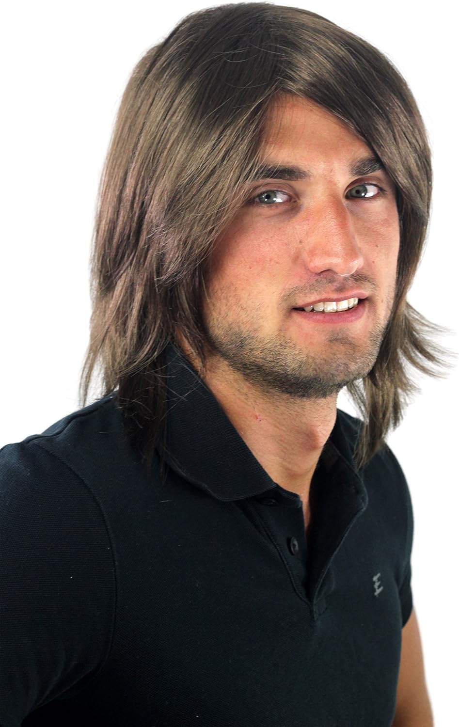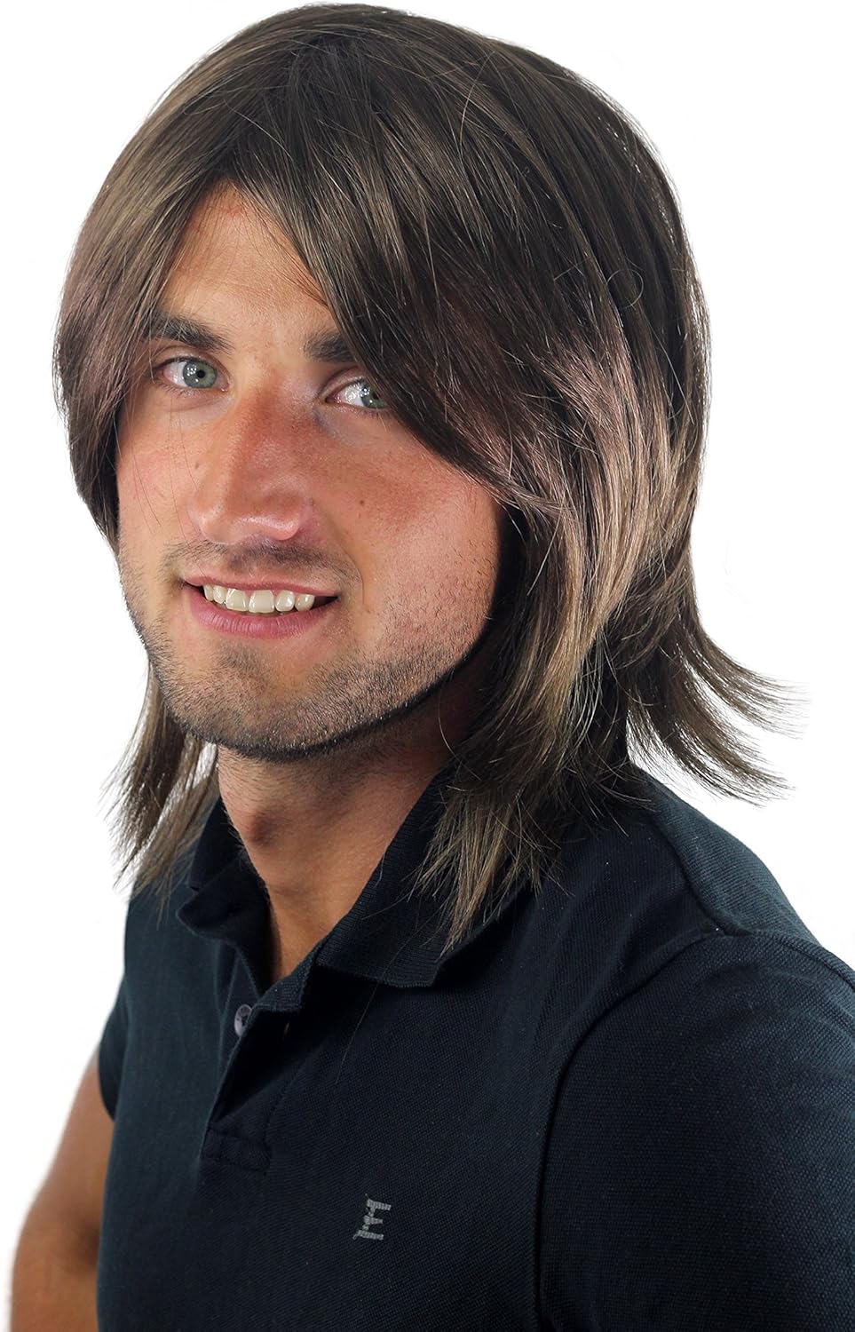 Così Cool così Indie!Parrucca da uomo con riga laterale, castana. Codice colore: 10, lunghezza: circa 35 cm.