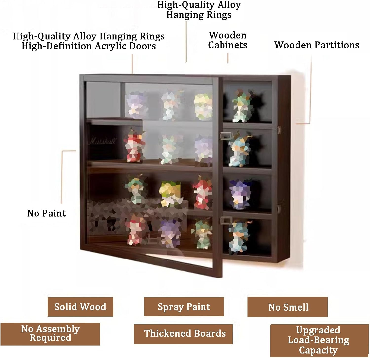 Materiale in legno massiccio: la vetrina è realizzata in legno massiccio, con struttura stabile, non facile da deformare o rompere, non disturbata dagli odori, forte capacità portante e lunga durata Forte capacità portante: la tecnologia a mortasa e tenone rende la connessione tra le tavole di legno stretta e bella, solida e non facile da allentare; il materiale spesso del pannello migliora la capacità di carico, la struttura è doppiamente stabile e più durevole Accessori squisiti: cerniere hardware, strettamente collegate, non facili da allentare; Serrature hardware, facili da aprire e chiudere. Protezione intima, lucida e liscia, al sicuro da collisioni e impatti. Porta in acrilico: la porta in acrilico trasparente non solo offre un'eccellente visuale, ma protegge anche i tuoi giocattoli dai raggi UV, dall'acqua e dalla polvere. Ampia gamma di usi: le nostre scatole da esposizione sono adatte per esporre action figure, mini figure, piccoli oggetti da collezione, piccoli ciottoli e altri oggetti da collezione. Perfetto per il tuo ufficio, soggiorno, camera da letto, sala giochi, cucina, ufficio o qualsiasi altra stanza