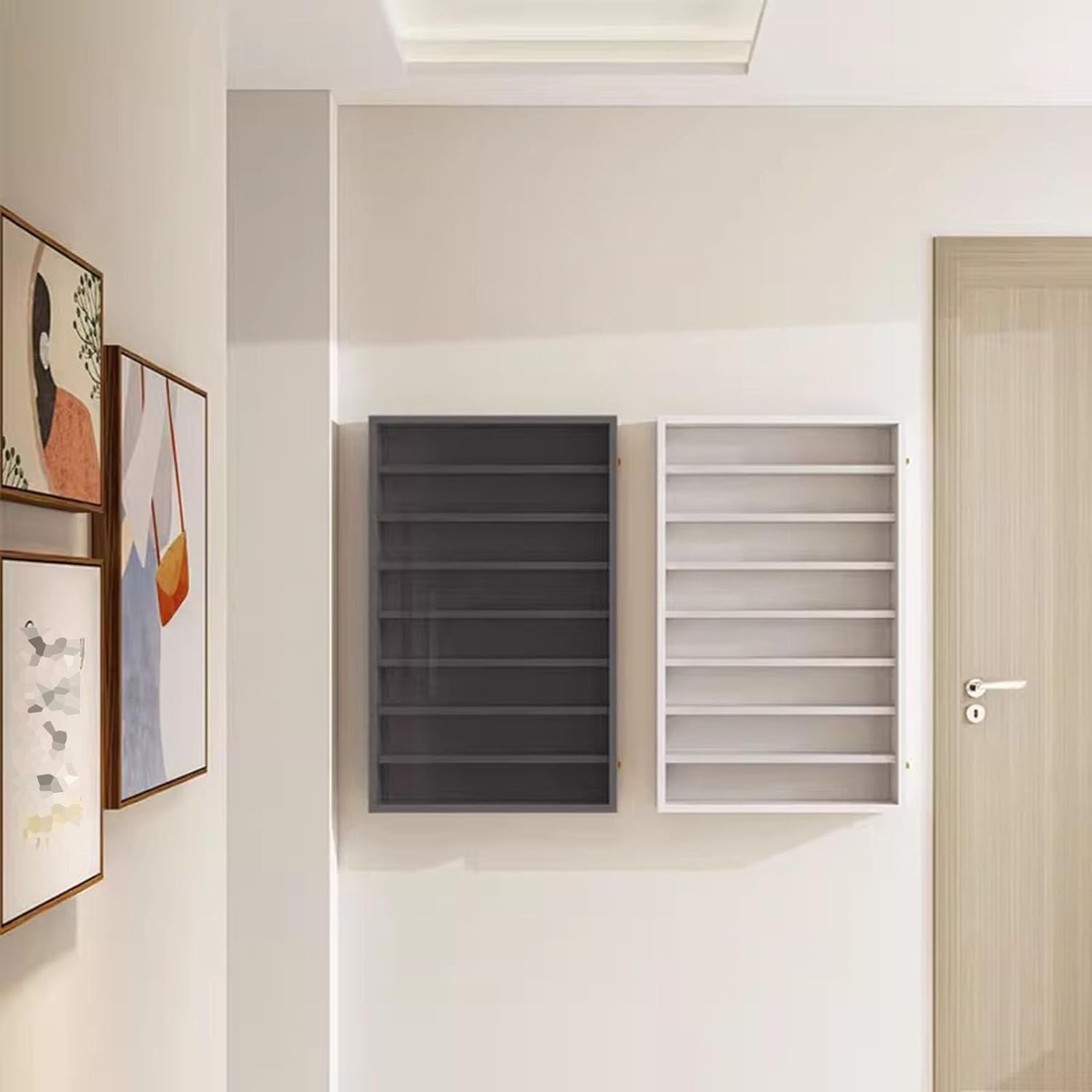 Materiale: realizzato con pannello in legno massello + porta in vetro + telaio della porta in alluminio, raffinato processo di sigillatura dei bordi, forte capacità portante, lunga durata, non facile da rompere, nessun odore irritante, nessuna paura di deformazione Design di archiviazione multistrato: la scatola di visualizzazione è adatta per esporre figurine, mini figurine, piccoli oggetti da collezione, piccoli ciottoli e altri oggetti da collezione; riponi vari oggetti in ordine e riponili facilmente a colpo d'occhio Risparmio di spazio: l'opzione con montaggio a parete non solo consente di risparmiare spazio sulla scrivania, ma utilizza anche efficacemente lo spazio verticale della parete, che è molto adatto per piccoli appartamenti, uffici o aree espositive limitate Adatto per una varietà di occasioni: Sia che tu voglia esporre la tua collezione di figurine, modelli in miniatura o giocattoli, questa scatola trasparente per esposizioni di figurine è la scelta ideale e può essere posizionata nel tuo soggiorno, ufficio, ufficio o anche negozio o mostra Nessun assemblaggio richiesto: la vetrina delle figurine viene fornita completamente assemblata e puoi appenderla al muro o posizionarla facilmente sulla scrivania. Puoi posizionare la collezione secondo le tue idee