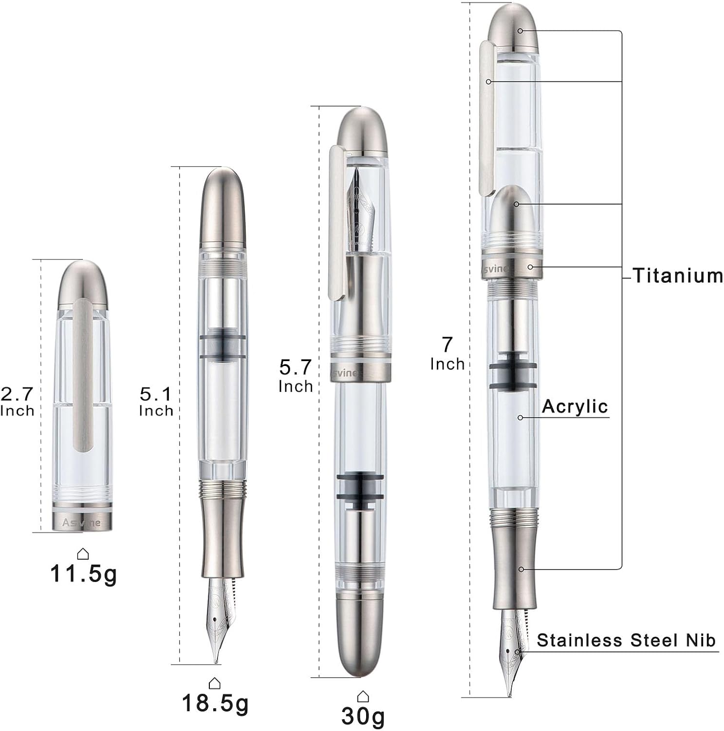 ✅ Materiale durevole: tutte le parti sono realizzate in titanio e acrilico di alta qualità. L'eccezionale titanio è noto per la sua durata estremamente elevata ed eccezionalmente leggero. ✅ Ben bilanciato per la scrittura quotidiana - La parte ergonomica in titanio ha un design antiscivolo e garantisce una presa comoda per lunghi periodi di scrittura. ✅ Elevata capacità di inchiostro: il sistema di riempimento a pistone integrato della penna contiene molto più inchiostro di una cartuccia e consente di aspirare l'inchiostro direttamente dalla bottiglia e non è necessario alcun convertitore! ✅ Scrittura fluida e flusso semplice: dotato di un pennino centrale in iridio e di un sistema di alimentazione di alta qualità per assicurarti di scrivere senza sforzo su qualsiasi carta. ✅ Garanzia di qualità - Il nostro artigiano realizza artigianalmente ogni penna e ne controlla individualmente la qualità impeccabile prima di inviarla. Se hai problemi con questa penna, inviaci un messaggio!