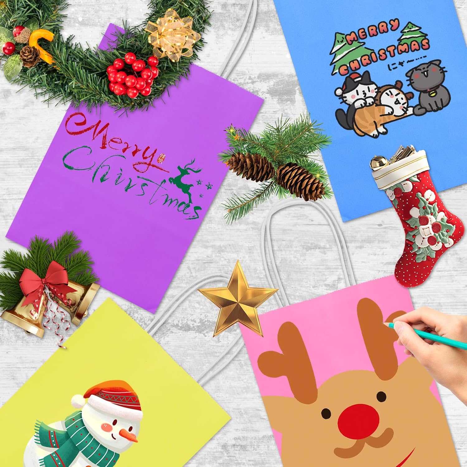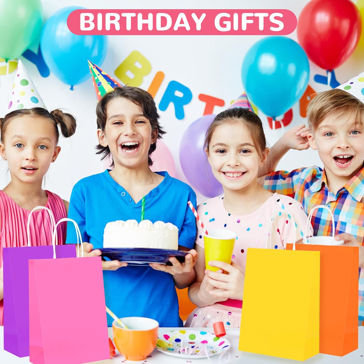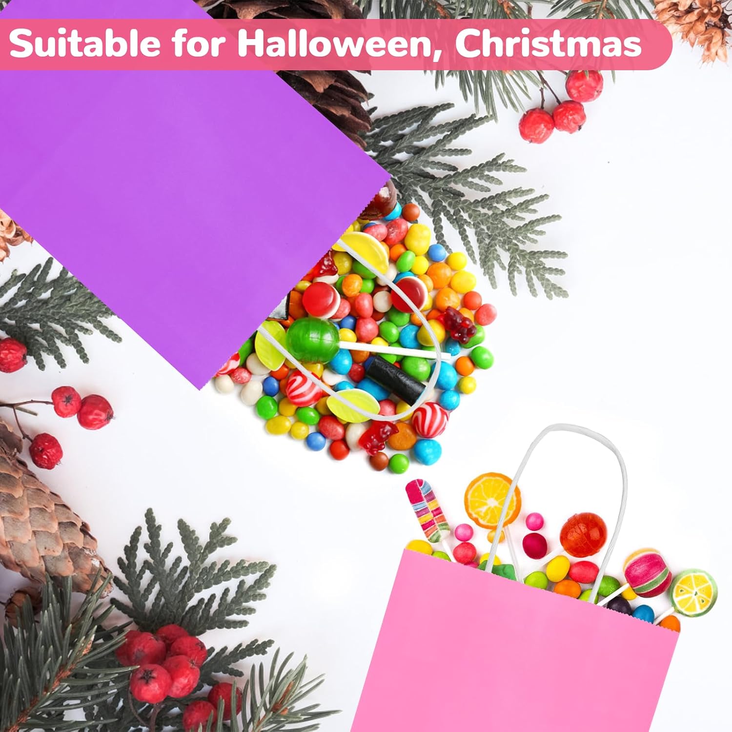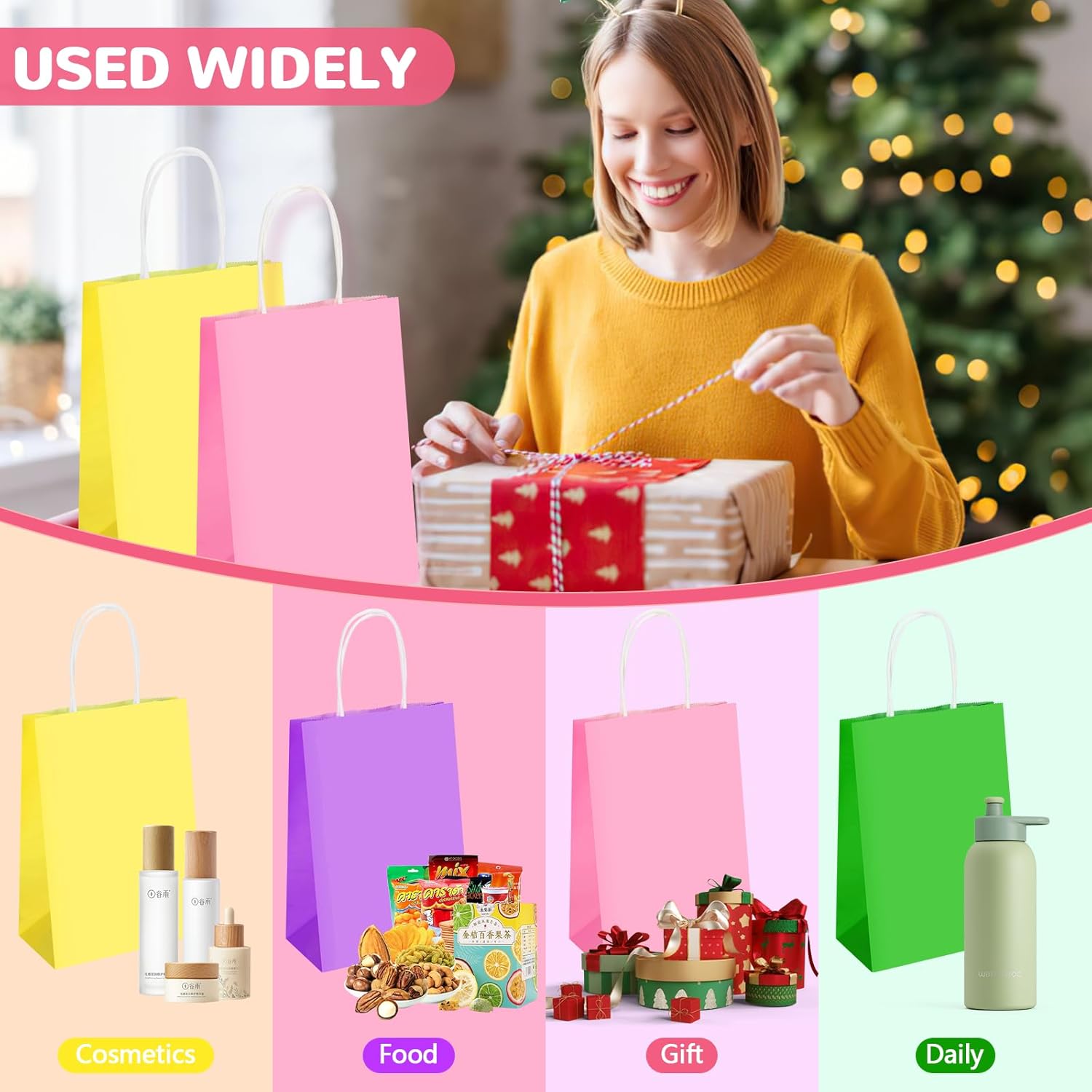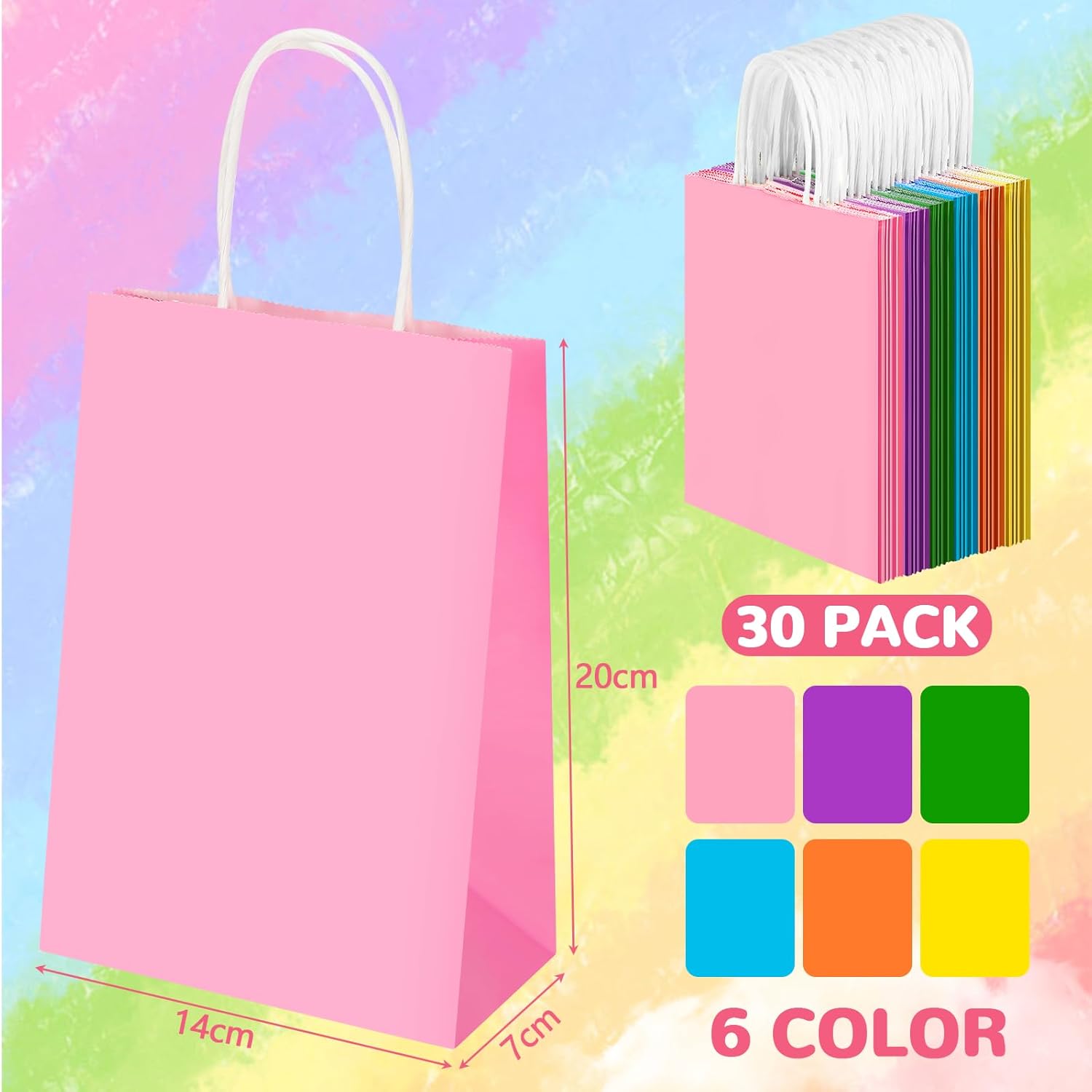 【Set di sacchetti di carta】 I sacchetti di carta colorati hanno una dimensione di 20 x 14 x 7 cm. Il set contiene 30 sacchetti di carta colorati in sei colori diversi: viola, rosa, arancione, giallo, verde e blu, cinque sacchetti per colore. 【Robusti ed ecologici】 I sacchetti regalo sono realizzati in carta kraft di alta qualità, liscia e resistente agli strappi. Il materiale è completamente biodegradabile e riciclabile, quindi non devi preoccuparti dei danni ambientali. Forte adesione: il fondo e i manici dei sacchetti regalo sono fissati con una colla forte, che garantisce un collegamento stabile e previene la caduta. Il design a fondo piatto consente ai sacchetti di carta di rimanere stabili. 【Protezione degli articoli】I piccoli sacchetti regalo proteggono efficacemente i tuoi regali da danni, graffi o contaminazione e assicurano che i tuoi regali siano presentati nelle migliori condizioni. 【Ampia gamma di usi】 I sacchetti regalo sono adatti per molte occasioni come lauree, Pasqua, feste di compleanno, Halloween e matrimoni. Che si tratti di conservare torte, caramelle, biscotti, pane, cioccolatini, cosmetici o altri oggetti, i sacchetti di carta colorati con manici soddisfano le vostre esigenze. 【Personalizzazione fai da te】 Le borse da festa sono ideali per artigiani e appassionati di fai da te. Possono essere verniciati, stampati e decorati a piacere per rendere unici i tuoi sacchetti di carta kraft.