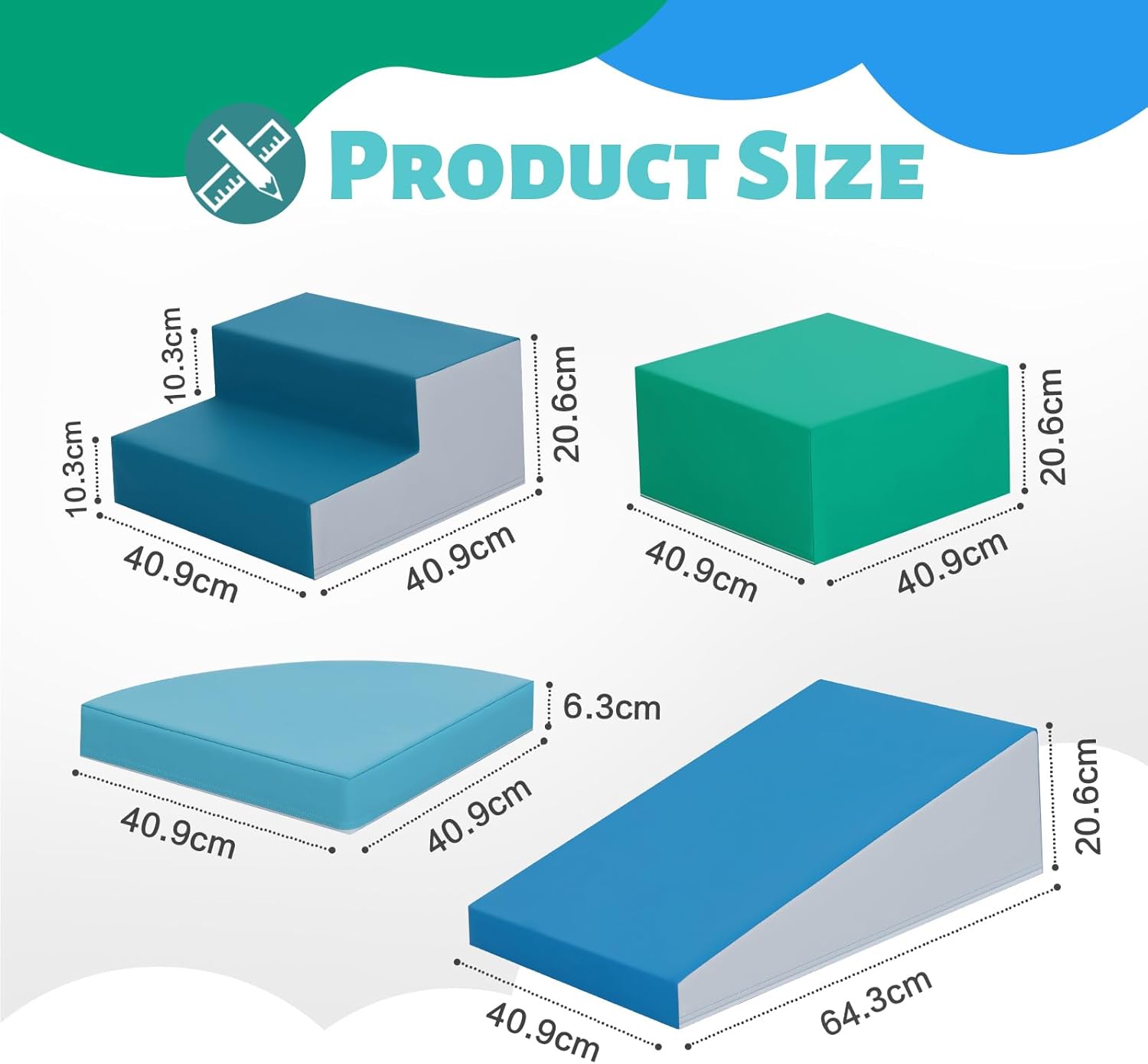 Avviso! Se c'è un problema in cui i blocchi in schiuma non rimbalzano, vi preghiamo di contattarci tempestivamente via email Resistente e Facile da Pulire: Realizzato in morbida schiuma e pelle PU lavabile, è sicuro per i bambini e facile da mantenere pulito Set Completo da 6 Pezzi: 2 scale, 2 mezze lune, 1 quadrato e 1 scivolo: tante combinazioni per costruire e giocare Stimola l’Apprendimento: Colori vivaci e forme diverse aiutano i bambini a riconoscere colori, dimensioni e spazi Sviluppa le Abilità Motorie: Facile da assemblare e trasformare—perfetto per stimolare creatività, coordinazione e gioco attivo Ottimo Regalo per Bambini: Perfetto per casa o asilo, è un regalo utile e sicuro per compleanni e occasioni speciali