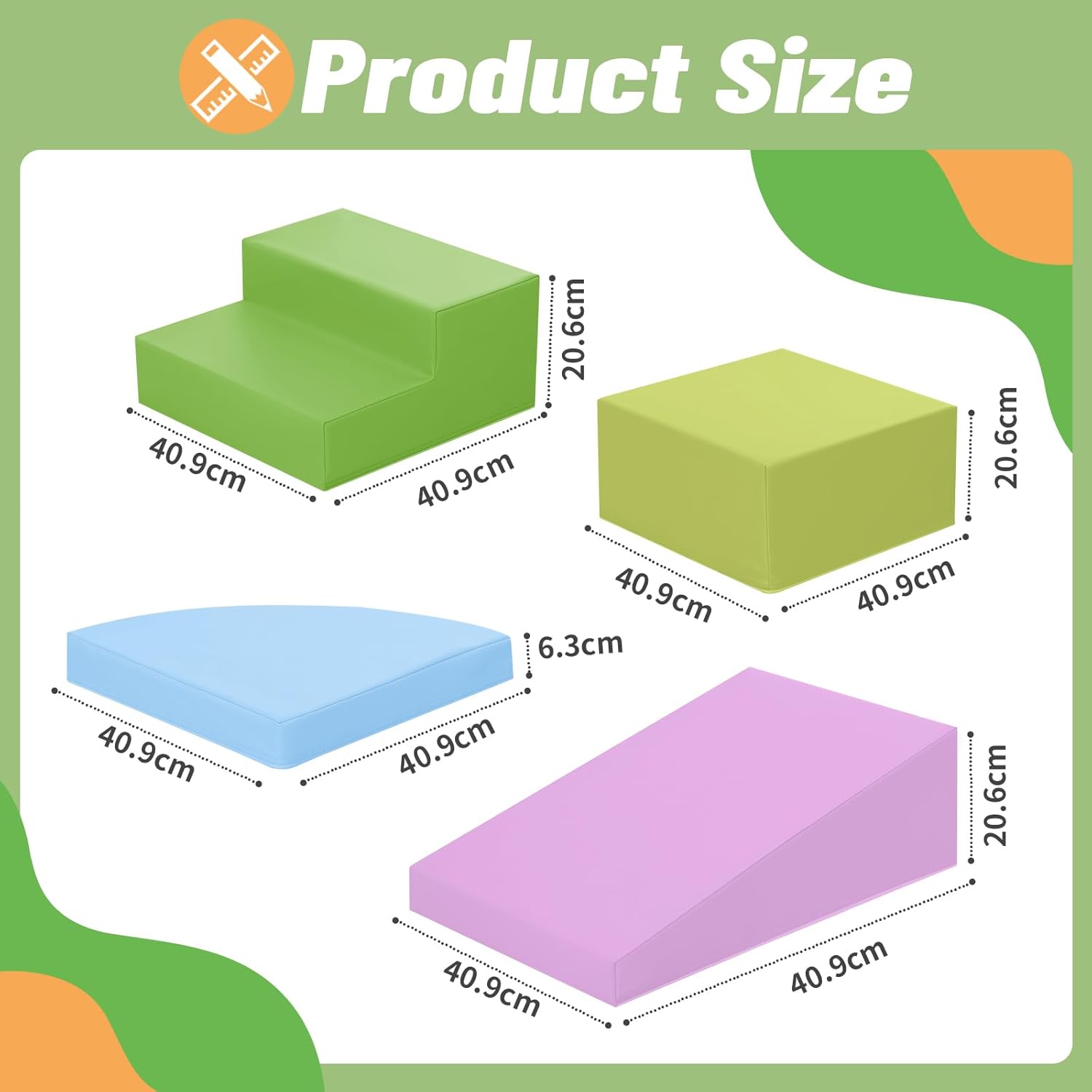 Avviso! Se c'è un problema in cui i blocchi in schiuma non rimbalzano, vi preghiamo di contattarci tempestivamente via email Resistente e Facile da Pulire: Realizzato in morbida schiuma e pelle PU lavabile, è sicuro per i bambini e facile da mantenere pulito Set Completo da 6 Pezzi: 2 scale, 2 mezze lune, 1 quadrato e 1 scivolo: tante combinazioni per costruire e giocare Stimola l’Apprendimento: Colori vivaci e forme diverse aiutano i bambini a riconoscere colori, dimensioni e spazi Sviluppa le Abilità Motorie: Facile da assemblare e trasformare—perfetto per stimolare creatività, coordinazione e gioco attivoOttimo Regalo per Bambini: Perfetto per casa o asilo, è un regalo utile e sicuro per compleanni e occasioni speciali