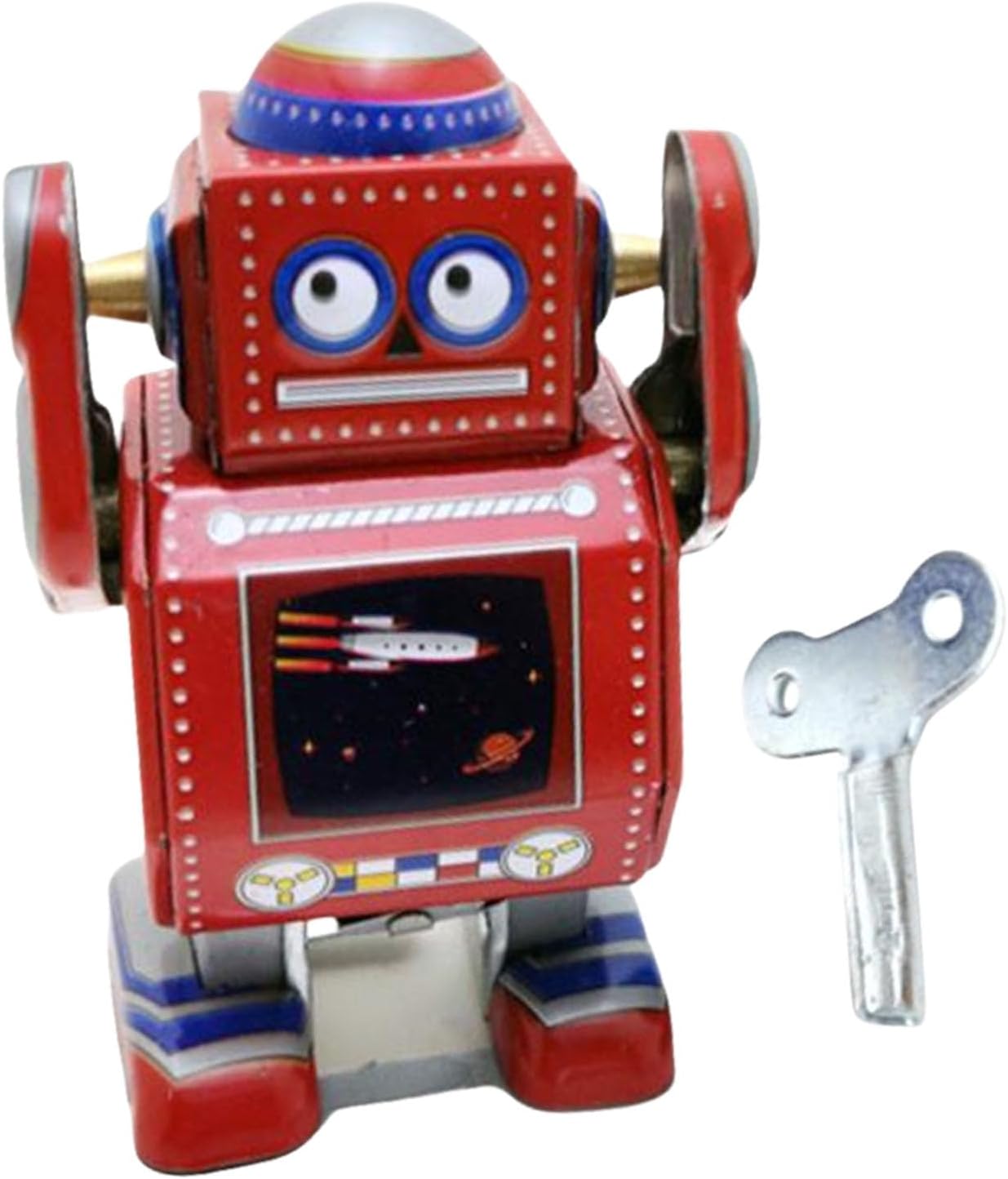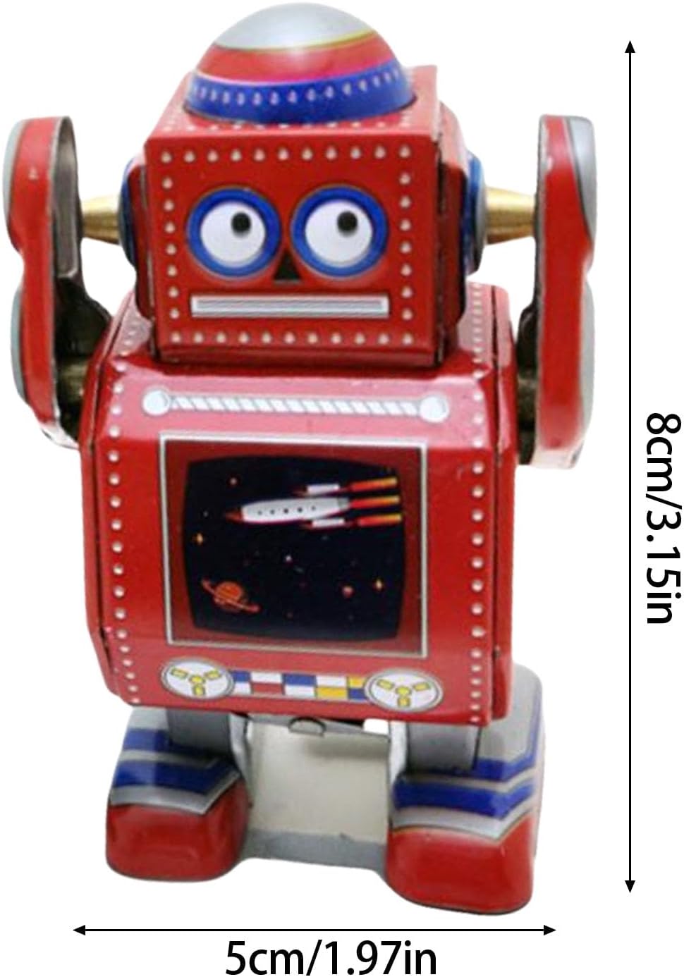 Utilizzare piastra di lamiera selezionata, questo giocattolo robot Windup dispone di dettagli intrinsecamente e un meccanismo di orologio robusto che può funzionare autonomamente Come un ottimo ornamento da scrivania, pezzi unici per l'intrattenimento domestico o un regalo creativo per le vacanze, questo robot Windup porta divertimento e un tocco di storia a qualsiasi ambiente Questo robot Windup perfetto per i bambini e gli appassionati di giocattoli d'epoca e una grande aggiunta a qualsiasi collezione o come regalo per coloro che apprezzano i giocattoli senza tempo Scopri il fascino della nostalgia con il robot Tinplate, un giocattolo Windup con i suoi classici design retrò e funzionamento senza batteria Giocattoli robotici per piccole lastre di latta facili da trasportare e visualizzare, il che rende ottimo per i giochi e la decorazione in diversi ambienti