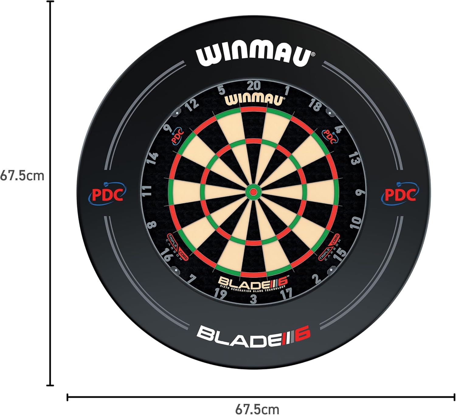 Winmau Bersaglio Triple Core con tre precisi strati di sisal per un'aderenza ottimale delle freccette, basso rimbalzo e superficie di gioco uniforme: il bersaglio professionale perfetto in acciaio per la massima precisione e durata. Bersaglio professionale Winmau approvato WDF per tornei: bersaglio ufficiale in acciaio con la massima precisione e qualità, perfetto per giocatori professionisti e per tutti coloro che cercano un bersaglio di prima classe. Winmau Bersaglio con semplice sistema di montaggio Rota-Lock: fissaggio sicuro e veloce di qualsiasi bersaglio in acciaio alla parete. Livellamento perfetto e tenuta salda per bersagli professionali e bersagli classici. PDC Surround ufficiale incluso: sparatutto per pareti con il bersaglio professionale con anello protettivo di Winmau, come nei tornei. Garantisce sicurezza e dona al tuo set bersaglio un aspetto professionale ed elegante. Set completo di freccette Winmau: include 2 set di freccette in acciaio di alta qualità con alette Winmau Prism. Perfetto set di bersaglio all-in-one con surround per casa, pub o allenamento professionale con bersaglio professionale in acciaio.