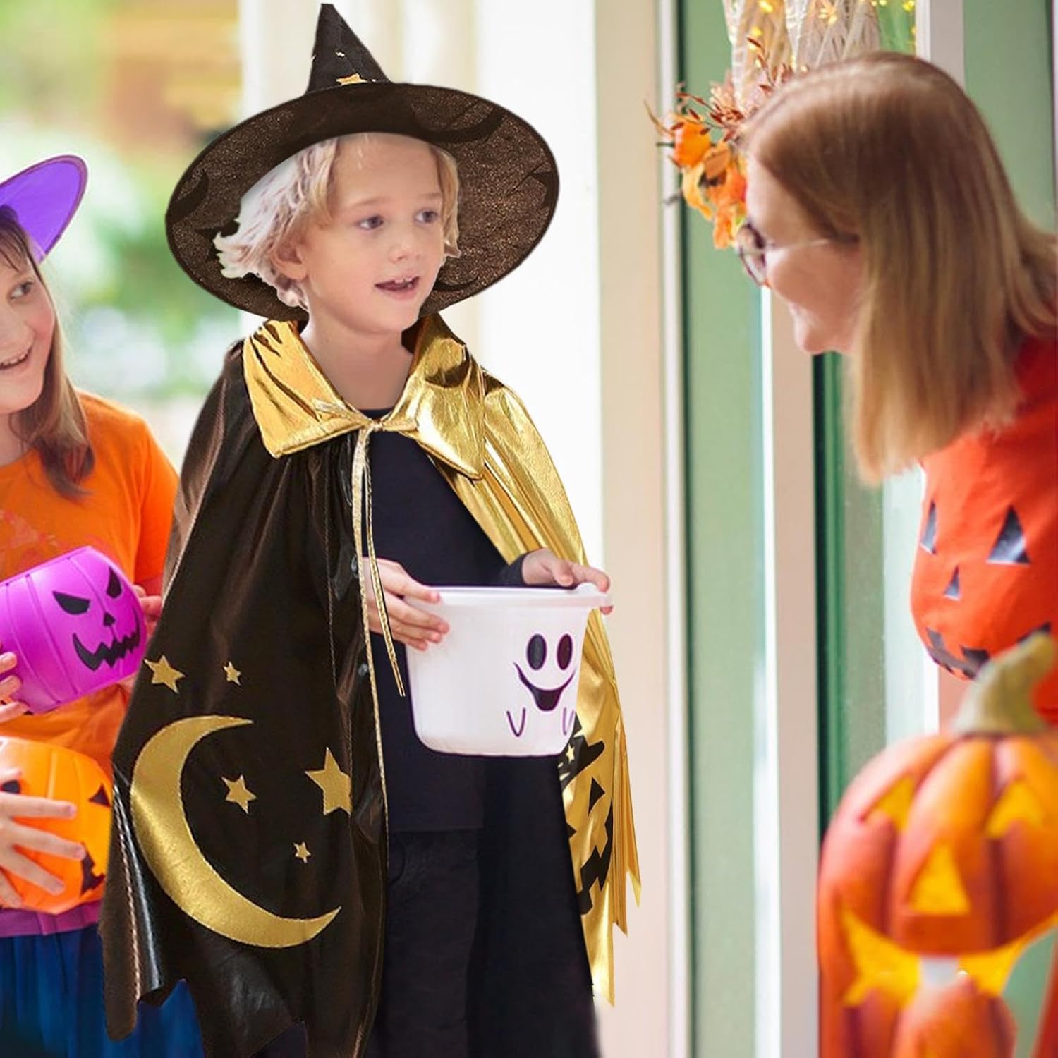 Connessione tra pari: migliorare l'interazione tra genitori e bambini o colleghi con questo mantello delle streghe, perfetta per il gioco di ruolo con la famiglia o gli amici. Morbido da indossare: realizzato con materiali eccellenti e tessuti ultra-morbidi, questo mantello da strega offre una vestibilità sicura e confortevole che sembra un abbraccio caldo, pneumatico per lunghe ore di usura. Applicazione versatile: migliora il tuo guardaroba con il mantello delle streghe, non solo per Halloween ma anche per le giocate scolastiche, le palle mascherate ed eventi familiari. Vestiti con stile e crea ricordi duraturi. Scelta creativa: la creatività di tuo figlio con il mantello delle streghe. Una scelta meravigliosa per impegnarsi in attività di gioco di ruolo piene di divertimento che aiutano nella crescita sana. per compleanni e vacanze, trasmette i buoni auguri del donatore aggiungendo un tocco di valore pratico e creatività alle loro attività. Atmosfera fantasy: questo mantello per bambini di Halloween, creando un'atmosfera misteriosa piena di fantasia, presenta un design unico e abbinamento a colori che combina gli elementi di stelle e lune con l'immagine di una strega.