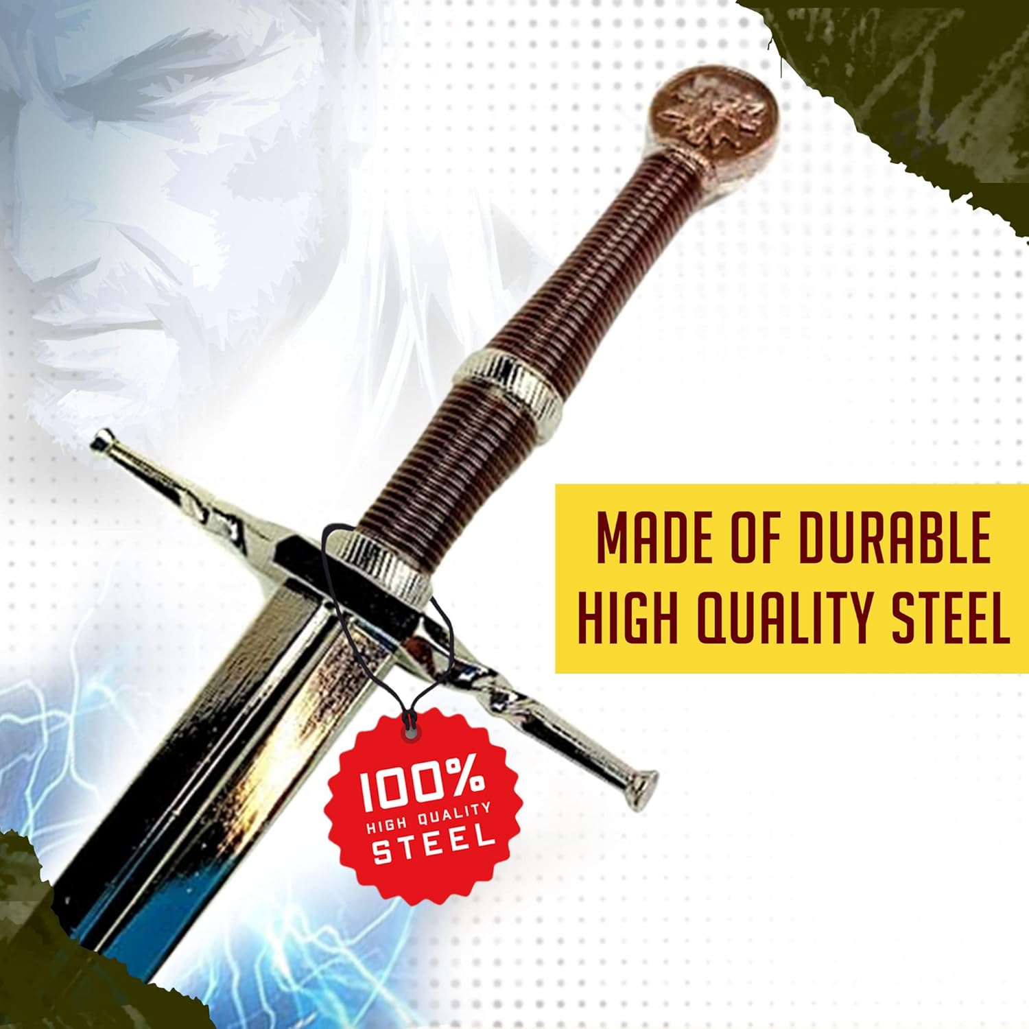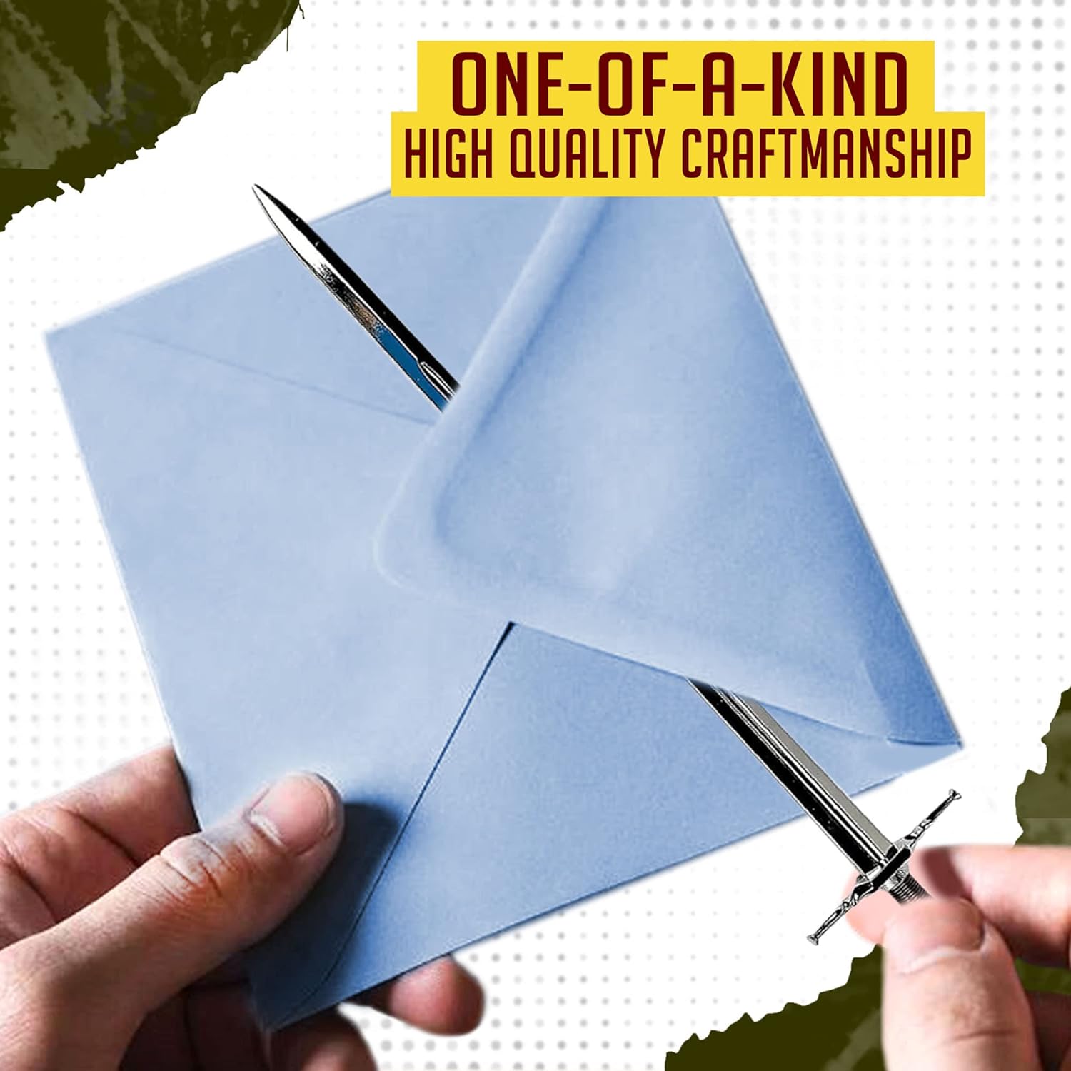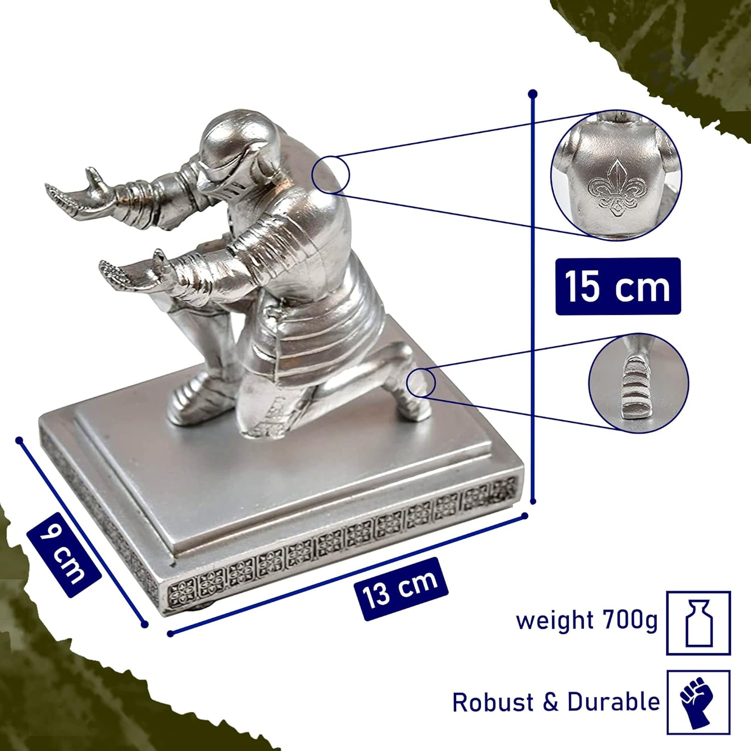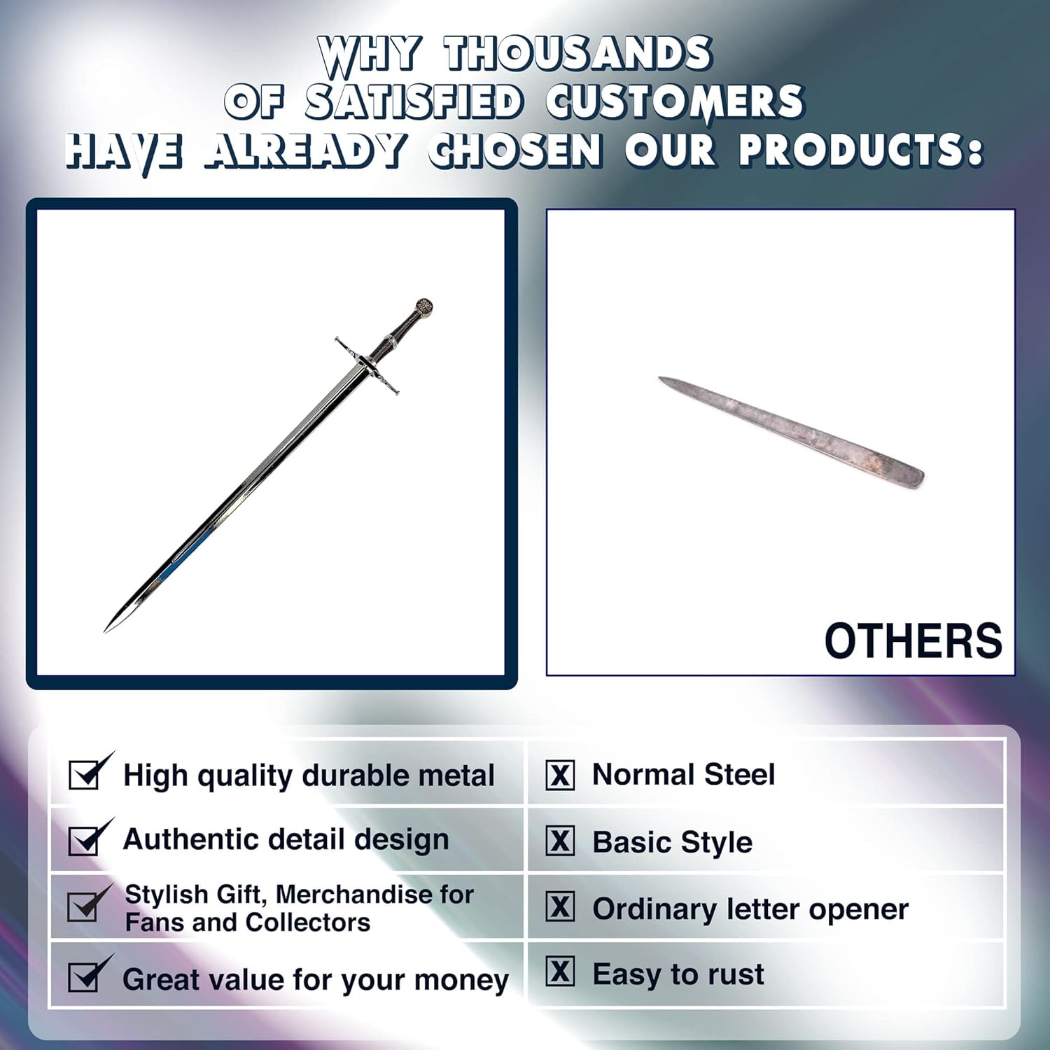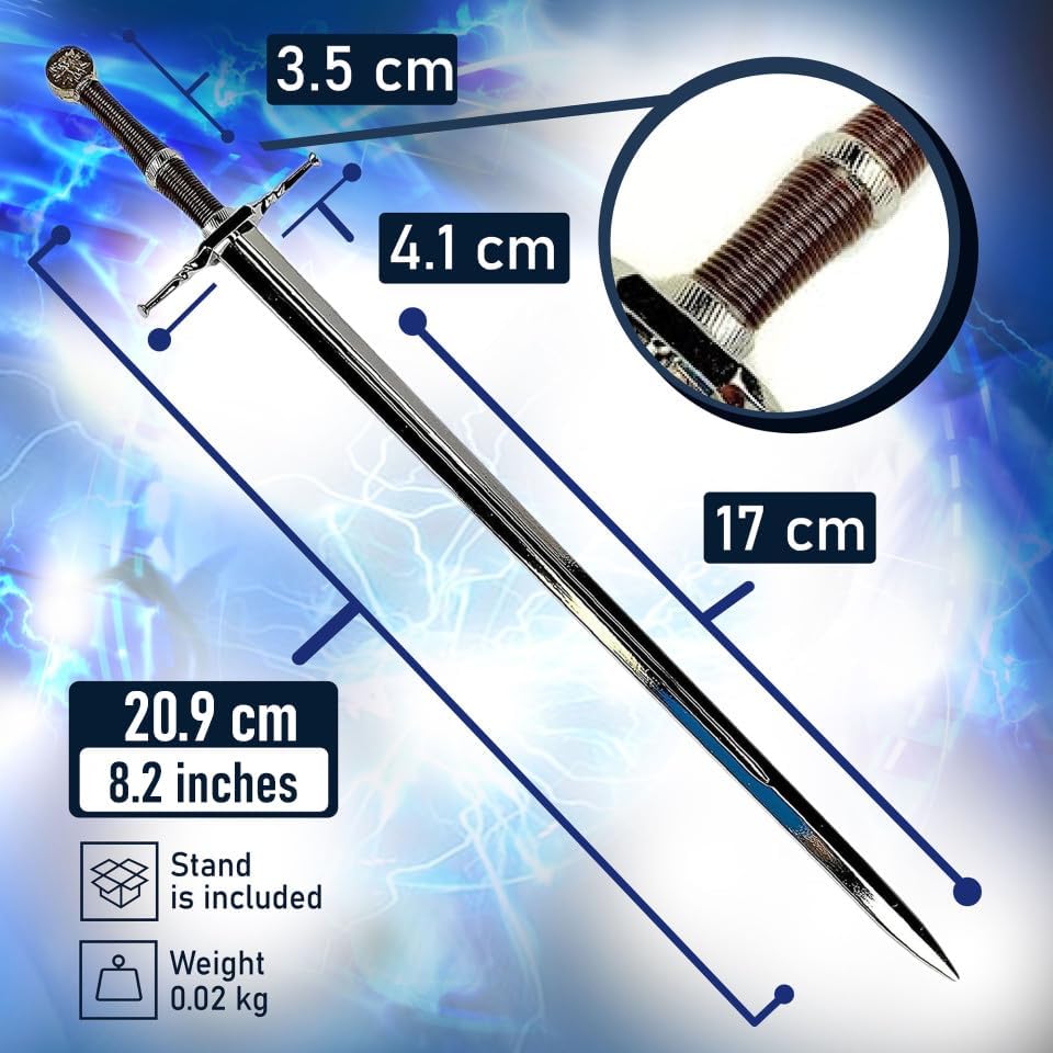 2 in 1: questo è un set esclusivo composto dalla spada Witcher e un portapenne Cavaliere, che può anche servire come supporto per la spada per il tuo tagliacarte. Questa è la spada d'acciaio di Geralt. Ha una lama con cavità cava che passa oltre la metà della lama. La pariera ha una forma attorcigliata. La maniglia termina in una manopola a disco, decorata con un lupo. Il nostro titolare è un cavaliere inginocchiato che ti basta un tagliacarte o una penna. MATERIALE DI ALTA QUALITÀ: la spada è realizzata in acciaio di alta qualità, forte e resistente. Pertanto è adatto per qualsiasi tipo di carta come spada tagliacarte o apriscatole. Può anche essere usato come spada in miniatura per giocare. La statuetta del cavaliere è realizzata in resina di alta qualità, forte, solida e affidabile. Grazie al processo di produzione, la resina è uno dei migliori materiali per giocattoli, figurine, ecc. DIMENSIONE IDEALE: la spada è lunga 20,9 centimetri e pesa 0,2 chilogrammi. Può essere facilmente riposto nel cassetto della scrivania per l'uso in ufficio. Il portapenne misura 13 x 9 x 15 cm. Il peso totale è di 700 grammi. Entrambi i prodotti sono leggeri e possono essere posizionati ovunque in casa. Inoltre, occupano poco spazio sulla scrivania dell'ufficio. Sono anche fantastici oggetti decorativi che puoi presentare ovunque. Unico e funzionale: il nostro esclusivo set composto da spada in acciaio Geralt di Riva e supporto per spada da cavaliere è un meraviglioso oggetto decorativo per la tua casa, ma anche un prodotto unico e funzionale come accessorio da scrivania da ufficio. La statuetta è realizzata con amore per i dettagli per creare un bellissimo cavaliere che ti servirà sempre. La spada arriva direttamente da Witcher per sconfiggere le tue buste e i pacchetti. Ottima idea regalo: giocatori, appassionati di storia e collezionisti ameranno il nostro set di tagliacarte. È perfetto come oggetto decorativo per qualsiasi stanza come l'anticamera, l'ufficio, il soggiorno o la sala giochi, ma è anche un oggetto funzionale da ufficio per aprire una lettera. Questo è un ottimo regalo 2 in 1 per compleanno, Natale, Capodanno, ecc.
