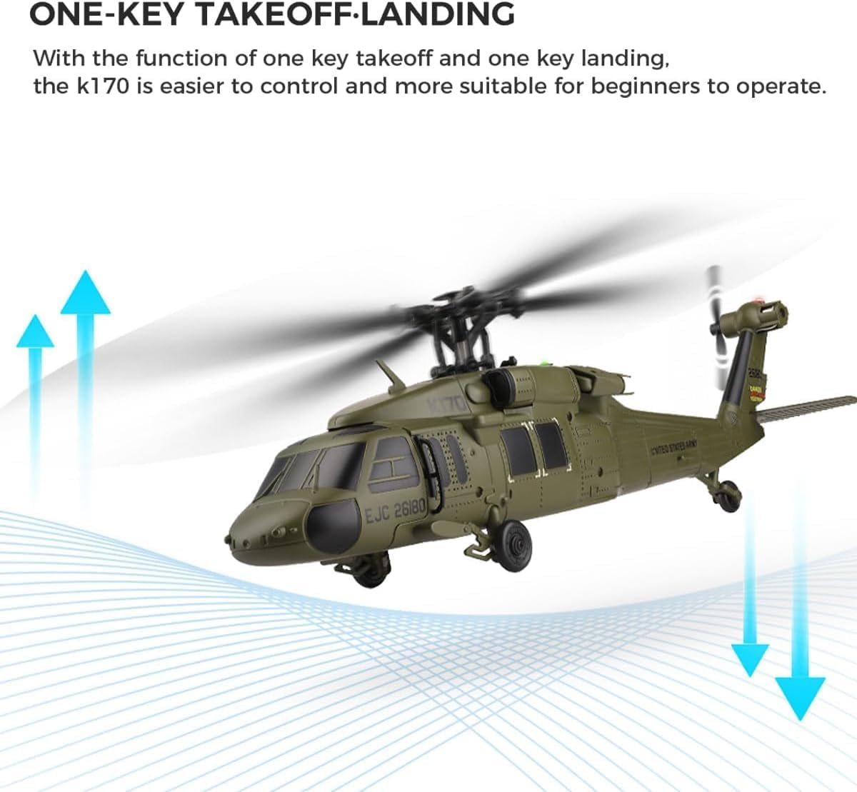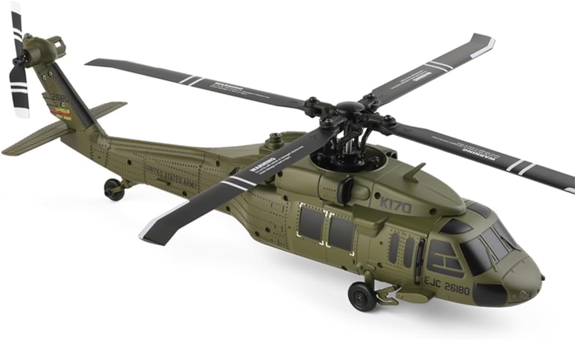 Design realistico: modello UH-60L Black Hawk su scala reale con esterno dettagliato e autentico sistema a rotore a quattro pale per un'elevata precisione di simulazione CONTROLLI AVANZATI: telecomando a 4 canali con modalità di accelerazione sinistra/destra regolabili e avvisi di batteria scarica per un maggiore controllo e sicurezza Prestazioni di volo: dispone di un sistema di stabilizzazione giroscopica a 6 assi, mantenimento dell'altitudine e decollo/atterraggio con un tasto per un'esperienza di volo fluida e stabile Potente sistema: motore brushless 1106 con batteria LiPo da 3,8 V 800 mAh 20 C, offre fino a 8 minuti di volo CARATTERISTICHE DI SICUREZZA: Dotato di protezione contro la perdita di segnale a prova di guasto che consente il passaggio del mouse di 2 secondi seguito da una discesa graduale in caso di perdita