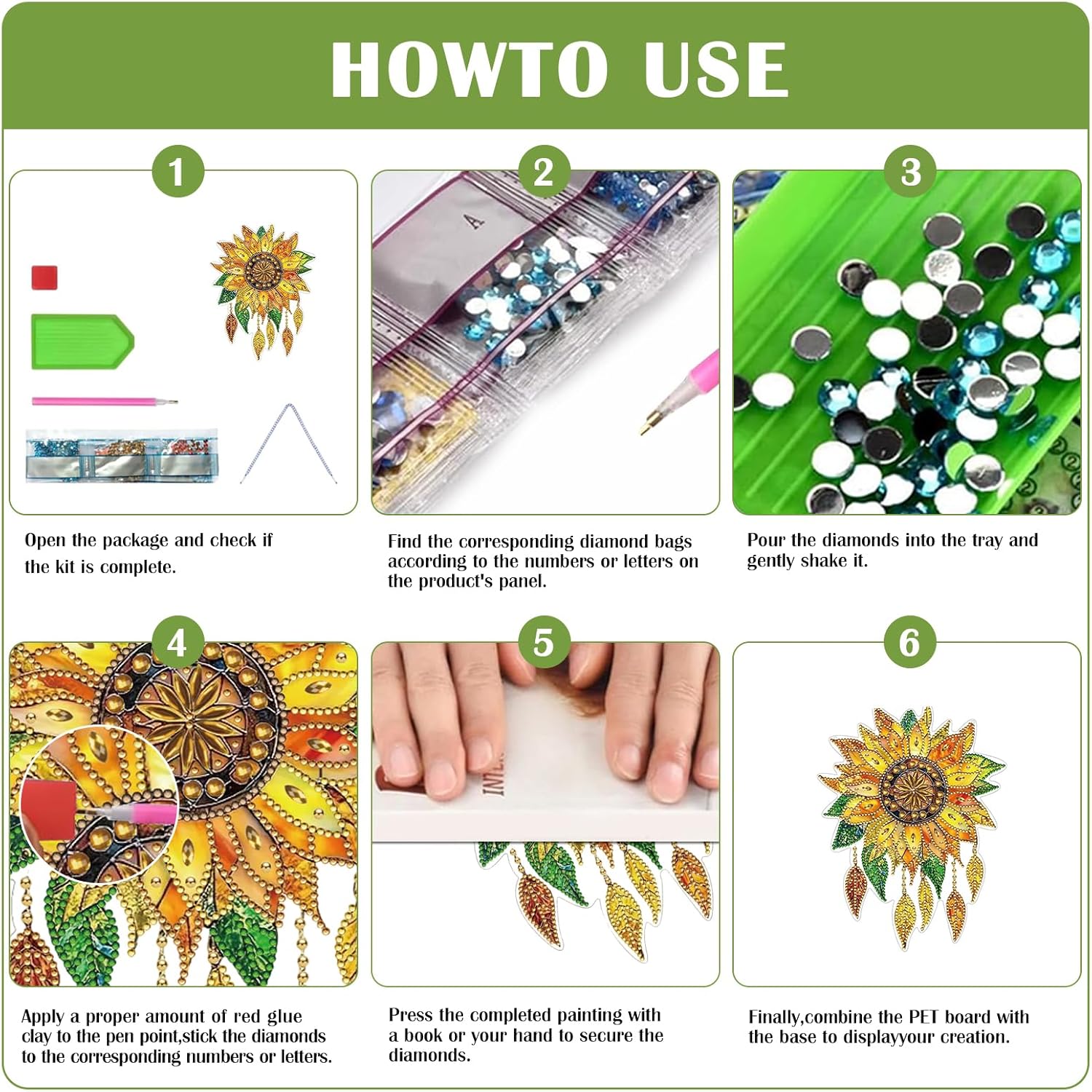Creative Art Experience: i nostri kit artistici di diamanti sospesi ti offrono l'opportunità di creare squisite opere d'arte che fungono da decorazioni per la casa o regali fatti a mano. Il processo è simile a dipingere per numeri ma più coinvolgente. Tema natalizio festivo: questi artigianato a sospensione di diamanti sono decorazioni festive, che offrono saluti e benedizioni alla tua famiglia durante il periodo natalizio. Splendido risultato 'arte cristallina: al completamento, avrai un pezzo di arte di cristallo mozzafiato pronto ad adornare la tua casa o il presente come regalo caro ai propri cari. Modello facile da seguire: ogni design di pendenti per finestre d'arte con diamante di strass è dotato di un modello appiccicoso numerato. Basta sollevare gemme di resina colorate usando lo strumento e posizionarle sui punti numerati corrispondenti. Attività artigianale rilassante: questa tecnica di crafting di diamanti offre un'esperienza terapeutica, adatta per gli adulti che amano attività creative.