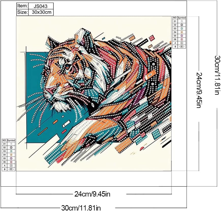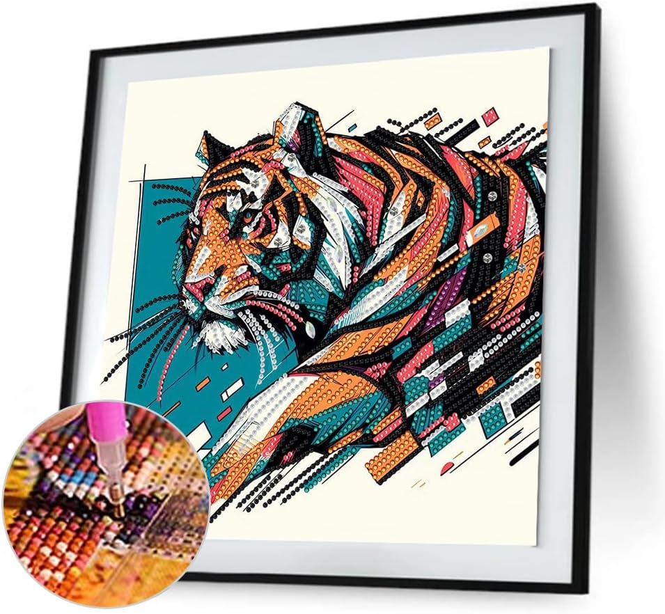 WMFASBAG 5D DIY parziale parziale Speciale a forma di trapano a forma di diamante kit tigre decoro 30x30 cm (JS043)