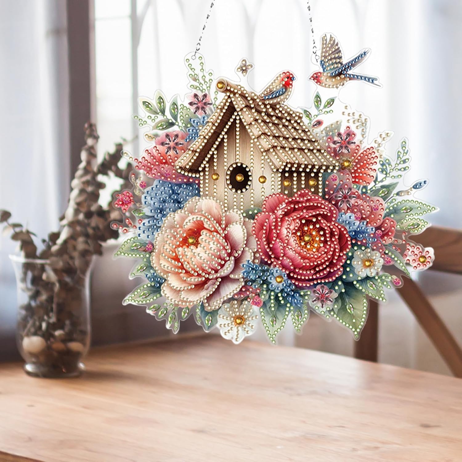 Scatena la tua creatività: immergiti nel mondo dei kit artistici di diamanti appesi e crea bellissime opere per la decorazione domestica o come regali ponderati. Processo di artigianato guidato: con pendenti per finestre artistiche di rinestone, seguire il modello appiccicoso numerato per sollevare e posizionare accuratamente le gemme in resina colorate. Crafting terapeutico per tutti: sperimentare gli effetti calmanti di questa attività, per gli adulti. Decora con eleganza: completa il tuo ciondolo d'arte diamantato per rivelare splendido capolavoro di cristallo, ideale per abbellire il tuo spazio abitativo o regali. Gioia delle vacanze con disegni natalizi: festeggia il Natale con decorazioni fatte a mano, diffondendo amore e allegria per la tua famiglia.