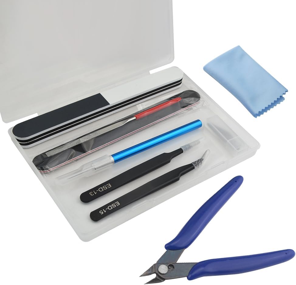 【Ampia applicazione】 Il set di strumenti di base del modellatore è ideale per principianti e modellisti professionisti, ampiamente applicato al campo della produzione di giocattoli, come automobili, robot, cartoni animati, edifici, aeroplani e altri oggetti artigianali. Durevole da usare: le pinze laterali sono realizzate in acciaio inossidabile di alta qualità, struttura solida, sufficientemente affilata, con una lunga durata; Le pinzette sono realizzate in acciaio inossidabile di alta qualità, costruzione solida, abbastanza affilata. Ottimo aiuto: soddisfa tutte le esigenze di base, adatto a principianti e utenti avanzati, ottimo aiuto per i tuoi lavori di costruzione di Gundam. Leggero e portatile: confezionato in una robusta scatola trasparente, comoda da trasportare e installare. Puoi portarlo ovunque, usarlo in qualsiasi momento. SET DI UTENSILI VARI: La confezione include 1 pinza laterale, 2 pinzette, 1 lima, 2 aste per lucidatura a doppia faccia, 1 panno per lucidare, 1 coltello a penna e 5 lame, 1 scatola trasparente.