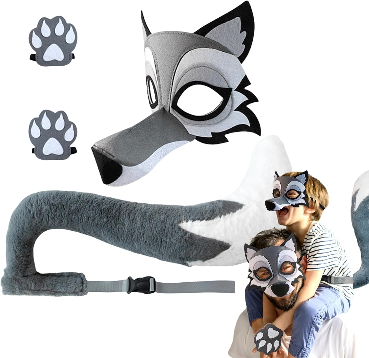 Descrizione prodotto Il set è ideale per e ragazze che cercano accessori divertenti per cosplay, e si adatta perfettamente a feste a tema, feste di Halloween o scenari creativi in costume. Questo costume da lupo è perfetto per i più piccoli e genera gioia grazie al suo design giocoso e rende straordinari compleanni o altre celebrazioni. Il design leggero e pratico lo rende un'opzione eccellente per chi cerca costumi funzionali e visivamente attraenti. Specifiche: Materiale: feltro + imbottito. Dimensioni della copertura del viso: circa 23 x 16 x 10,5 cm. Pata. Dimensioni: circa 10 x 9,5 cm. Dimensioni della coda: circa 49 cm. Peso: circa 120 g/160 g Contenuto della confezione: 1 copertura per il viso. 1 paio di zampe. 1 coda. Note: A causa delle differenze di illuminazione e dello schermo, il colore dell'articolo potrebbe essere leggermente diverso dall'immagine. Si prega di considerare un margine di errore di 1-3 cm a causa della misurazione manuale. Avviso di sicurezza Inapplicabile