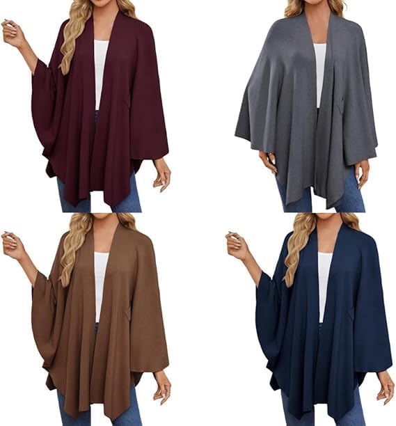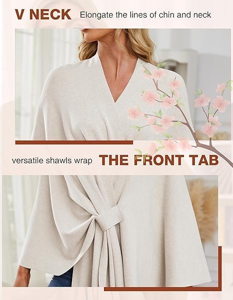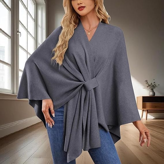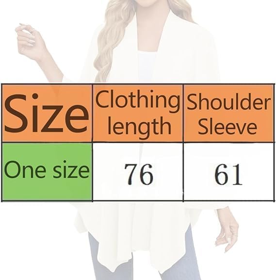 Women's Elegant Shawl Wraps Soft Open Front Poncho Sweater, 2025 Cross Front Knit Poncho Sweater for Travel & Office Key Features: Elegant cross-front with chest loop design A Simple, Seamless Design, Elegant and Versatile Front-Opening Poncho Silhouette for a Flattering Look Versatile Wear Options Unlock Diverse Styling Possibilities Thoughtful gift for women of all ages Specifications: Product Name: Soft Open Front Poncho Sweater Material: Soft Polyester (Double-Knit) Size: One Size Sleeve: Bat Sleeve Color: As shown Style: Cross-Front with Chest Loop & Belted Design Fit: Oversized, Loose Fit Season: Suitable for Fall, Winter, and Cool Spring Days Occasions: Ideal for Weddings, Travel, Office, Evening Outings, and Daily Wear Easy Care and Maintenance: Machine washable and quick-drying. Length: 76cm (30 inch), sleeve: 61cm (24 inch) Package Included: 1PCS:Women's Elegant Shawl Wraps Soft Open Front Poncho Sweater Note: 1. Due to manual measurement, please allow a slight error 2. Due to the different recognition of screen monitors, please allow slight color difference. Thank you for your understanding