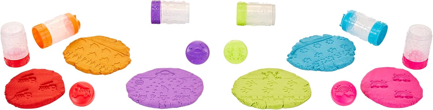 ORE DI DIVERTIMENTO INFINITO: Wonder Factory Never Dry Single Sand permette al bambino di vivere un'esperienza divertente, fantasiosa e tattile con possibilità di gioco infinite UN IMPASTO CHE NON SI SECCA: Wonder Factory Never Dry è una sabbia unica che non si secca. È anche senza glutine STRUMENTO 4 IN 1: 1. Arrotola; 2. Stampa; 3. Collega; 4. Conserva CONFEZIONE RIUTILIZZABILE: Ogni contenitore di sabbia arricchisce l'esperienza di gioco con motivi, timbri e altro ancora COSA C'È ALL'INTERNO: include 104 ml di sabbia in uno strumento 4 in 1 GIOCO COLORATO: ha tanti colori divertenti da collezionare per il gioco creativo. I colori e i modelli possono variare