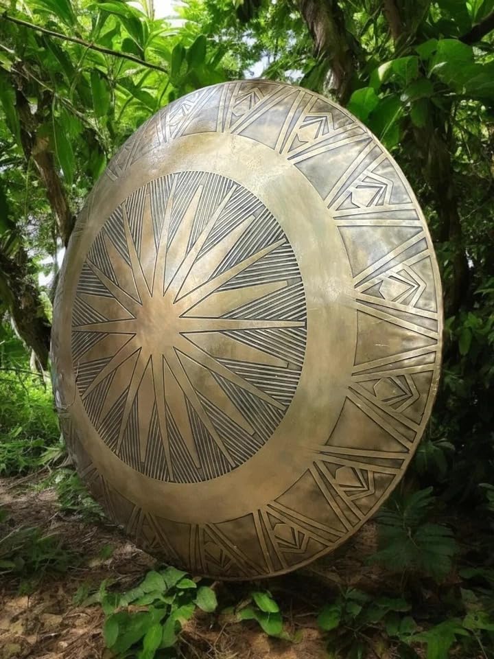 Dimensioni: 55,9 cm - Peso volume: 5 kg. - Peso: 2,5 kg - Finitura: come da immagine - Scudo di ottima qualità e ben fatto - Metallo: ferro, acciaio e cinturini in pelle. Uso: utilizzabile tutti i giorni, unisex, ideale come regalo Imballaggio: confezione singola. Imballaggio ondulato dell'esportazione
