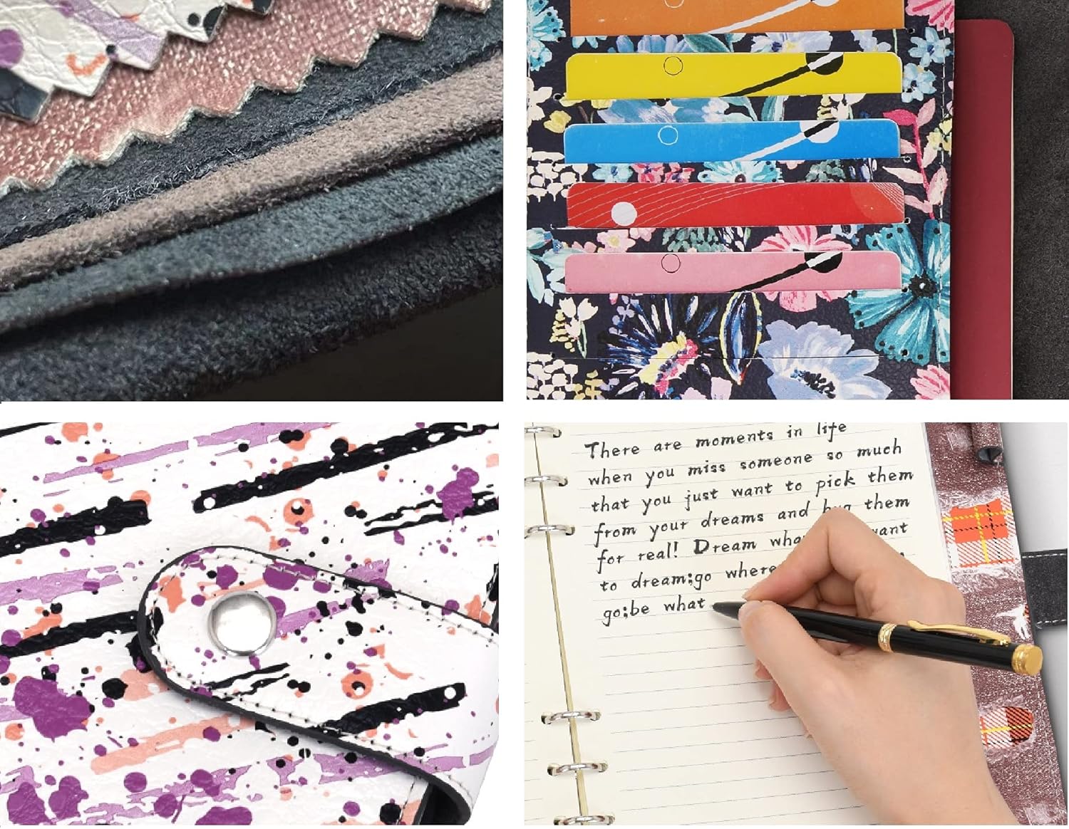 ORGANIZZATORI - La copertina è realizzata in morbida vera pelle di alta qualità con scomparti per carte di credito e tasche. passaporti, fatture, carte d'identità, debito, tagliandi, biglietti, cancelleria, ecc. in ordine e meglio organizzati. ACCESSORI PRATICI - Viene fornito con 5 pratici set di accessori: 160 pagine a righe universitarie spesse da 100 g/m², 1 penna e 1 custodia con cerniera/portacarte e 1 raccoglitore e 1 divisore per indice, 1 segnalibro. Questi articoli soddisferanno le tue esigenze quotidiane e ti aiuteranno a risparmiare su tutte le spese extra. RICARICABILE - Con la copertina in pelle resistente e pratica, ogni copertina in pelle ha un raccoglitore a 6 anelli A5 o A6 standard di alta qualità, è facile rimuovere e riempire nuova carta una volta che il diario è pieno, goditi la tua scrittura senza distrazioni. COPERTURA COLORATA - L'esclusiva cover realizzata a mano che combina PU di alta qualità e vera pelle per rendere il tuo laptop elegante e resistente, e la cover colorata ti dà il buon umore ogni giorno. È anche un'ottima decorazione per la tua scrivania. AMPIO UTILIZZO - Ogni quaderno in pelle contiene 160 pagine di carta low-eye da 100 GSM di spessore, la carta millimetrata può essere un diario o diario personale, un diario di ricette classiche, un diario scolastico, un album fotografico, una pianificazione quotidiana, un quaderno di schizzi artistici, ecc. Può essere usato come un regalo intimo e di alta qualità per te, la famiglia, gli amici o il partner di lavoro.