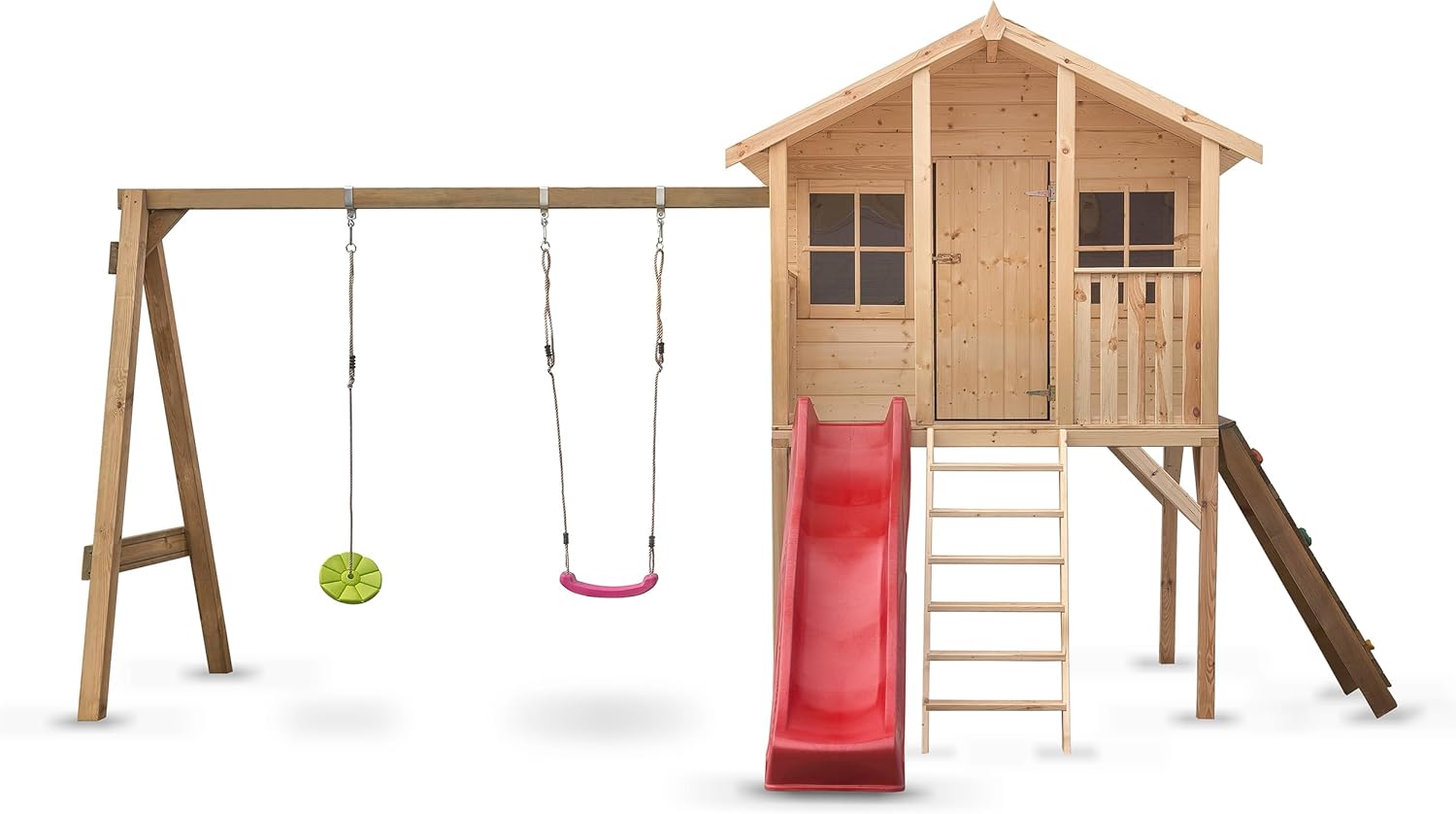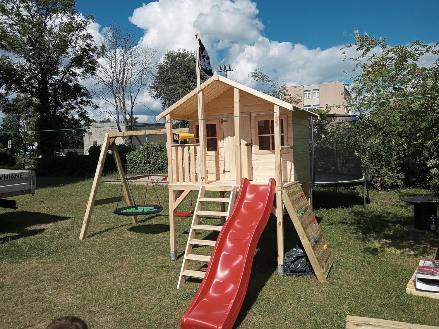 Costruzione di alta qualità: Realizzata in legno essiccato in forno, la casetta Borys è molto robusta, con pareti spesse 15 mm e pavimento spesso 19 mm, e offre al bambino durata e sicurezza per le sue avventure di gioco. Design sicuro e protetto: Con due finestre antisfondamento, porte con chiusura a chiave e una ringhiera sufficientemente ampia, Borys offre un ambiente sicuro in cui i bambini possono giocare liberamente sotto supervisione. Semplice montaggio fai-da-te: Grazie ai raccordi di precisione testati in fabbrica e alle dettagliate istruzioni di montaggio fornite, l'assemblaggio della casetta Borys è un processo senza problemi, molto comodo per i genitori. Risorsa naturale e rinnovabile: Realizzato in legno essiccato in forno, Borys contribuisce agli sforzi di sostenibilità utilizzando materiali naturali e rinnovabili e offre un'opzione sicura e consapevole per le attrezzature da gioco per bambini. Ampia scelta di accessori: Migliorate l'esperienza di gioco con gli accessori disponibili nella nostra gamma, che potrete utilizzare per personalizzare la casetta Borys in base alle preferenze e agli interessi del vostro bambino.