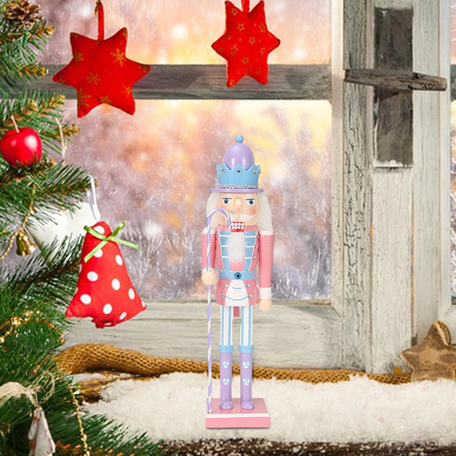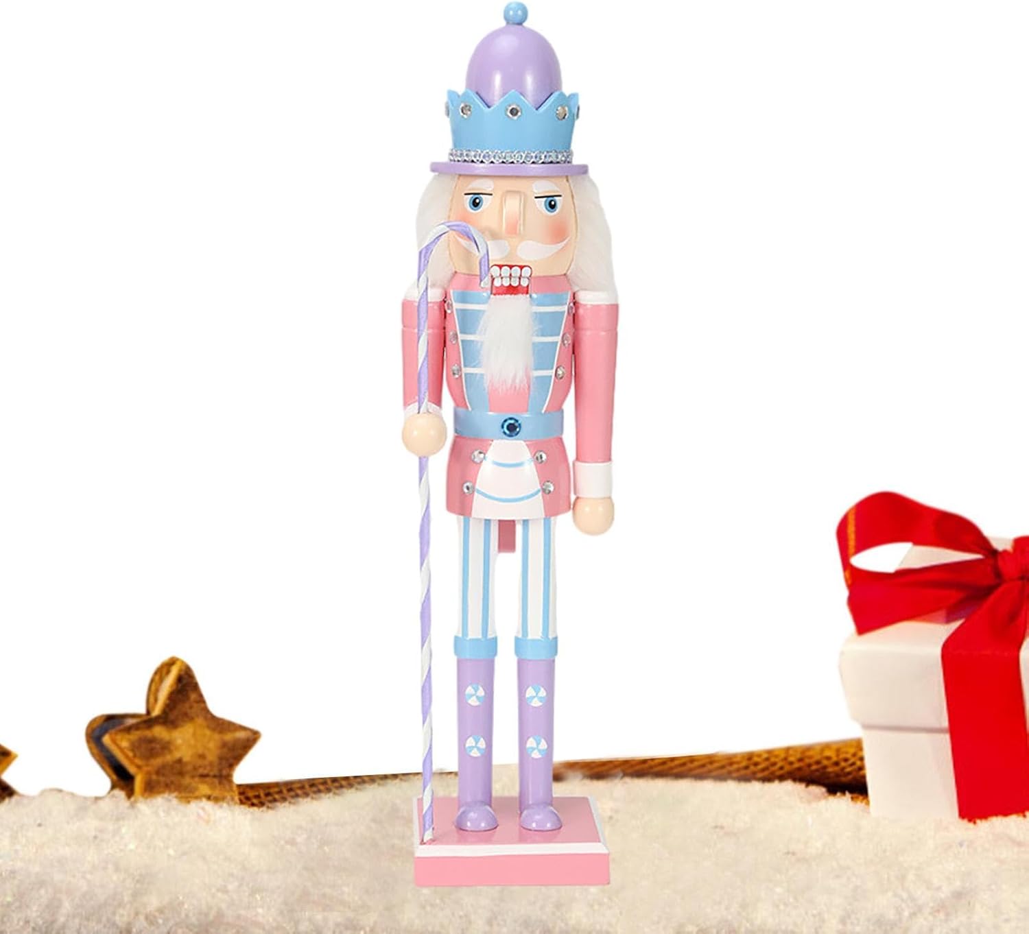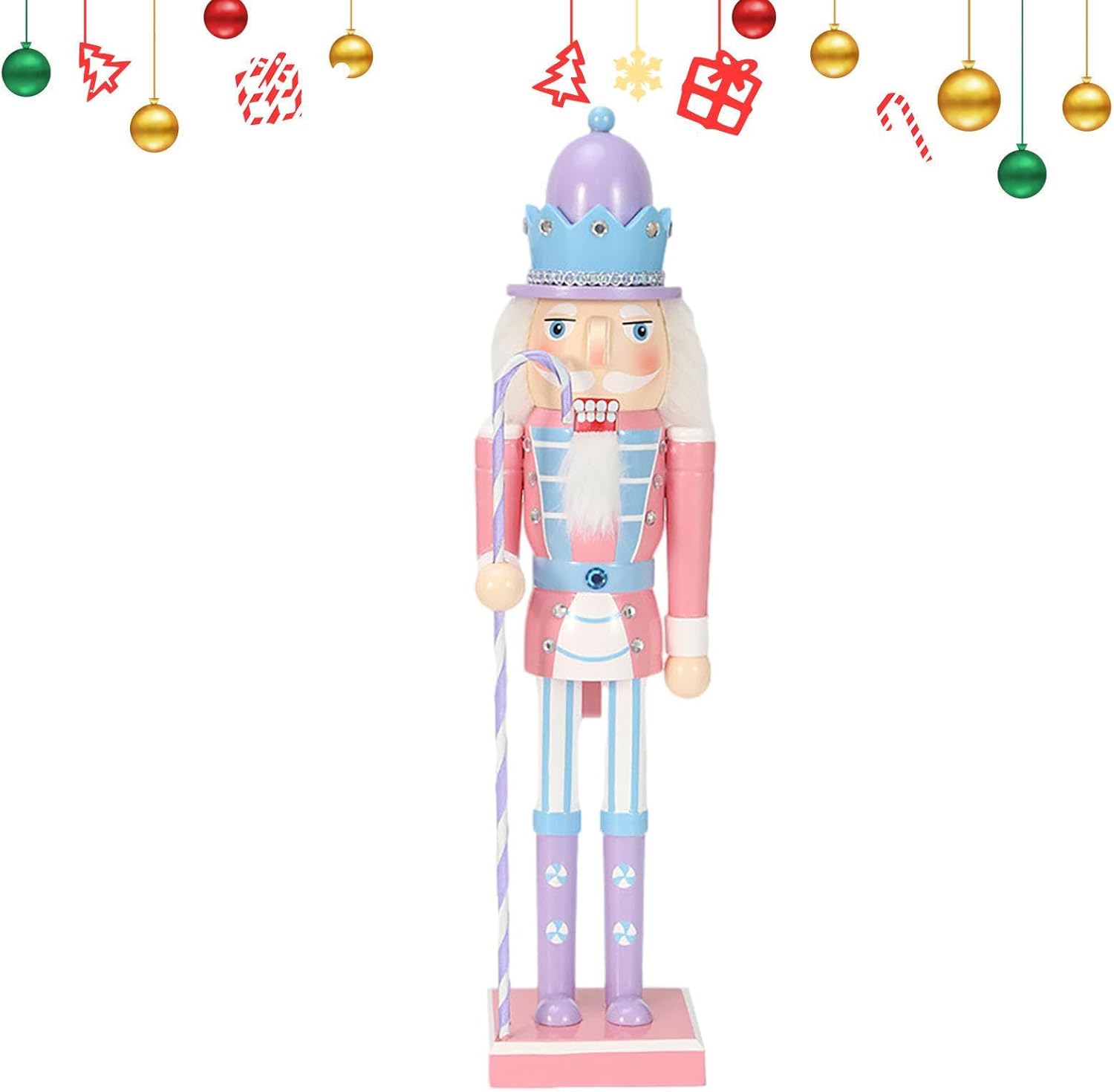 Making a Sweet Ambiance: Brighten up your holiday decor with these candy nutcracker ornaments, featuring four styles to choose from, each holding a lo llipop themed . These ornaments are hand painted with beautiful patterns and bright colors, creating a sweet atmosphere for your home. of Good Luck: Stand guard day and night with our Candy Nutcracker Ornament, shielding your family from harm and inviting good luck. This retro , traditional king figure represents power and protection, transmitting the grace and fortune of the Nutcracker's rich cultural history. Well Made: This candy nutcracker ornament is made of wood and has beautiful details that are not easy to break or fade. The bright colors and mate rial make it a perfect decoration for your home. Widely Used: Place our candy nutcracker ornament on the fireplace, mantle, window, table, or any mark in your home to instantly enhance your Christmas de cor. It brings festive charm and elevates the holiday ambience, making your home more lively and welcoming. Good Present to Kids: This candy nutcracker ornament makes a great addition to your holiday decorations. It cracks nuts and adds a touch of holiday cheer to your home. It's a great gift for families, friends, and colleagues, as it's decorative and practical.