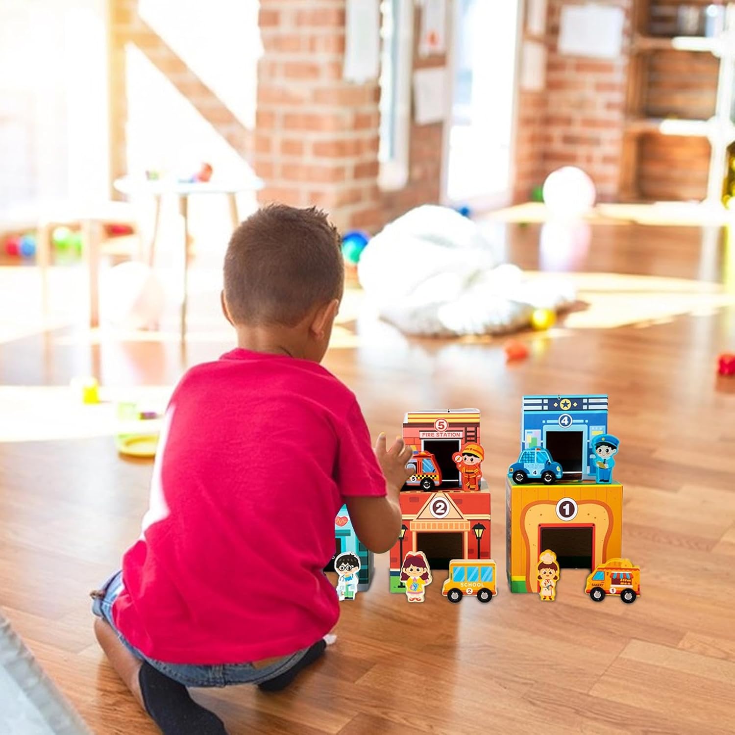 Educational Community Helpers Toy: This wooden stacking blocks car garage toy introduces kids to community helpers, such as firefighters, officers, and construction workers, promoting learning through play and fostering an early interest in these important roles Promotes Cognitive Development: Perfect for and young children, this car garage block set enhances problem-solving skills, hand-eye coordination, and spatial awareness while encouraging creativity as children design their own block city Durable Wooden Construction: Made from high-quality, wood, this educational city toy is built to last. It’s sturdy, safe for kids, and features smooth edges for hours of fun and imaginative play Perfect for Special Occasions: Whether it’s for New Year, Valentine’s Day, or Thanksgiving, this community helpers toy makes a thoughtful gift that encourages learning through play. It’s an for birthdays, holidays, or any occasion Interactive and Engaging: The wooden city playset endless opportunities for children to explore and interact with, whether they’re stacking the blocks, building structures, or organizing their own little city. It’s a great toy for group play and parent-child interaction