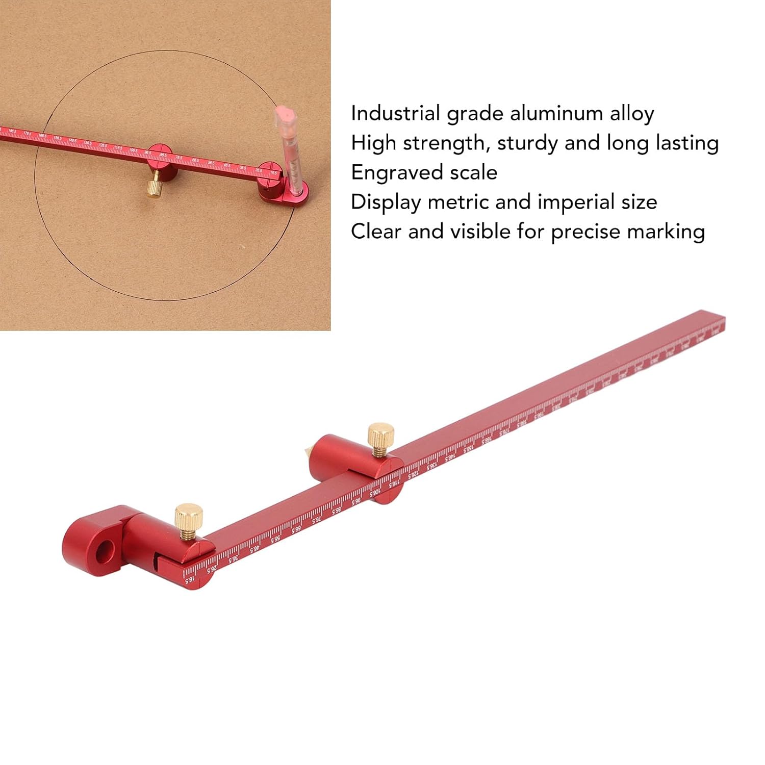 【Materiale robusto】 Prodotto in lega di alluminio, lo scriba della bussola per la lavorazione del legno offre una durata eccezionale pur rimanendo leggero. È specificamente realizzato per sopportare le esigenze di vari compiti di lavorazione del legno. 【Ingegneria di precisione】 Il righello del cerchio di lavorazione del legno è progettato per facilitare il disegno di cerchi con un raggio massimo di 300 mm, rendendolo per progetti dettagliati di lavorazione del legno che richiedono precisione. 【Misure chiare】 Con una scala incisa, la grande bussola per il disegno dei cerchi consente una marcatura di precisa con misurazioni metriche e imperiali, rendendola intuitiva per tutti i falegnami. 【Funzionamento stabile】 Il righello di misurazione rotonda della bussola rotonda è dotato di una robusta manopola di ottone per evitare il rotolamento durante l'uso. Questa funzione garantisce stabilità e precisione mentre crei cerchi e linee. 【Strumento versatile】 Questo righello del cerchio scribing in legno non è per il disegno del cerchio ma anche per le linee rette, rendendolo un'aggiunta versatile al tuo kit di strumenti per la lavorazione del legno per varie applicazioni.