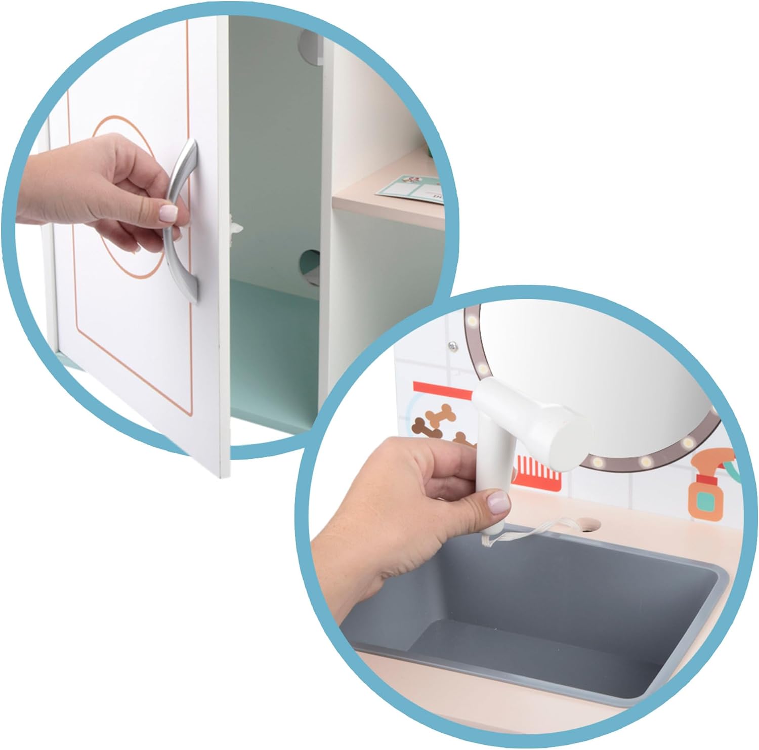 Con questo ospedale giocattolo 3 in 1 WOOMAX, metterai alla prova le tue doti come veterinario, medico o parrucchiere canino, quale professione svolgerai oggi? Design: ospedale veterinario e centro di bellezza per animali domestici con vasca e rubinetto estraibile, nastri di fissaggio, lastre e armadio con porta e ospedale per persone con armadio, pannello lettere e misuratore di altezza. Dimensioni: 47,5 x 47,5 x 75,5 cm (altezza del tavolo 47 cm) Include: 2 scatole di medicinali, 1 siringa rimovibile, 1 termometro, 1 piastra a raggi X reversibile, 1 stetoscopio, 1 martello riflesso, 1 occluore oculare, 1 bassalingua, 1 flacone di pillole, 2 polsiere in tessuto, 2 carte identificative, 1 foglio per emettere prescrizioni mediche e 1 modulo di salute Giocattolo sostenibile e sicuro: questo supermercato è realizzato in legno e presenta bordi e angoli arrotondati e morbidi per garantire un gioco sicuro Età e valori: giocattolo simbolico raccomandato dai 3 anni in su che sviluppa l'immaginazione, l'abilità manuale e incoraggia la socializzazione