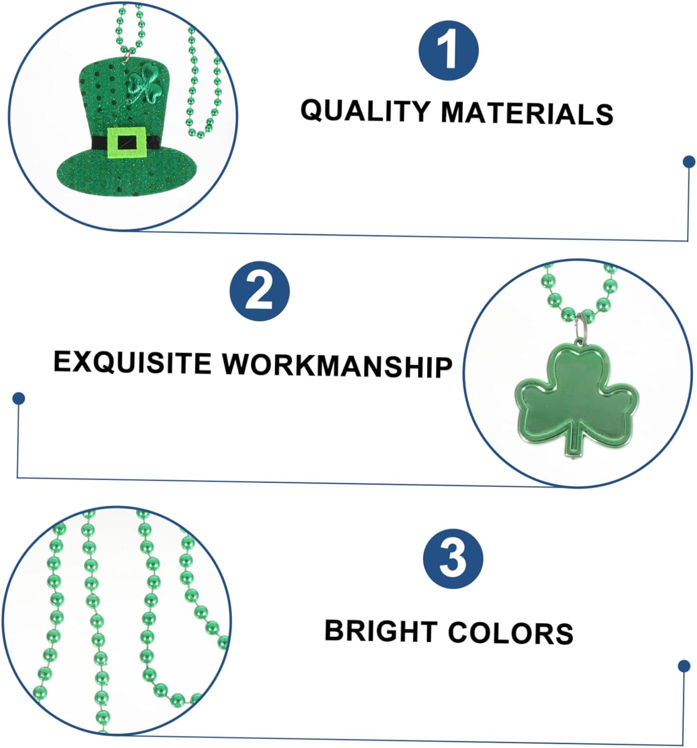 dei pacchetti 3 collane Caratteristiche -Informazioni sul prodotto:Collana con a foglie - Materiale: collane perline plastica per San Patrizio - Dimensioni: circa 15,00X15,00X3,00 cm/5,89X5,89X1,18 pollici collana perline San Patrizio - Colore: accessori verdi per San Patrizio - Si abbina bene ai costumi e alle perline San Patrizio. - Un lungo e un cappello sono eleganti come da collo per la collana perline del San Patrizio. - La collana perline è realizzata in plastica impedisce efficacemente la collana perline San Patrizio si . - La collana in irlandese è taglia e si adatta alla maggior parte delle persone. - L'accessorio perfetto per una collana per San Patrizio. Descrizione della merce accessori per San Patrizio Indossare collana ti renderà accattivante e attraente. perline per collana del San Patrizio ciondolo con e cappello è perfetto per la decorazione della San Patrizio. collana per irlandese Realizzata in materiale leggero e facile da usare