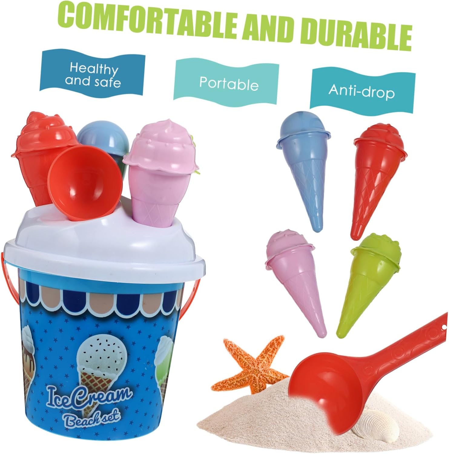 Giocattoli da spiaggia per piccoli: questi giocattoli da spiaggia con sabbia sono perfetti per divertirsi, attrezzi da spiaggia Giocattolo da spiaggia in plastica: regalo perfetto per i , promuove la capacità dei di riconoscere i colori, la potenziale creatività, l'immaginazione e la socializzazione, secchielli di sabbia Secchiello per gelato: i genitori possono accompagnare i loro figli a giocare insieme a questo giocattolo per rafforzare il rapporto genitore-figlio, giocattolo da gioco con la sabbia da spiaggia Secchielli per la sabbia per : presa comoda, volume moderato, nessun peso per una mano piccola da afferrare, tecnologia satinata, bordi e angoli arrotondati senza, secchiello per la sabbia per Secchielli da spiaggia per gelato: realizzati in materiale plastico di alta qualità, sicuri e durevoli, ottima fattura e consistenza, giocattoli per feste estive