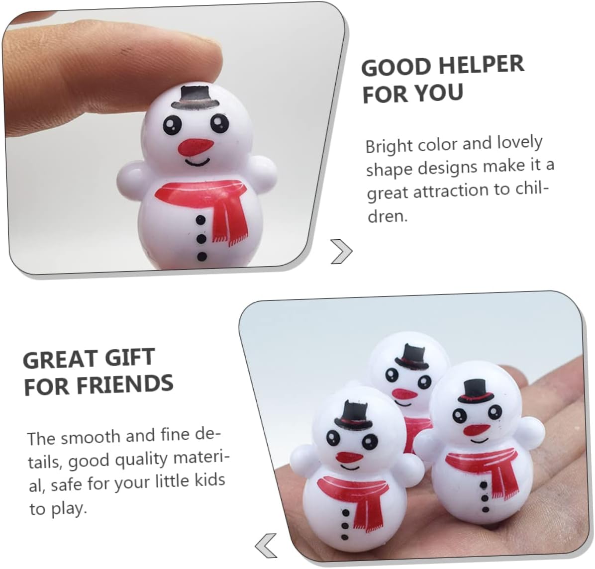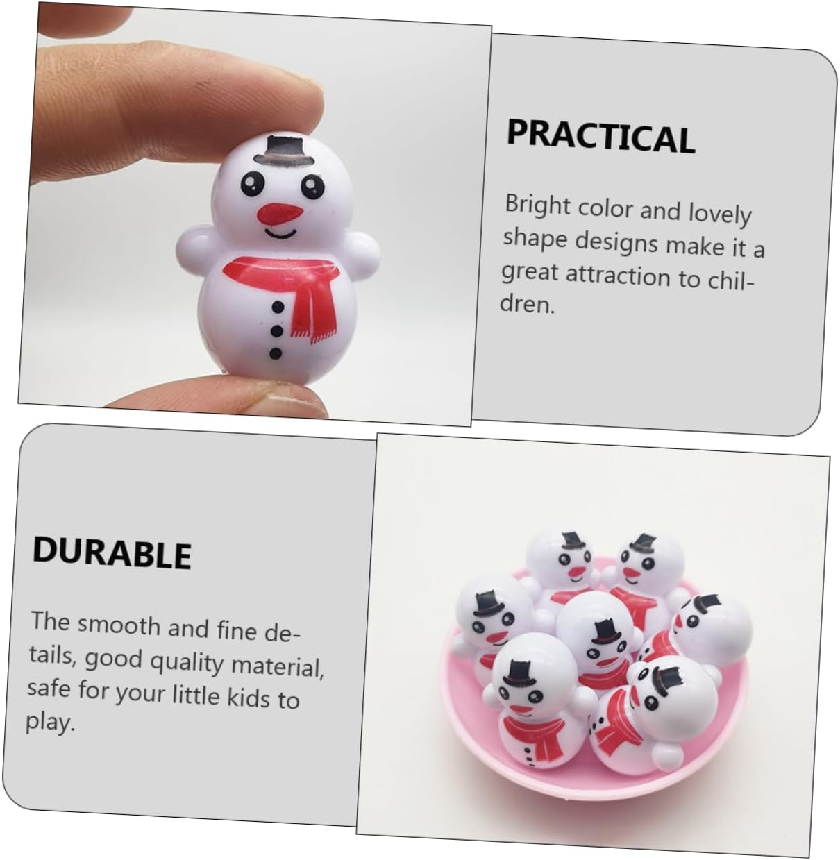 Decorazioni per la tavola: presentano un design molto elegante e bello, una scelta per decorare natale, compleanno, matrimonio, festival, ecc., mini giocattoli per bambini. Statuina del pupazzo di neve di natale: il giocattolo dal design del bicchiere è riutilizzabile e può essere utilizzato a lungo, regalerà ai tuoi bambini una buona esperienza, adorabili giocattoli da bicchiere. Giocattoli da tavola sull'acqua: curati in ogni dettaglio per conferirgli un aspetto chic, affascinante e accattivante, ornamenti in miniatura per pupazzi di neve. Giocattoli innovativi: adatti per la decorazione domestica, bar, caffetterie, ristoranti, matrimoni, natale, feste, anniversari, ecc., bicchiere di plastica. Bicchiere creativo: aiuta a coltivare l'abilità pratica dei bambini, usa semplicemente questo giocattolo per creare momenti felici per il tuo bambino, bicchieri pupazzo di neve.