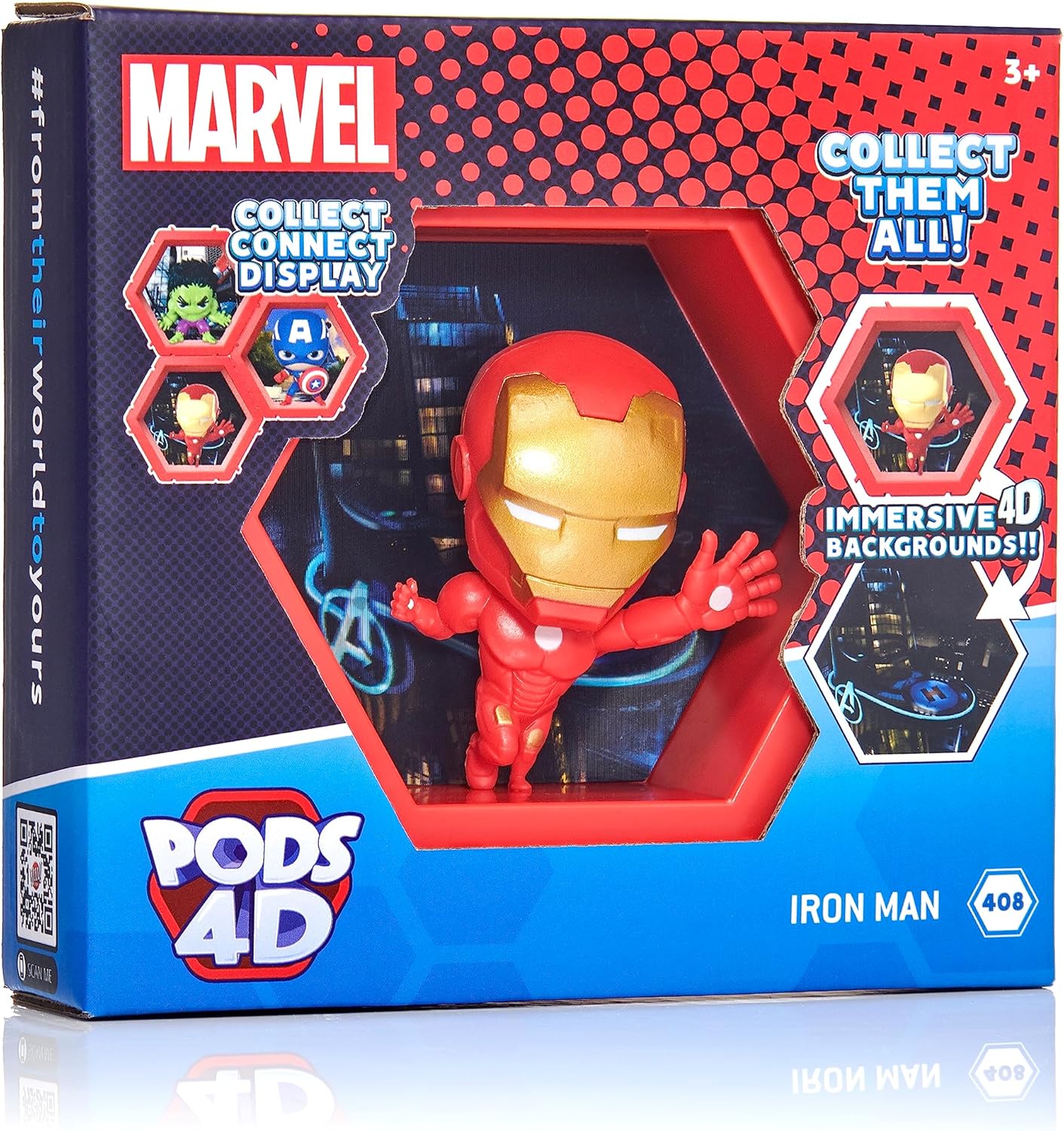 Display a 4 dimensioni: gli sfondi lenticolari 4D ad alta risoluzione offrono un'esperienza magica e molto diversa per i fan degli oggetti da collezione Iron Man e Marvel. Ironman sembra esplodere dal suo mondo al tuo con un favoloso effetto 4D! I caratteri non sono rimovibili. Collegabile e ideale per la decorazione: le capsule 4D si collegano a qualsiasi altro pod 4D in pochi secondi. Progetta e costruisci la tua combinazione unica e visualizzali su qualsiasi parete, mensola, tavolo o davanzale. Puoi anche usarli come cestino pasquale. Un'ottima alternativa ai bobbleheads! COLLETTIBILI - Ironman fa parte della collezione Marvel Pods 4D, che include Spider-Man, Iron Man, Black Panther e Captain America. Finemente dettagliato: l'applicazione della micro vernice viene applicata a ciascun personaggio all'assemblaggio finale e quindi montata all'interno del Pod esagonale davanti allo sfondo lenticolare 3D ad alta risoluzione. L'effetto 4D dà vita al tuo personaggio. Licenza ufficiale: i pod 4D sono prodotti con licenza ufficiale Marvel. Solo i marchi leader sono disponibili sotto WOW! PODS 4D, tra cui DC, Marvel, Disney e Sonic.