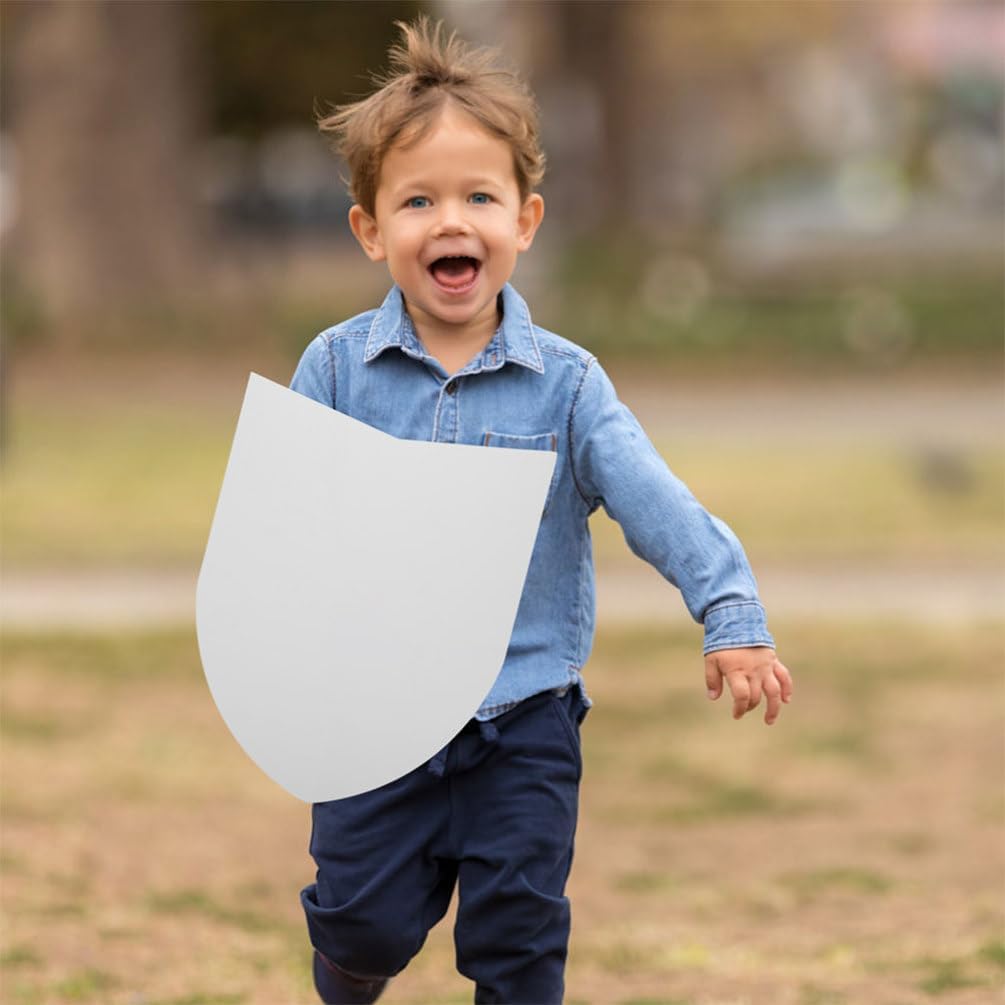 Scudo di cartone bianco: migliora le tue attività di gioco di ruolo o fai da te con il nostro scudo di cartone bianco. Misura 42,00 cm x 33,00 cm x 0,20 cm (16,51 x 12,97 x 0,08), questo scudo è un accessorio versatile per vari eventi e giochi Essenziale per feste di gioco fai da te: ideali per qualsiasi festa di gioco fai da te, questi scudi offrono divertimento infinito e creatività per i bambini, rendendoli un must per qualsiasi evento Comodo da tenere: progettato con una presa comoda, questi scudi sono facili da tenere e giocare per i bambini. L'impugnatura ergonomica garantisce ore di intrattenimento senza causare disagio Design semplice ed elegante: con un design minimalista, questi scudi sono eleganti e accattivanti. Le loro linee pulite e il colore bianco li rendono i preferiti dai bambini e possono essere facilmente decorati per abbinarsi a qualsiasi costume o tema Decorazioni per feste: decora facilmente qualsiasi festa o evento con questi scudi. Aggiungono un tocco di divertimento ed eccitazione all'occasione, rendendo il tuo incontro più memorabile
