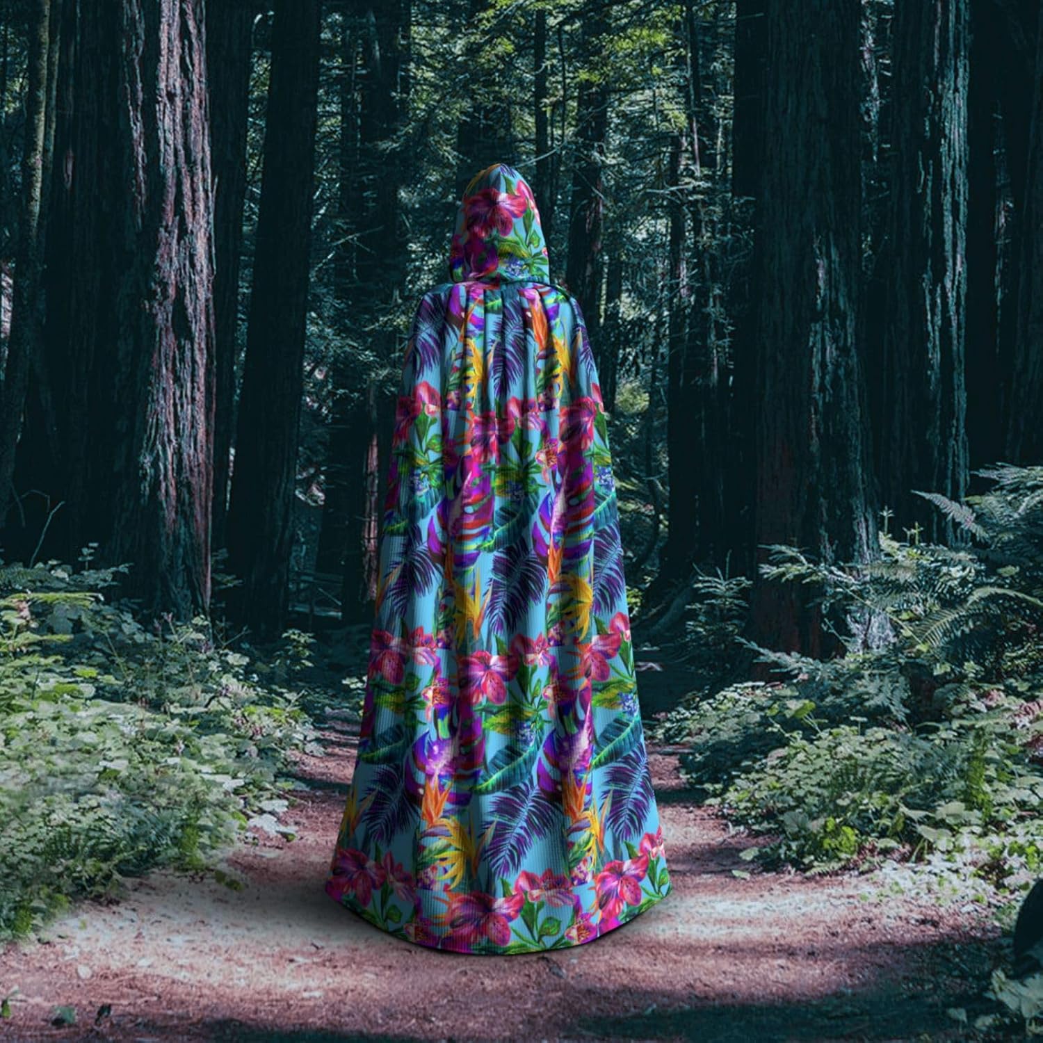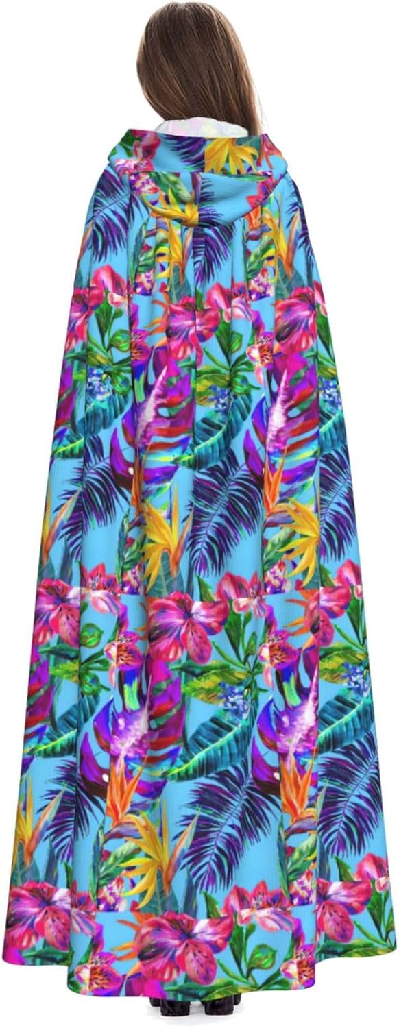 WURTON Costume da vampiro unisex con cappuccio con stampa di piante tropicali con fiore rosso, costume da vampiro, Halloween, cosplay, carnevale, festa a tema